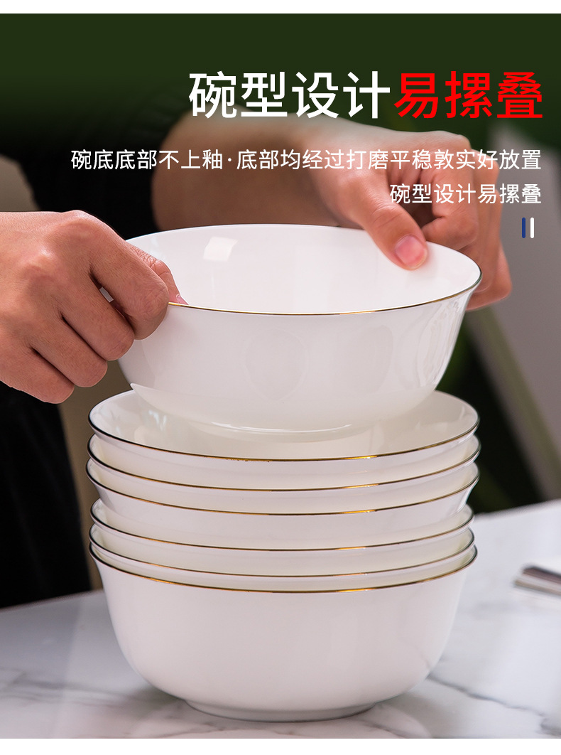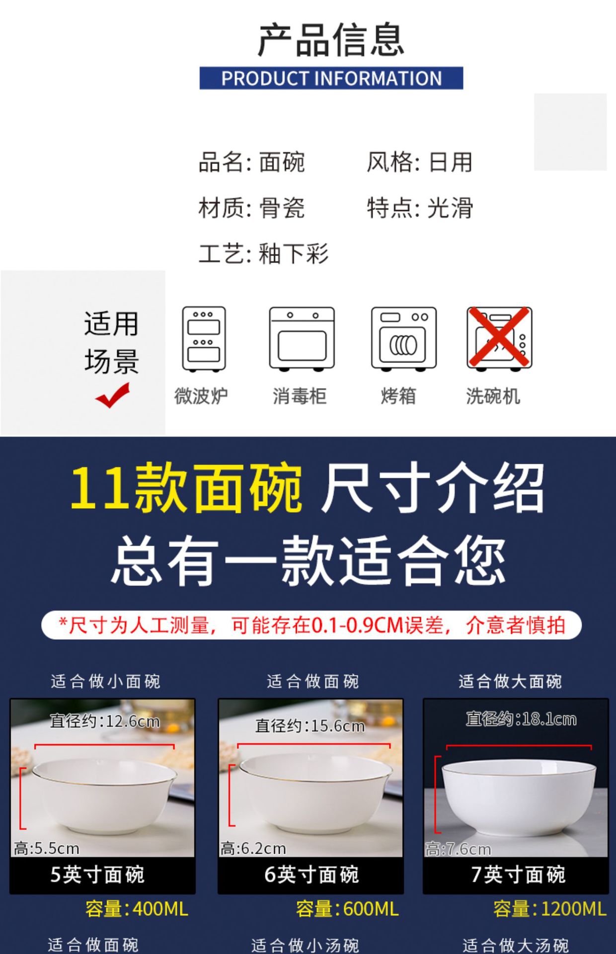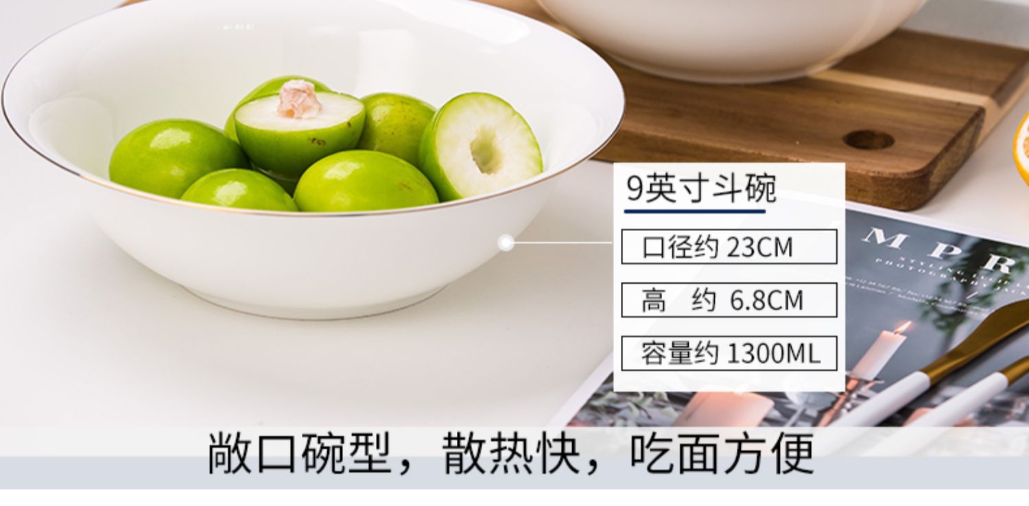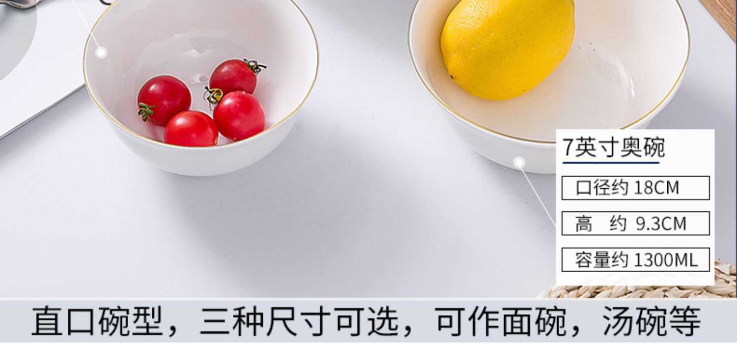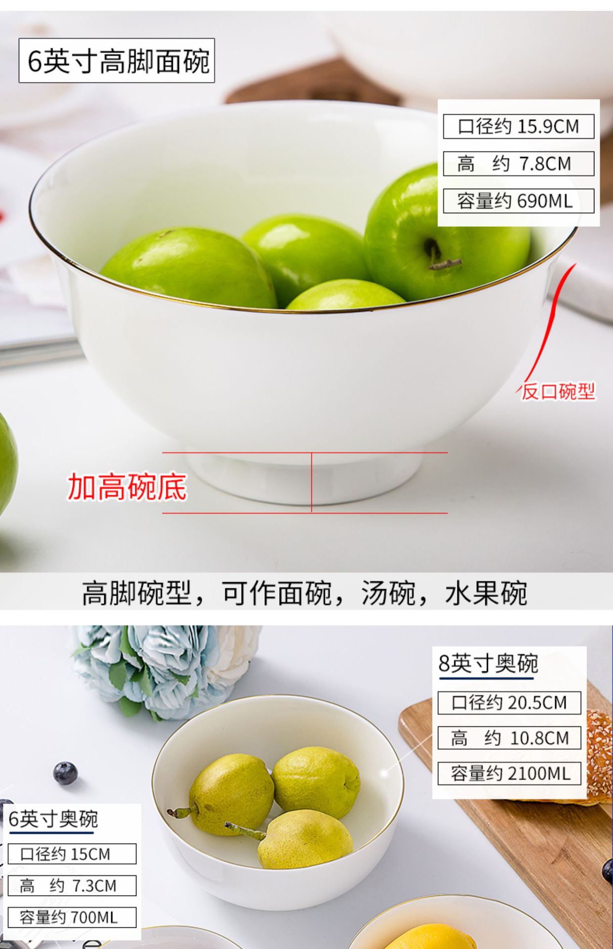 세라믹 국수 그릇 단일 가정 대형 식용 국수 그릇 창조적 인 순수한 흰색 프놈펜 유럽 스타일 대형 그릇 6.5 인치 뼈 중국 수프 그릇스토어 가기