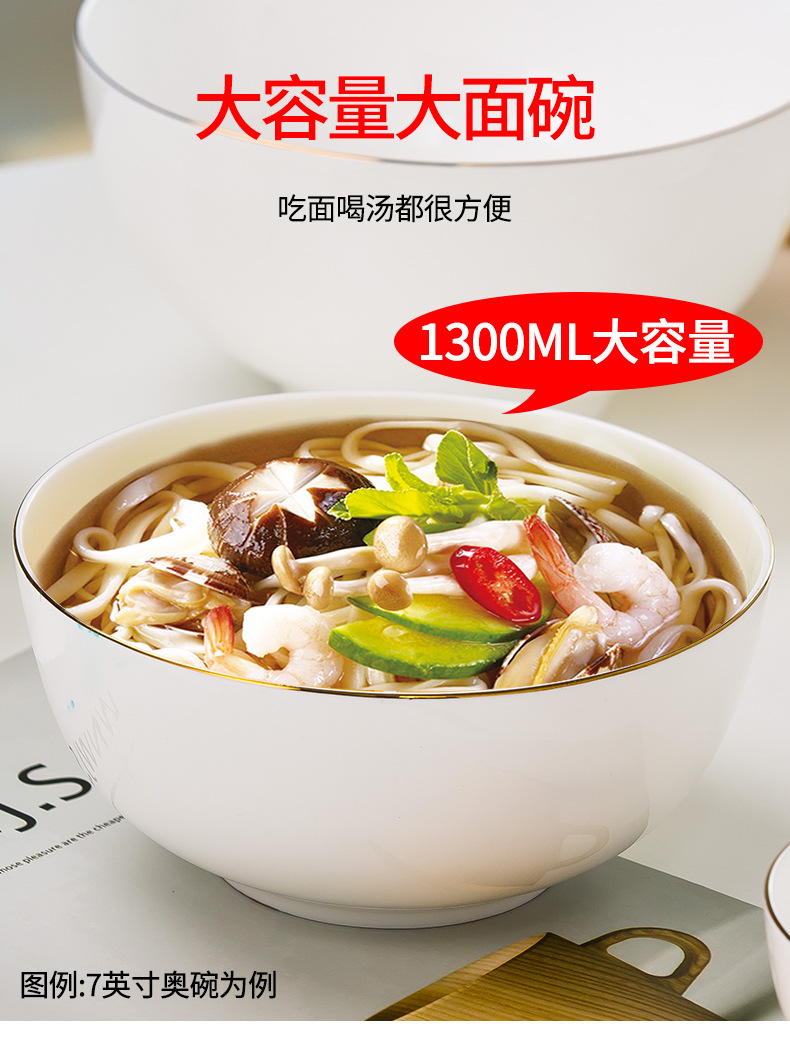 • 7inch 국수그릇 (업그레이드된 이중선 금도장) [1200ml 대형 국수그릇] &