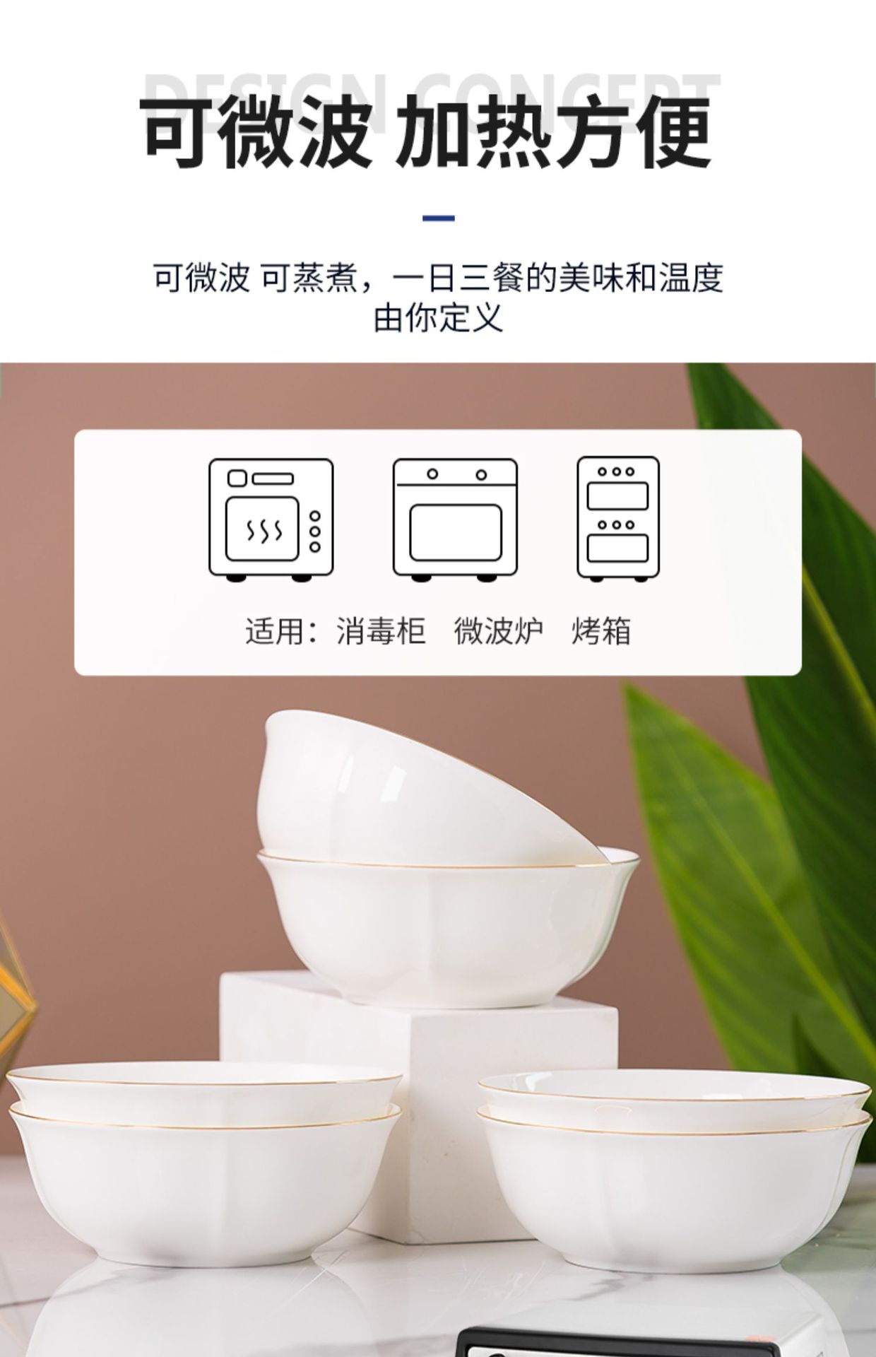 세라믹 국수 그릇 단일 가정 대형 식용 국수 그릇 창조적 인 순수한 흰색 프놈펜 유럽 스타일 대형 그릇 6.5 인치 뼈 중국 수프 그릇