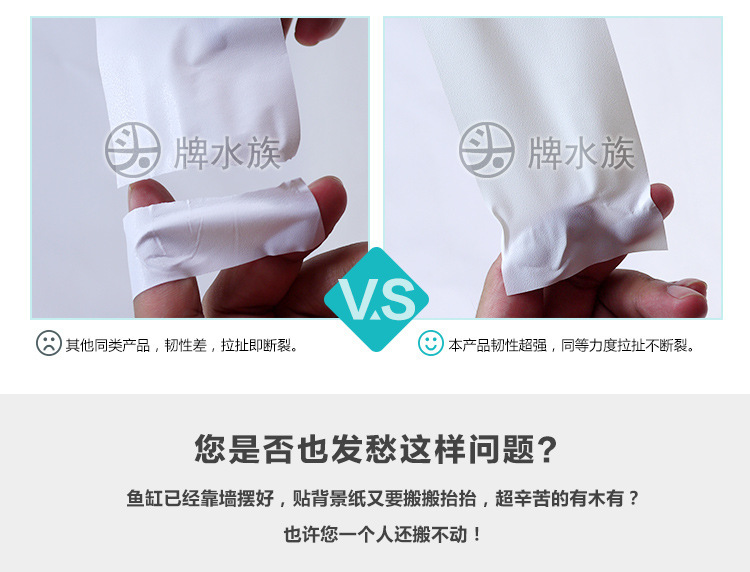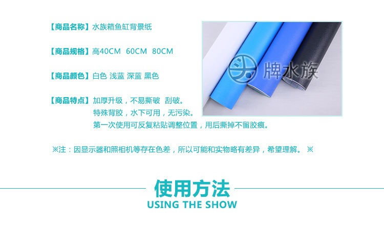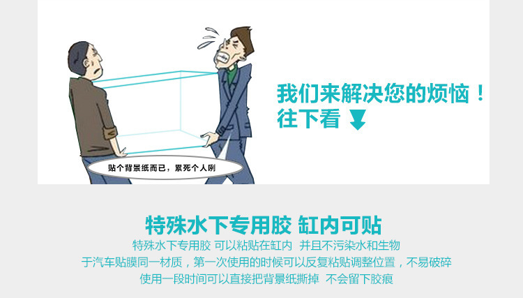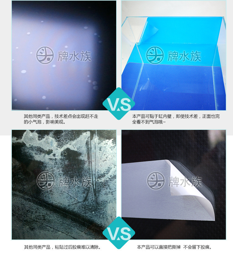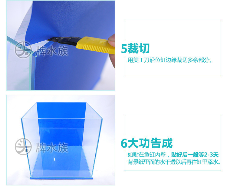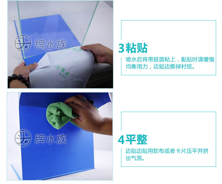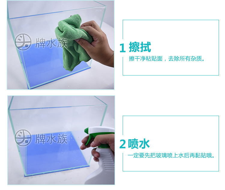 ·本产品为不干胶,可直接黏贴在擦干净的鱼缸玻璃外面