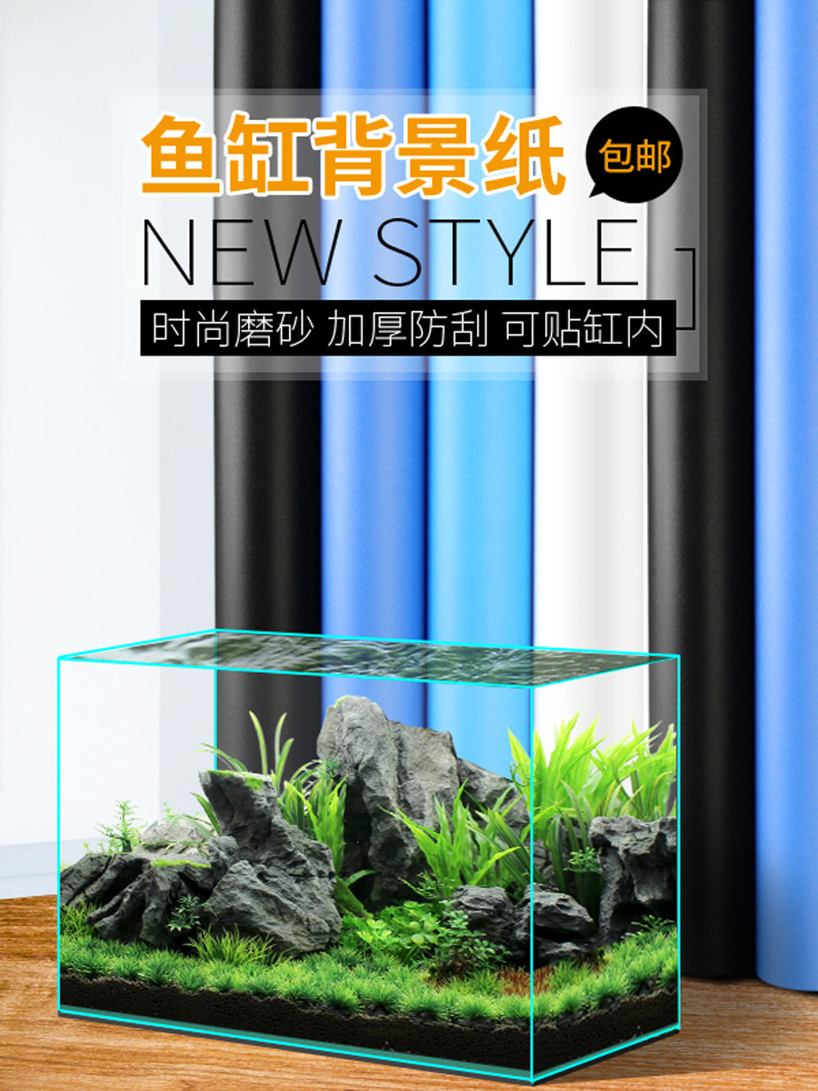 鱼缸玻璃背景贴纸缸外遮光贴自贴纸底部缸内装饰贴造景黑色白壁纸스토어 가기
