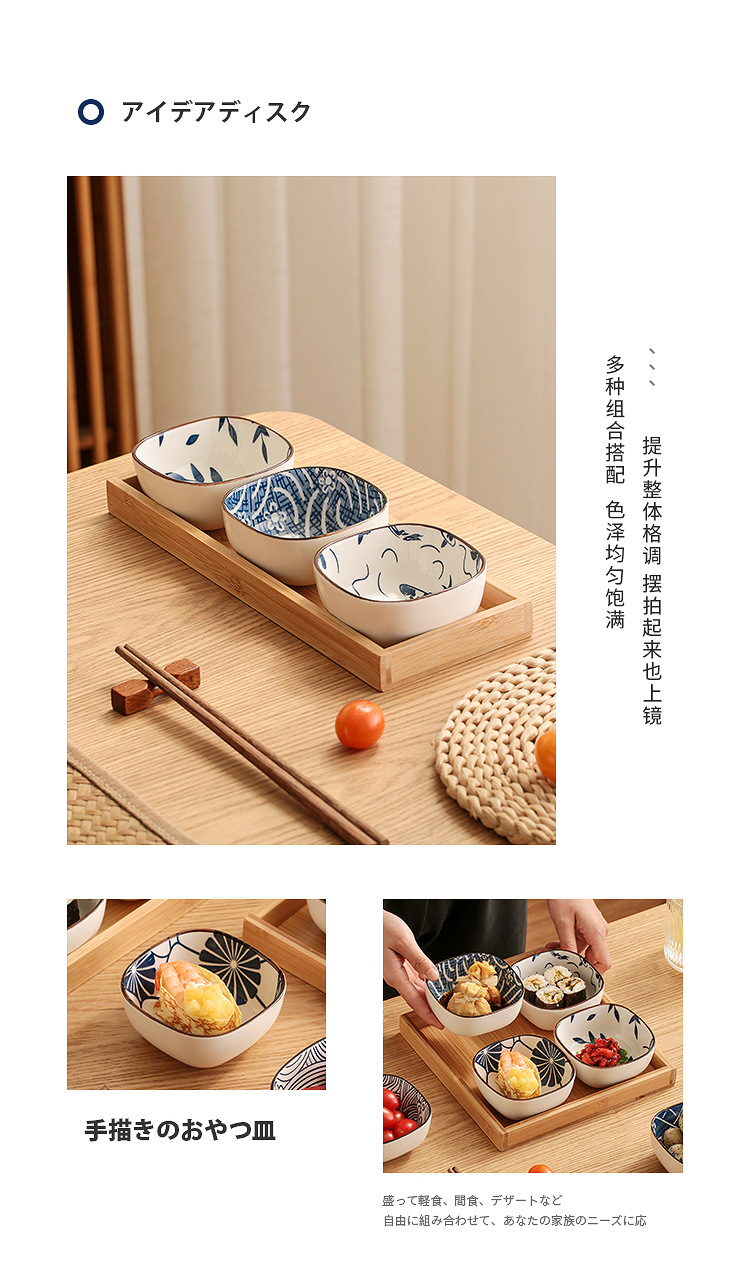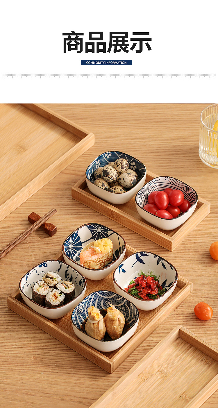 일본식 유약 세라믹 접시 작은 접시 상업 소스 조미료 접시 사각 스낵 접시 트레이
