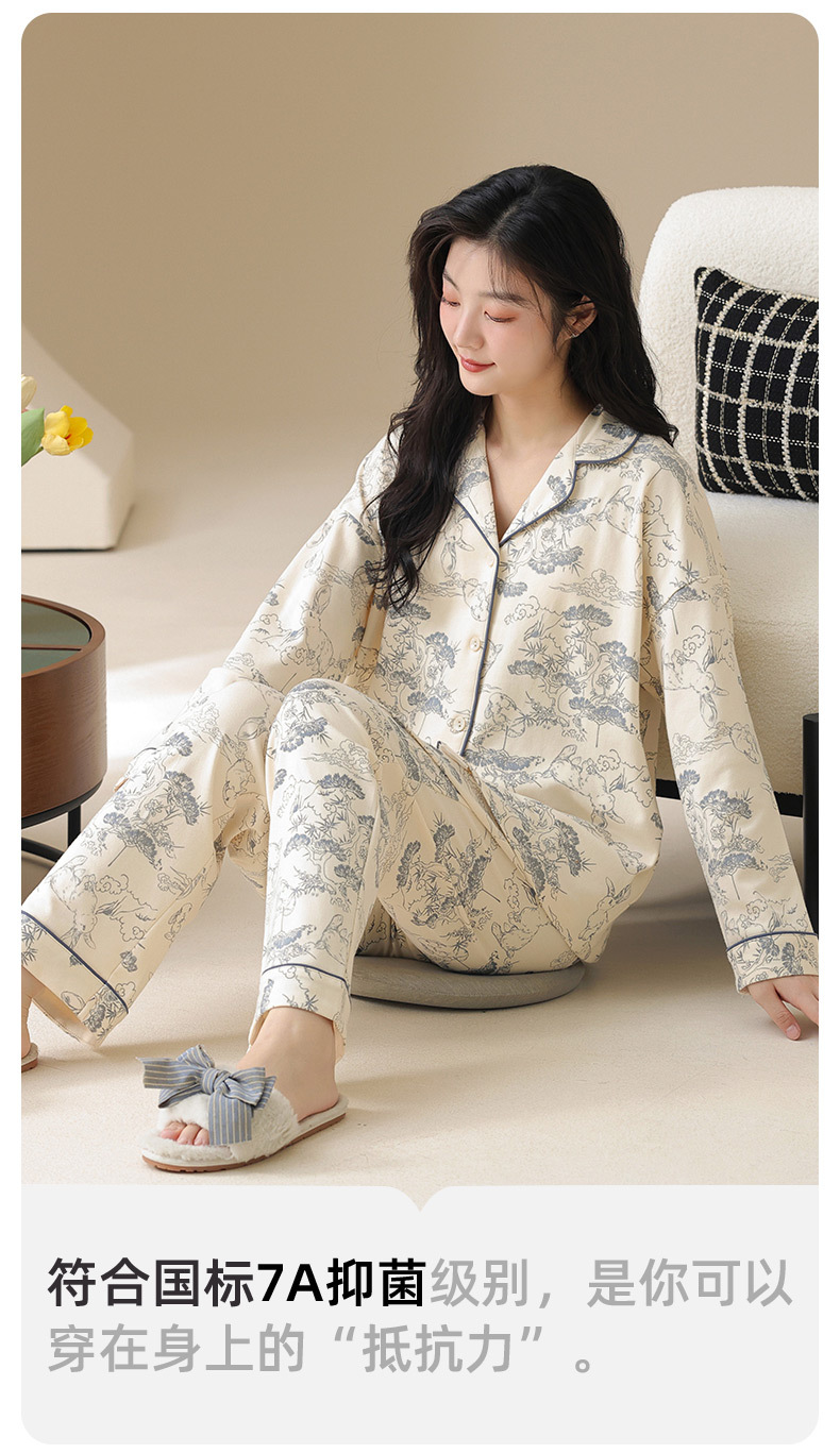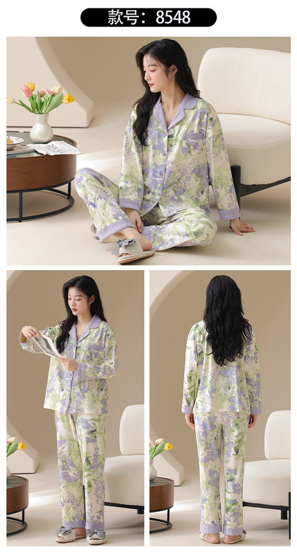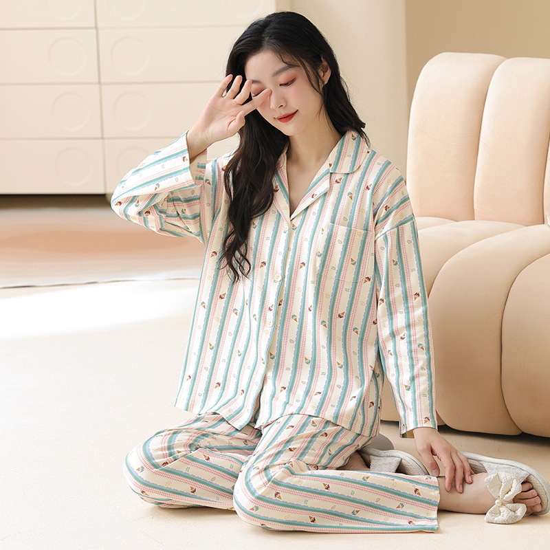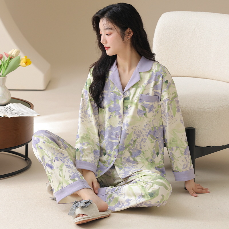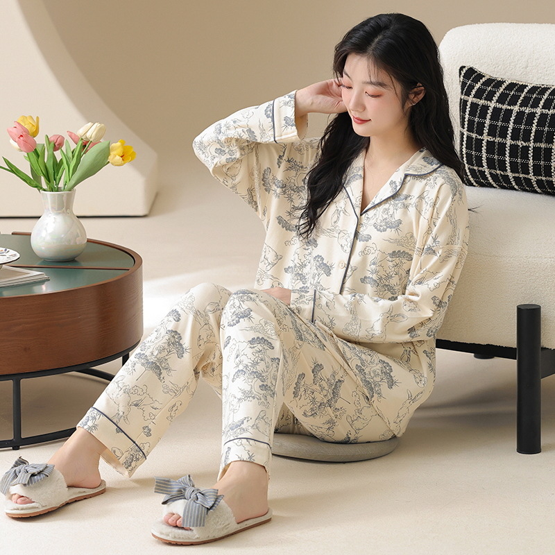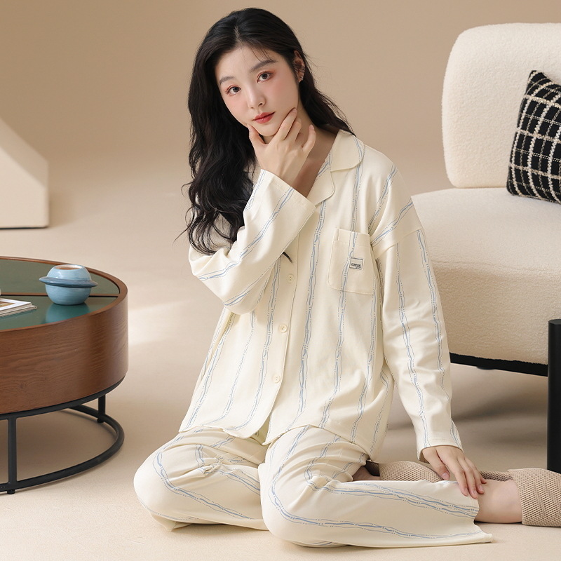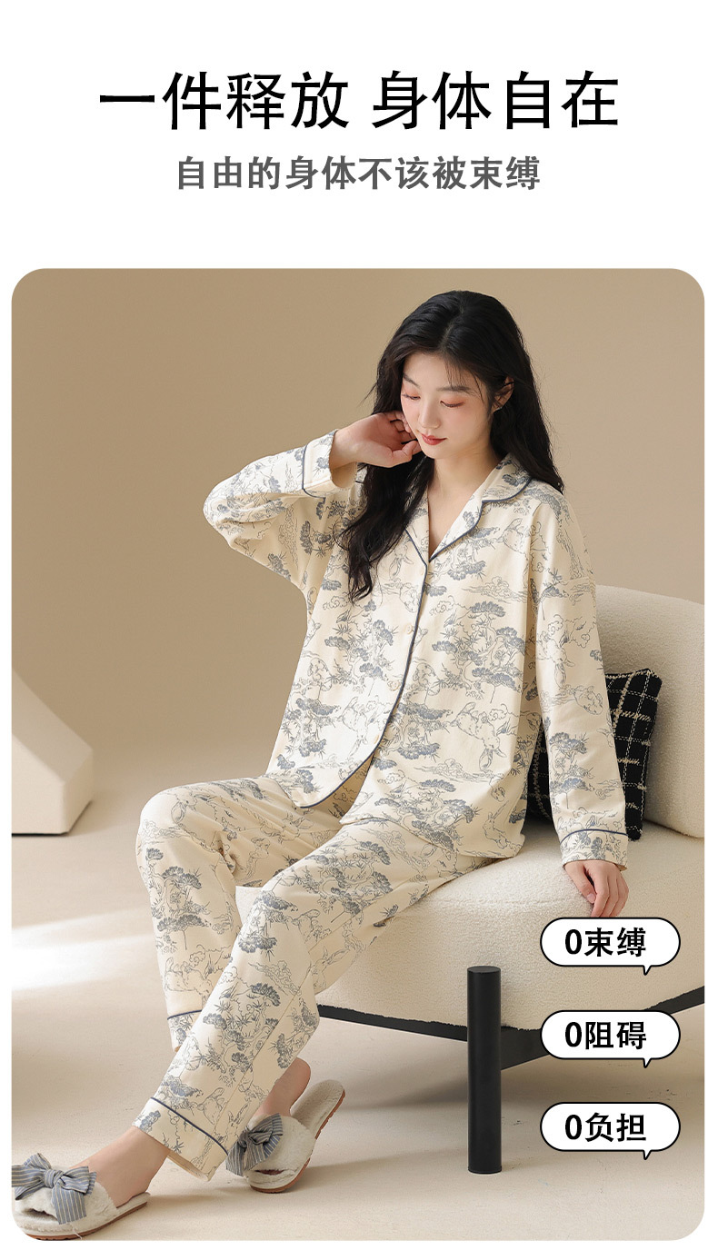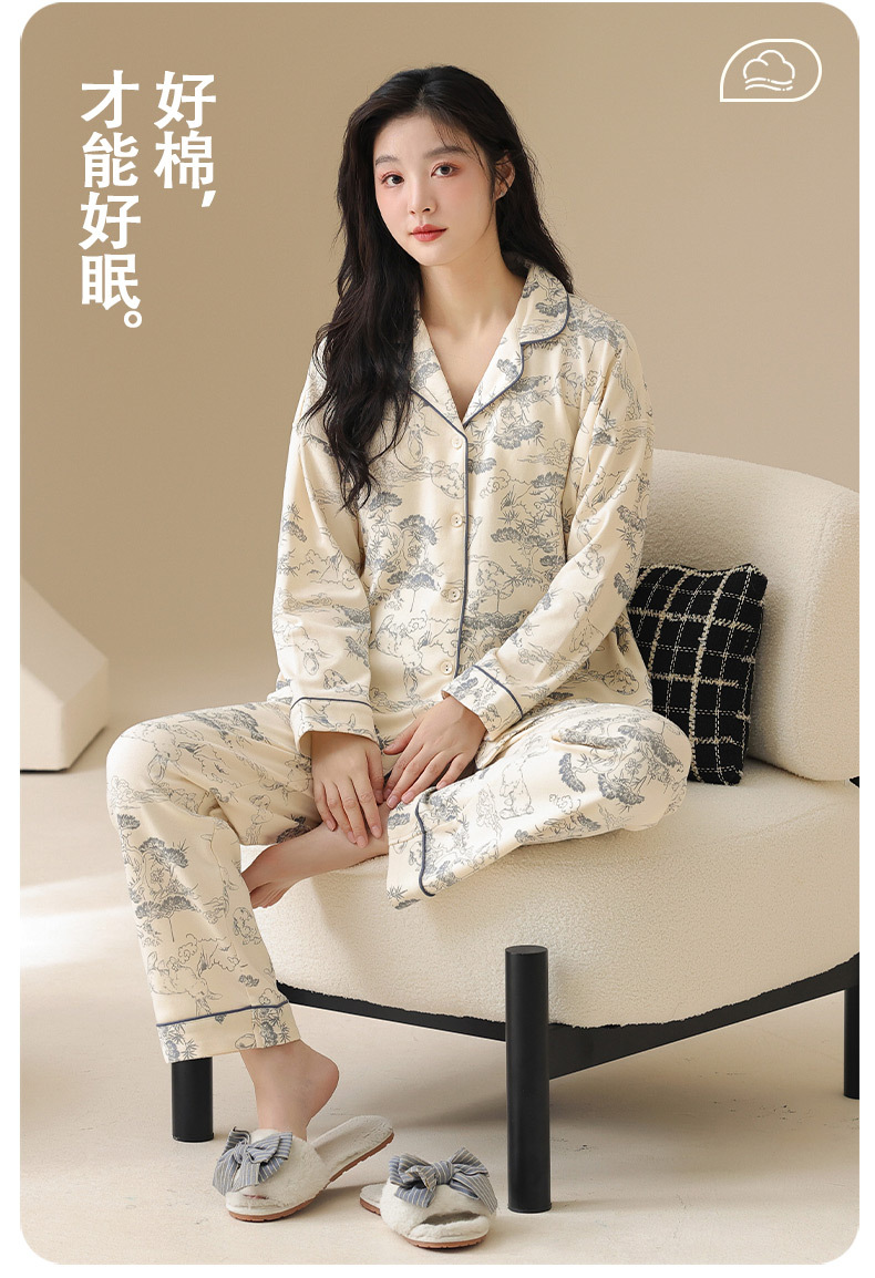 순면 잠옷 여성용 봄 가을 2025 신상품 카디건 긴팔 긴바지 심플 캐주얼 여성 세트 홈웨어스토어 가기