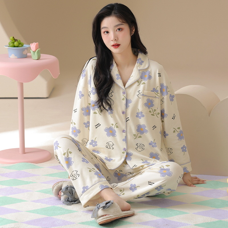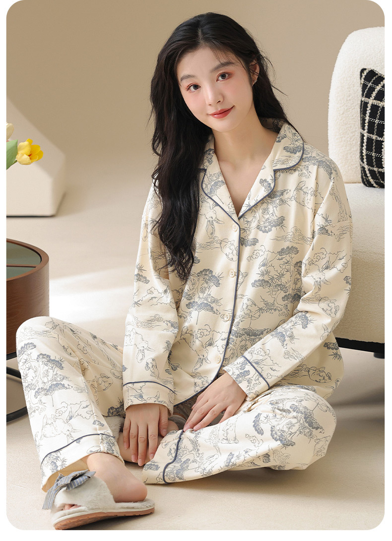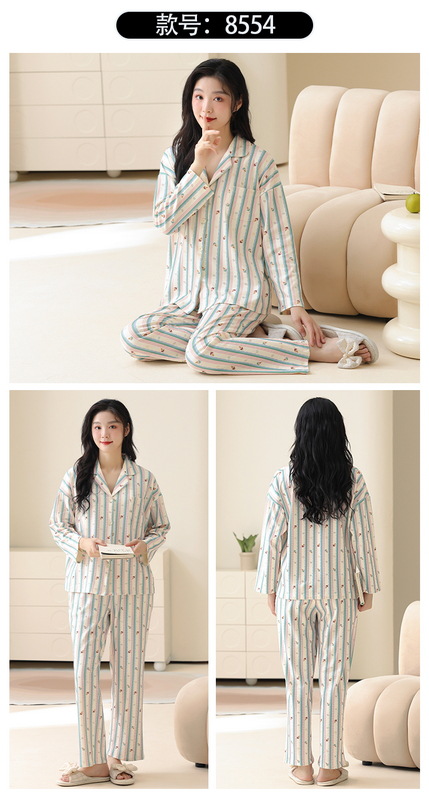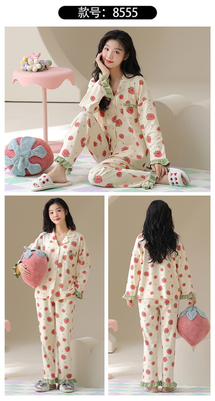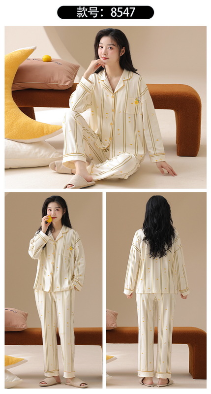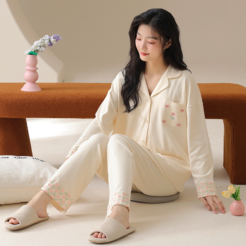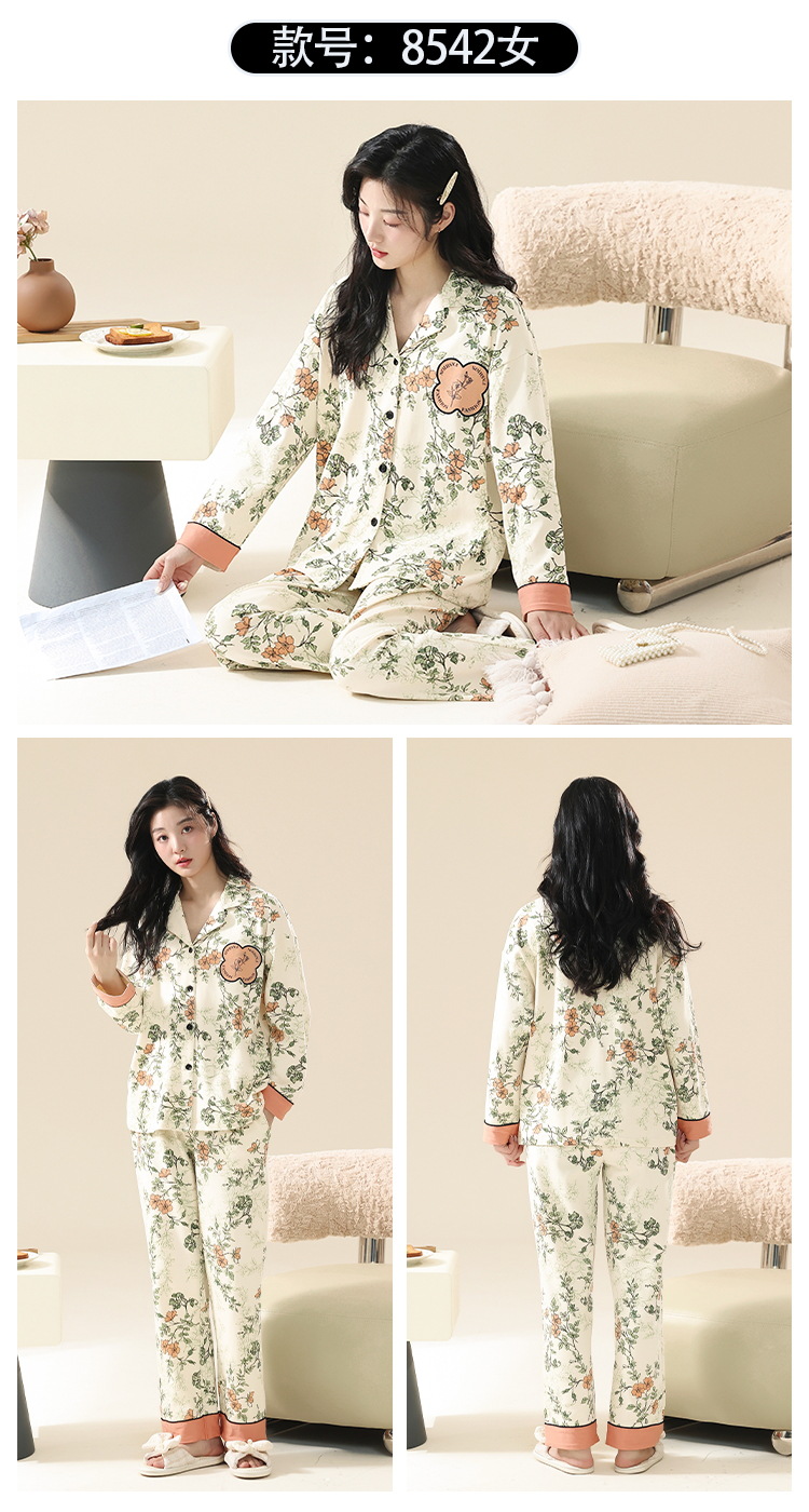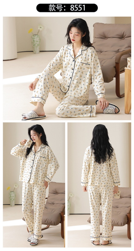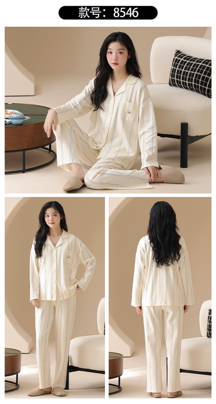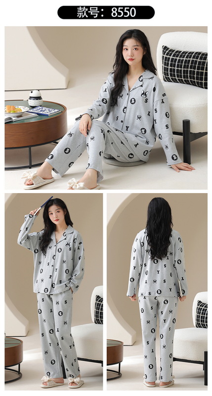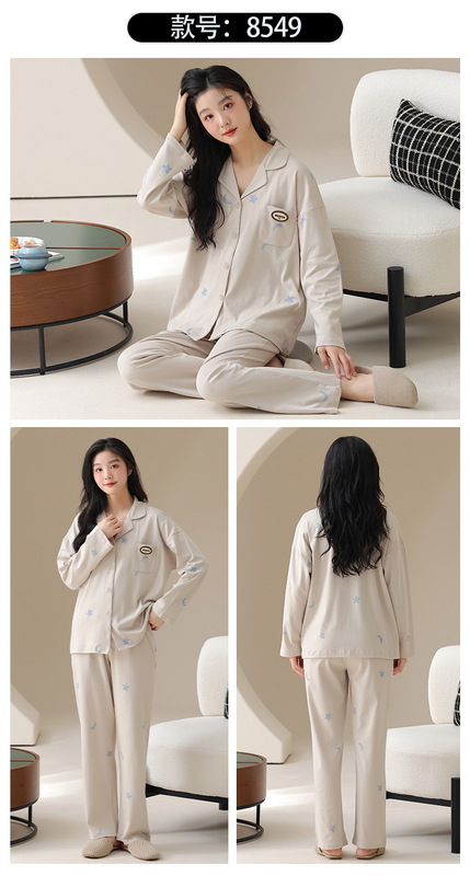 순면 잠옷 여성용 봄 가을 2025 신상품 카디건 긴팔 긴바지 심플 캐주얼 여성 세트 홈웨어스토어 가기