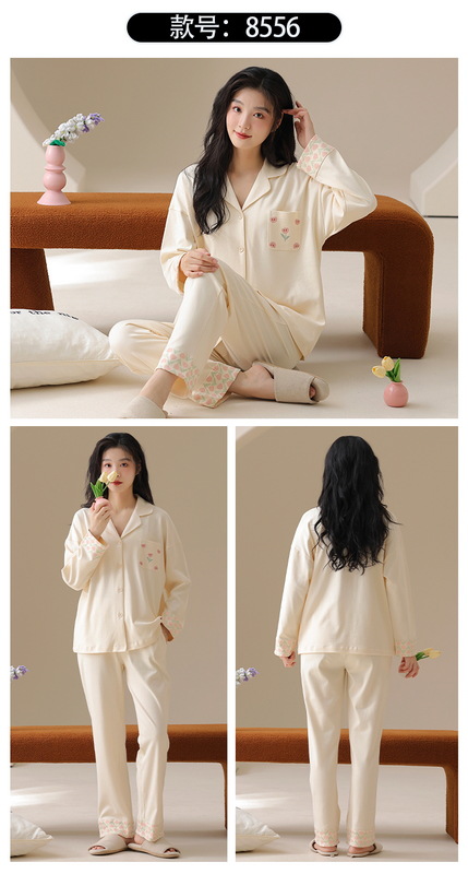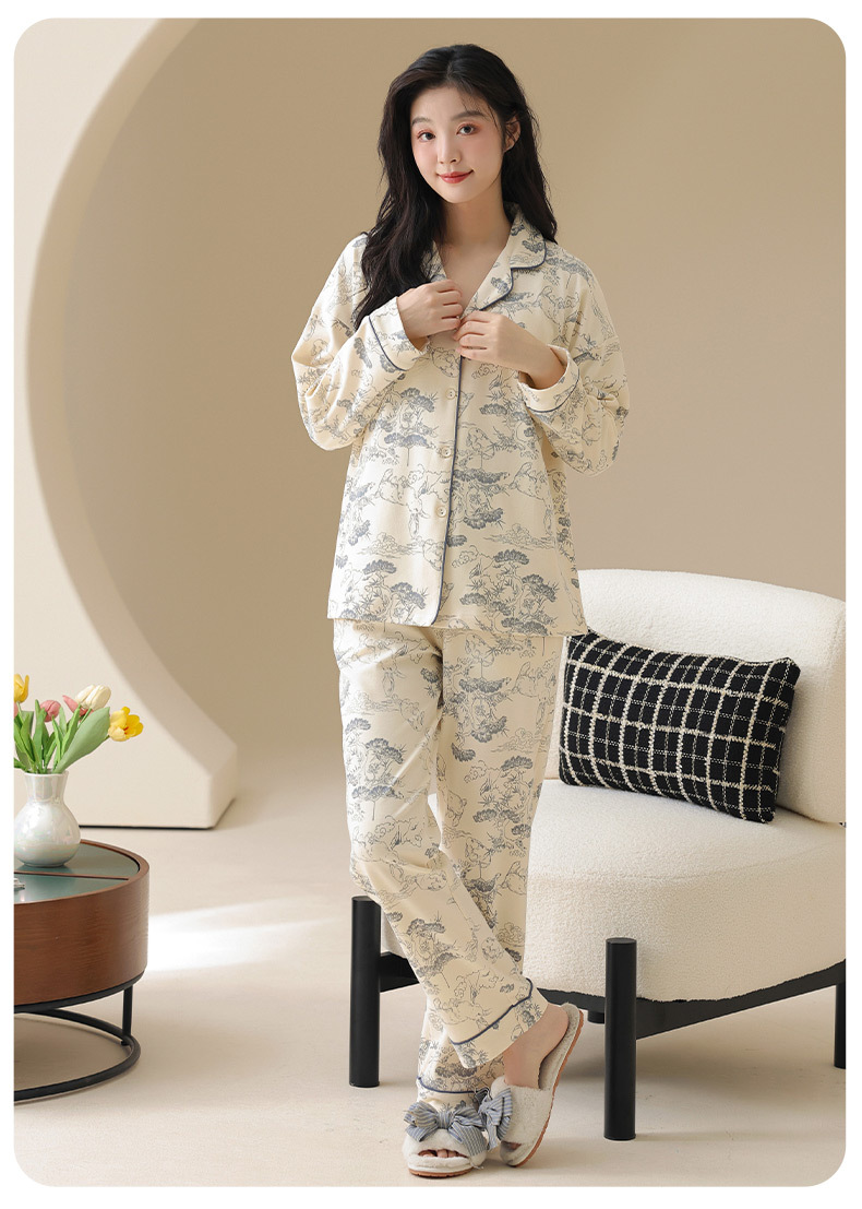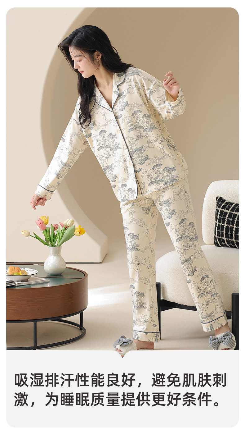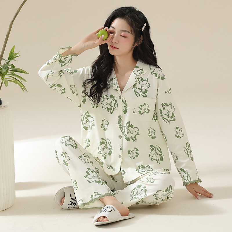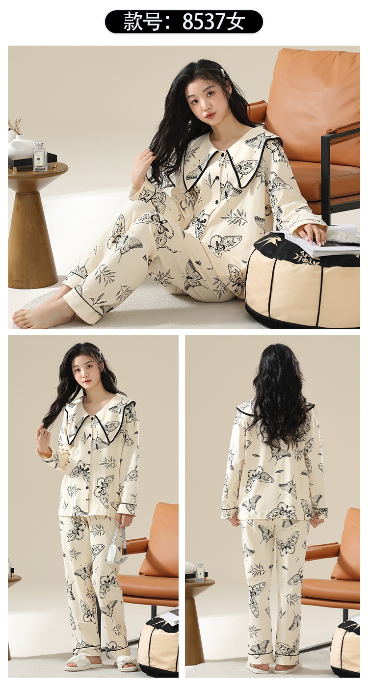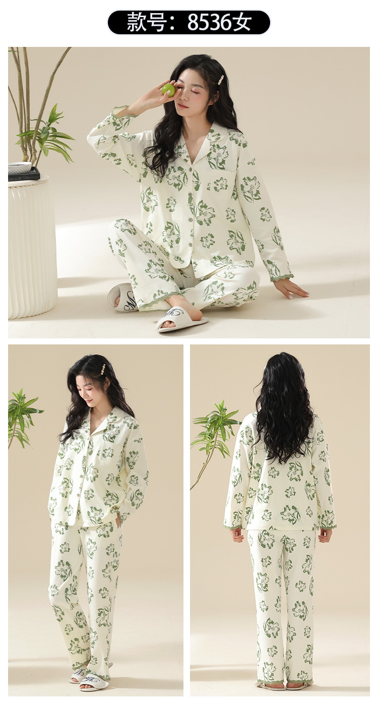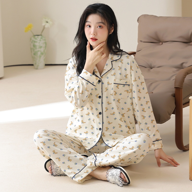 순면 잠옷 여성용 봄 가을 2025 신상품 카디건 긴팔 긴바지 심플 캐주얼 여성 세트 홈웨어스토어 가기