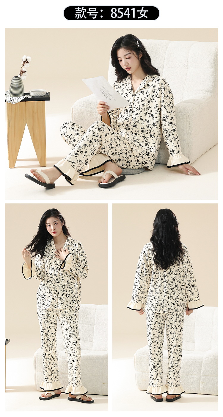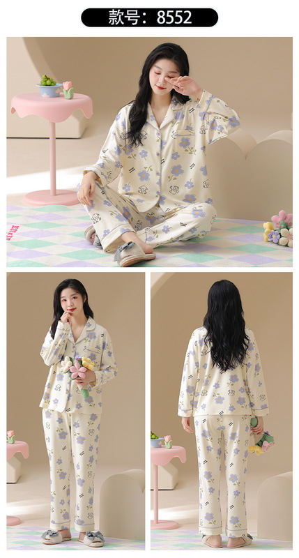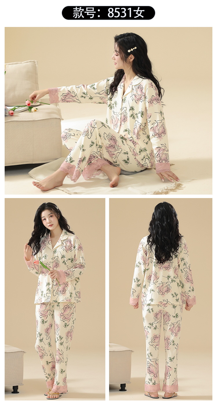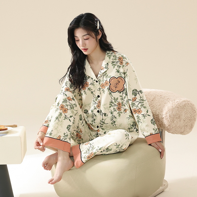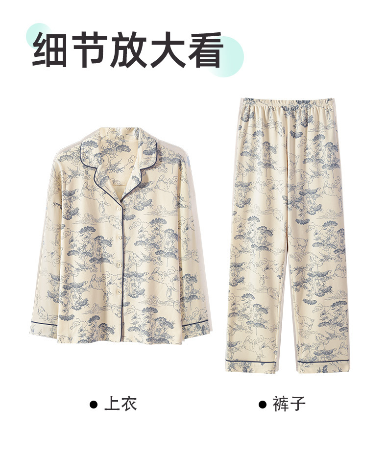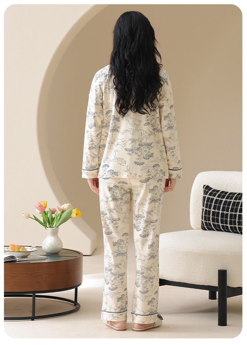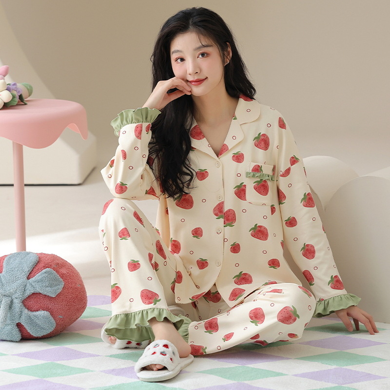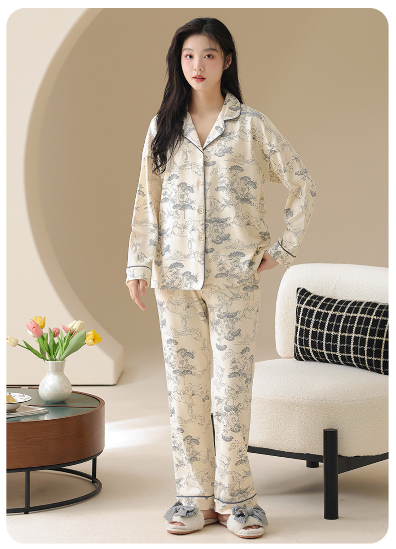 순면 잠옷 여성용 봄 가을 2025 신상품 카디건 긴팔 긴바지 심플 캐주얼 여성 세트 홈웨어스토어 가기