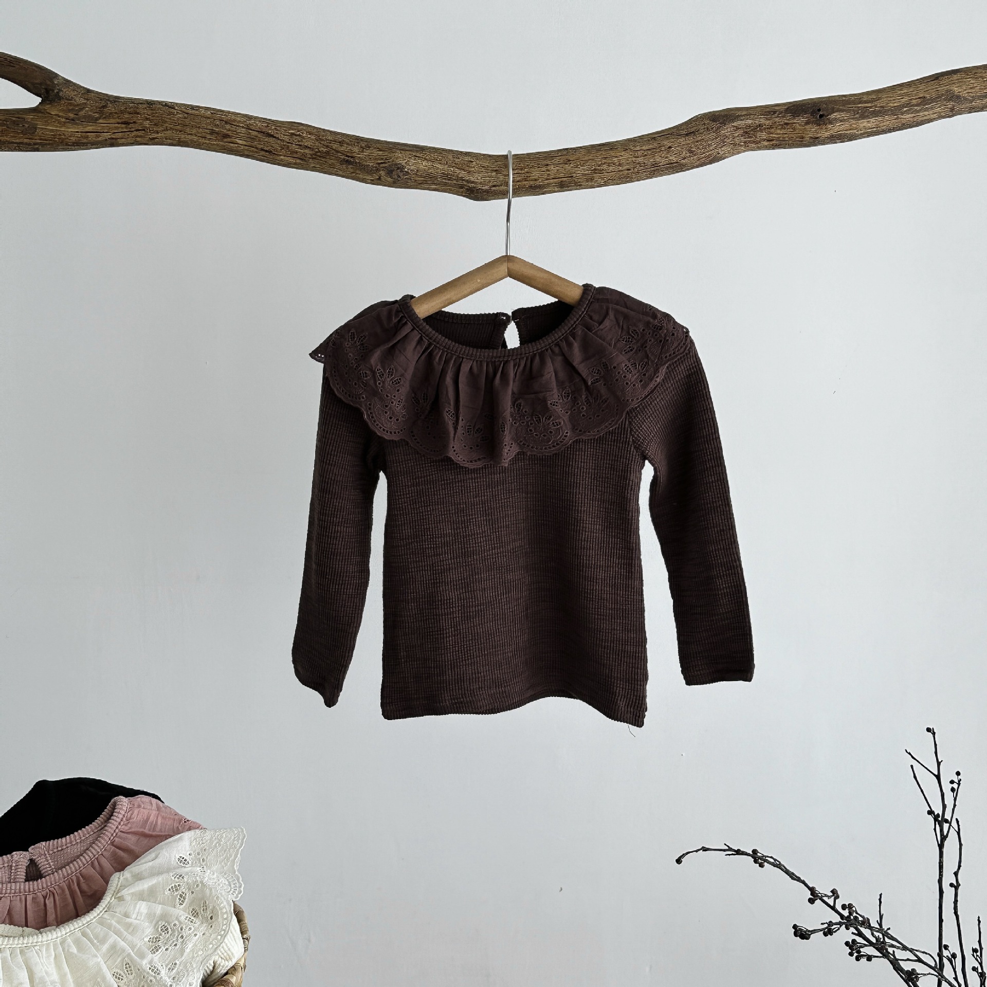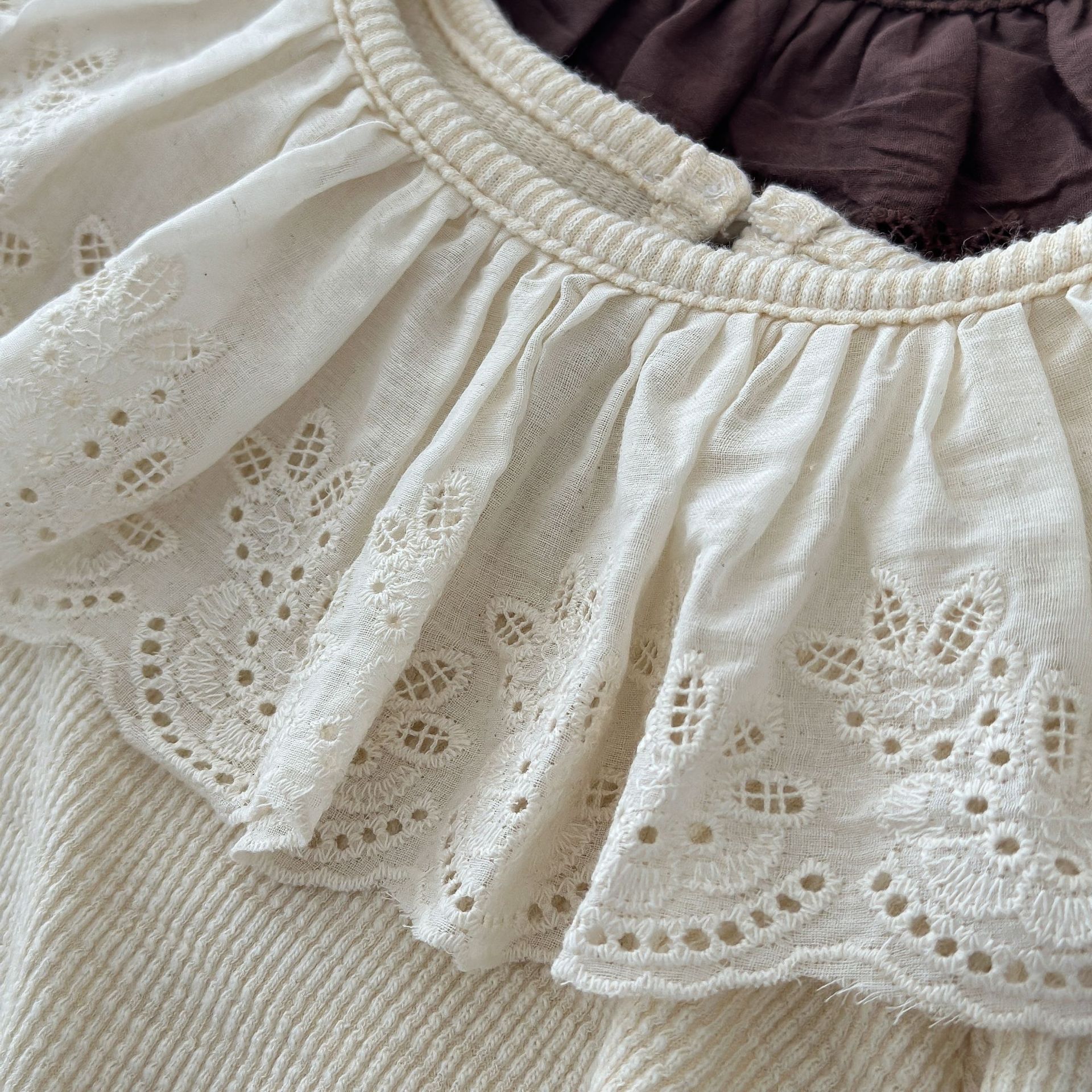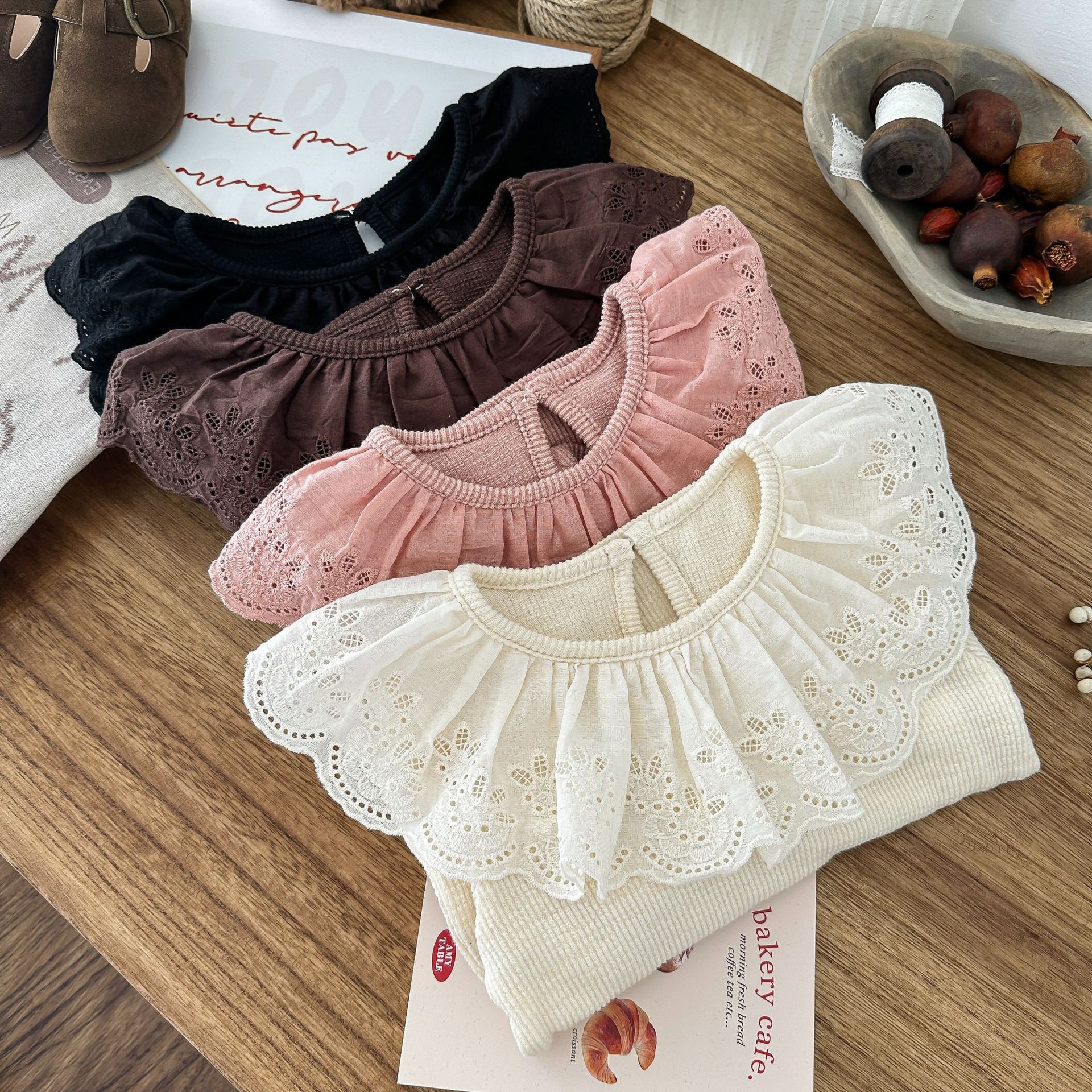 2026 가을 여아 레이스 칼라 베이스 레이어드 셔츠, 아동용 단색 다용도 상의, 여아용 긴팔 기본 스타일