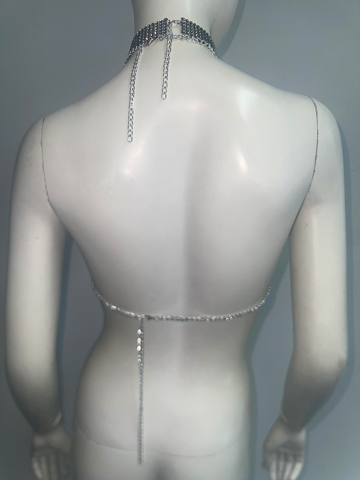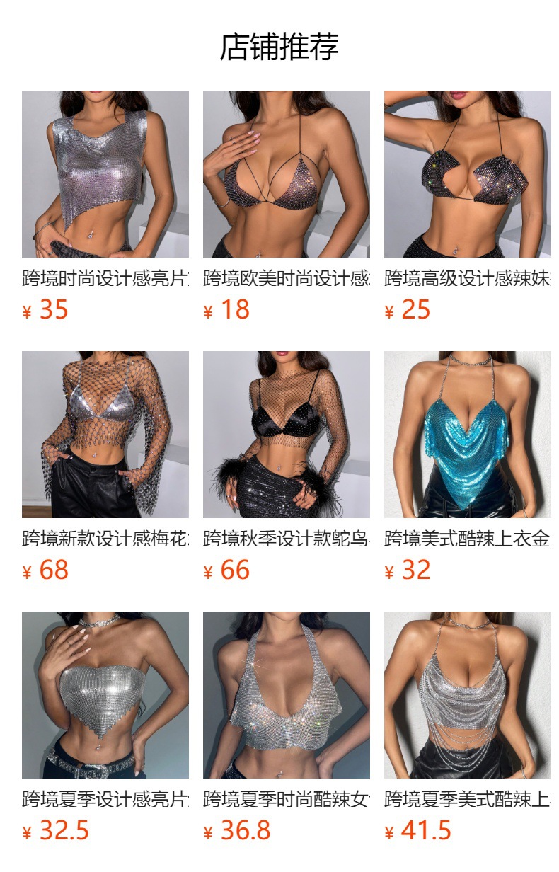 국경을 넘는 유럽과 미국의 스파이스 걸스 섹시한 낚시 그물 Halter Camisole 디자인 Tassel Rhinestone Outer Wear Halter Top Women