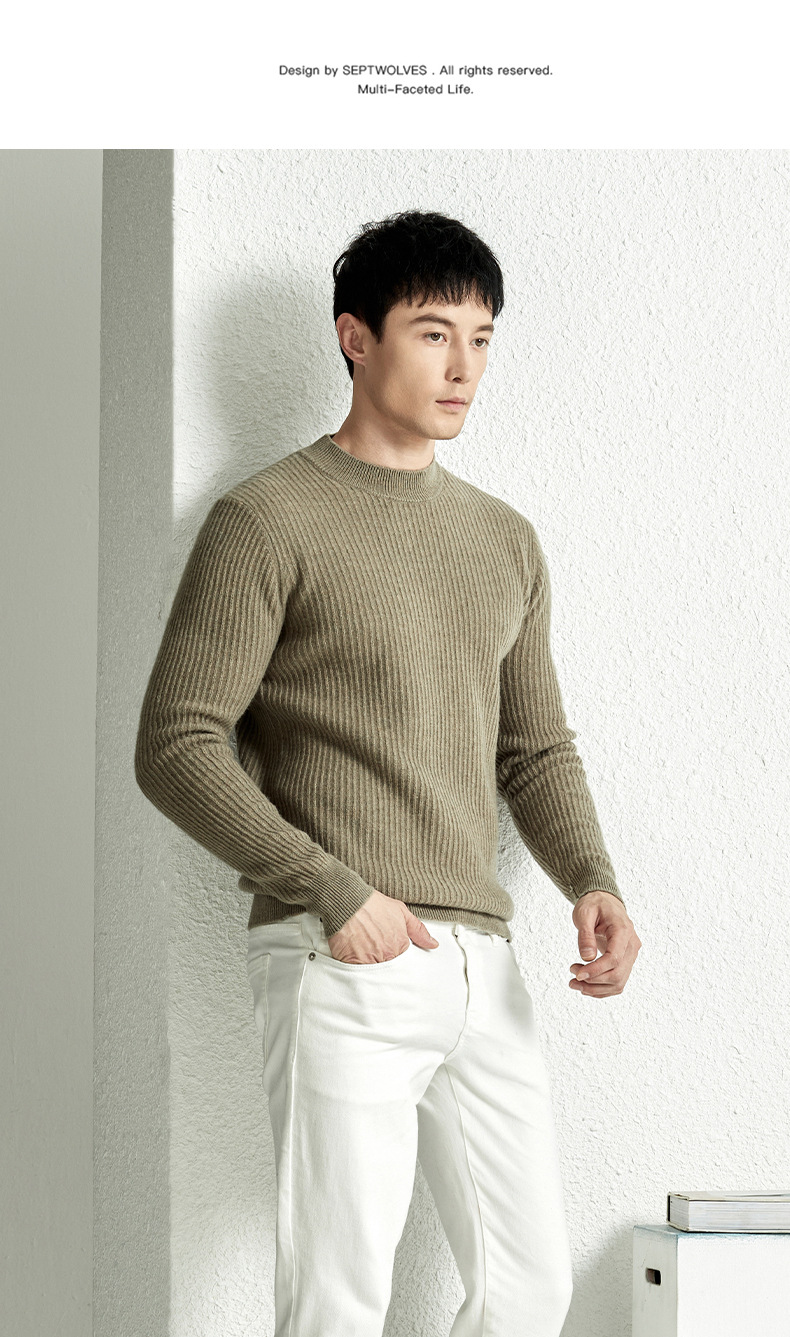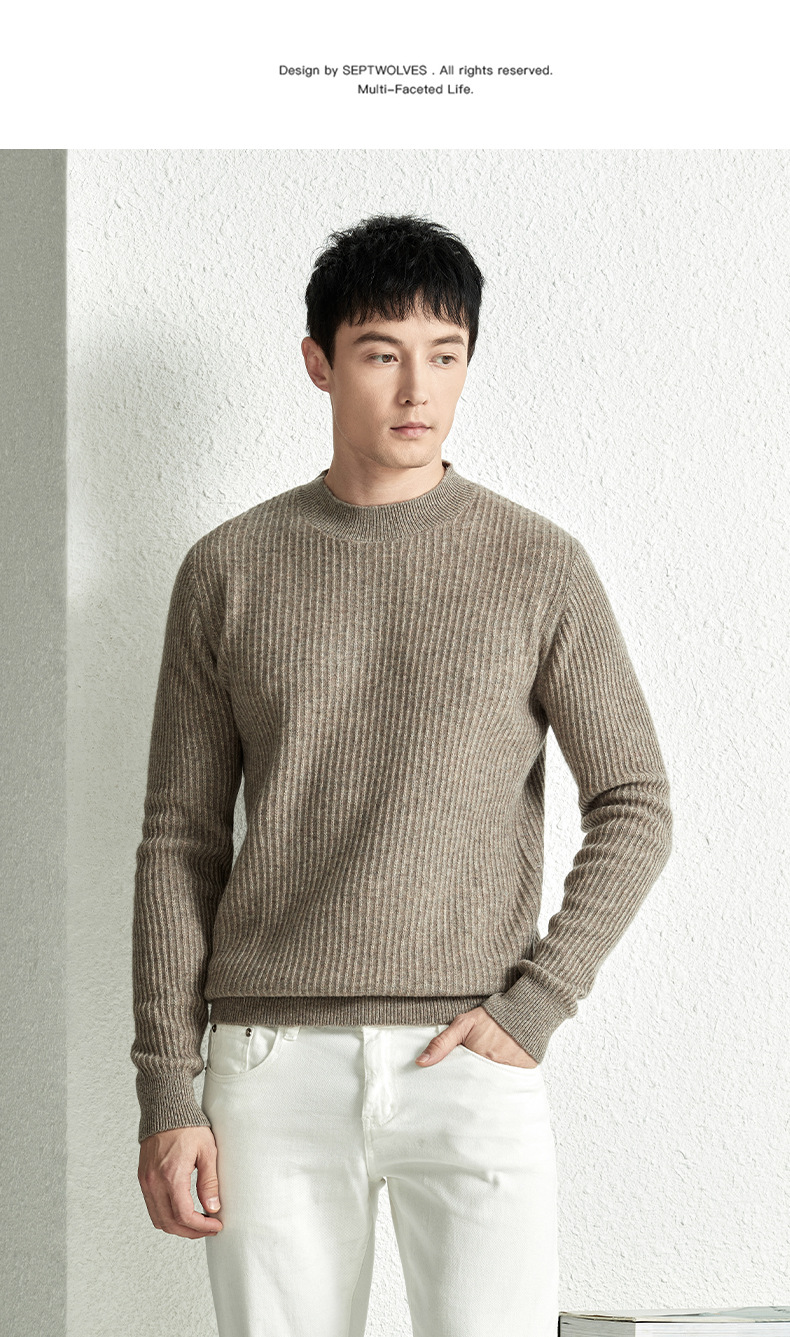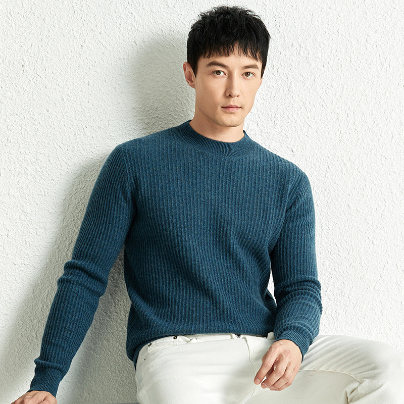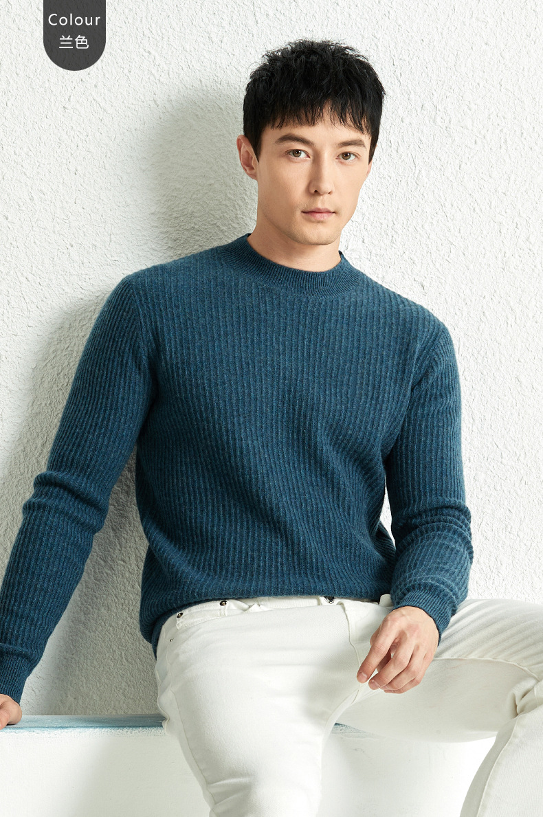 가흥 푸위안 가을과 겨울 캐시미어 스웨터 남자 두꺼운 반 터틀넥 스웨터 하이 엔드 패션 니트 베이스 스웨터 남자 스웨터