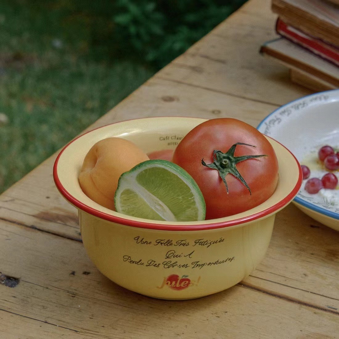 Ins Blogger 같은 스타일 빈티지 세라믹 그릇 프렌치 레터 컬러 수프 그릇 샐러드 아침 식사 그릇 오트 그릇 수출스토어 가기