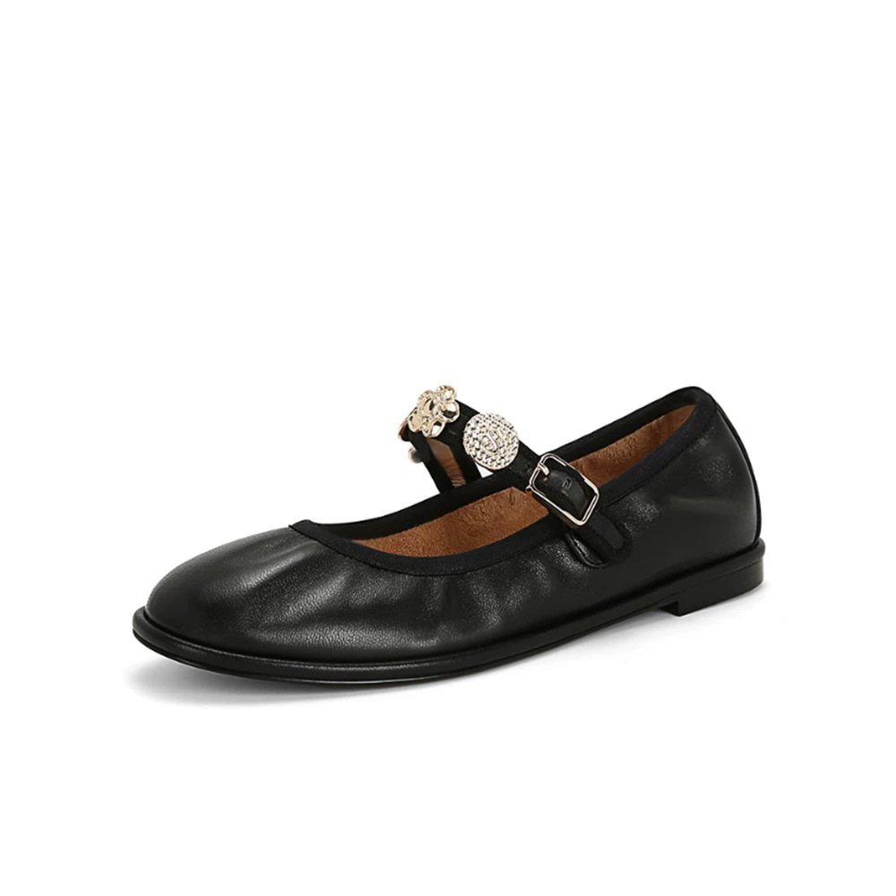 수지아 소가죽 버전~시티 샤오샹~초부드러운 양가죽 배지 버클 메리제인 발레 슈즈 여성용 할머니 플랫 슈즈스토어 가기