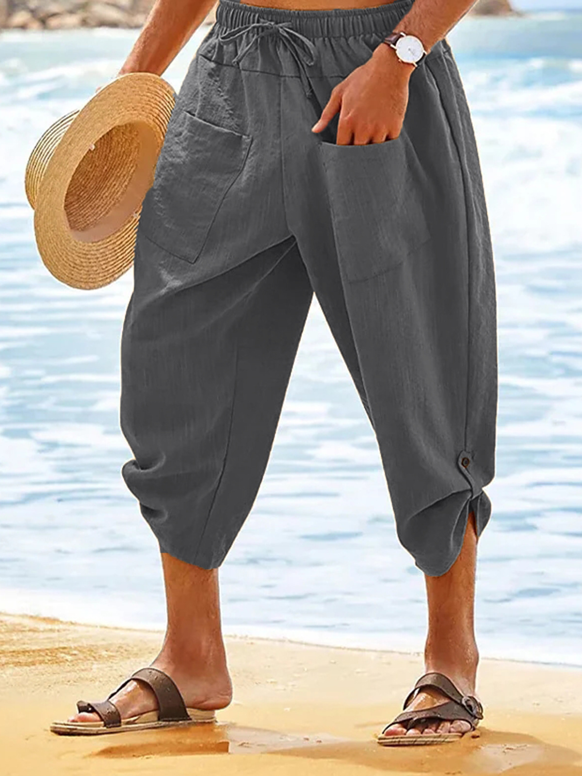 유럽과 미국의 국경 간 폭발 남성면 자른 바지, 여름 해변 바지
