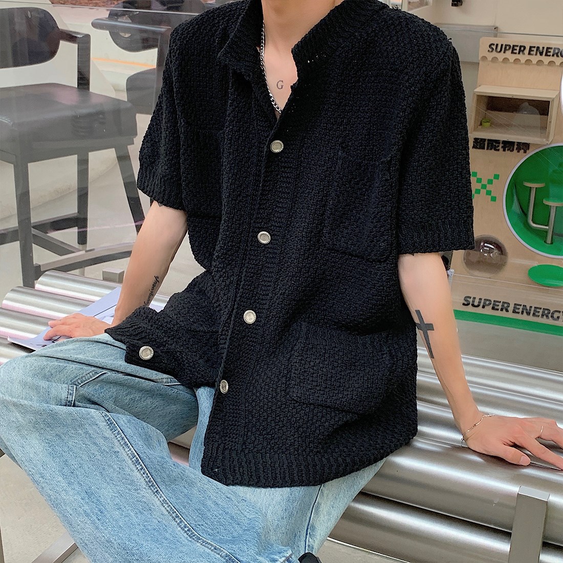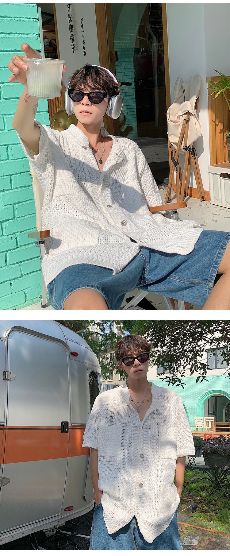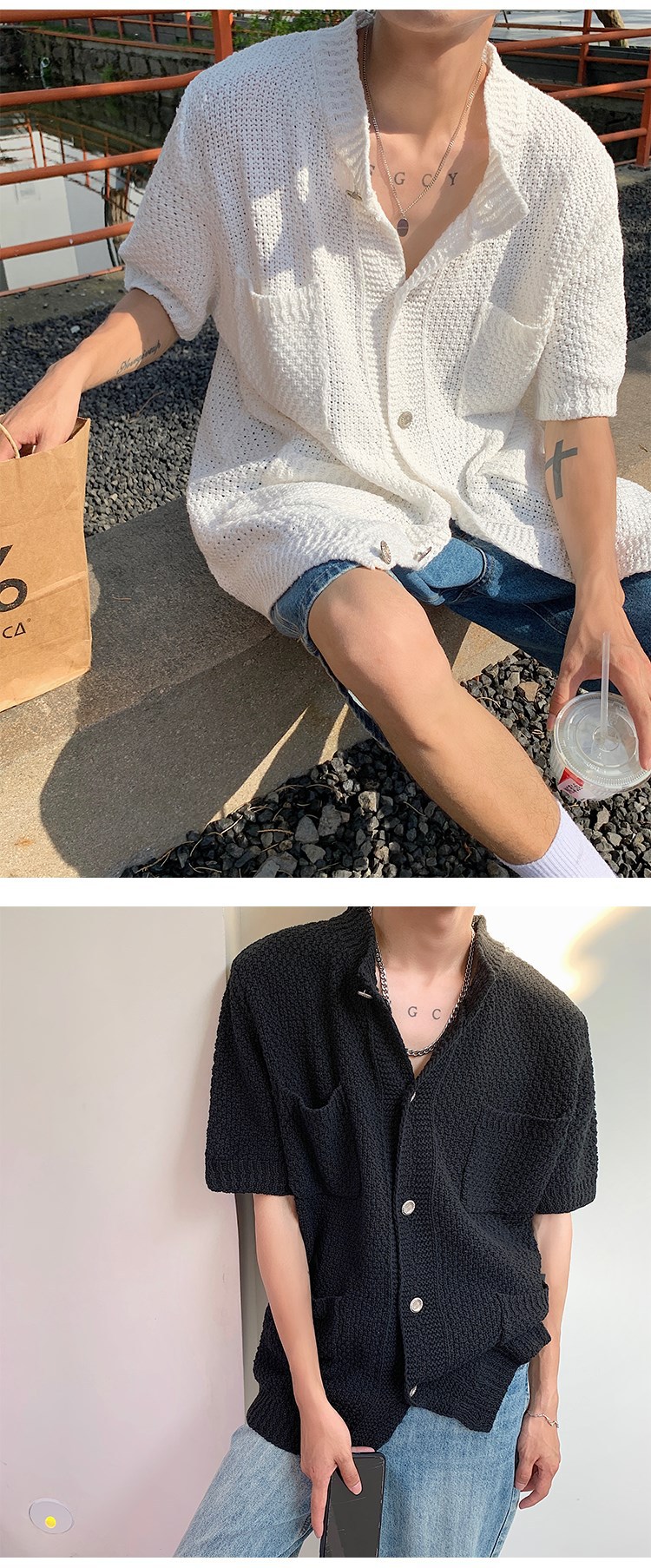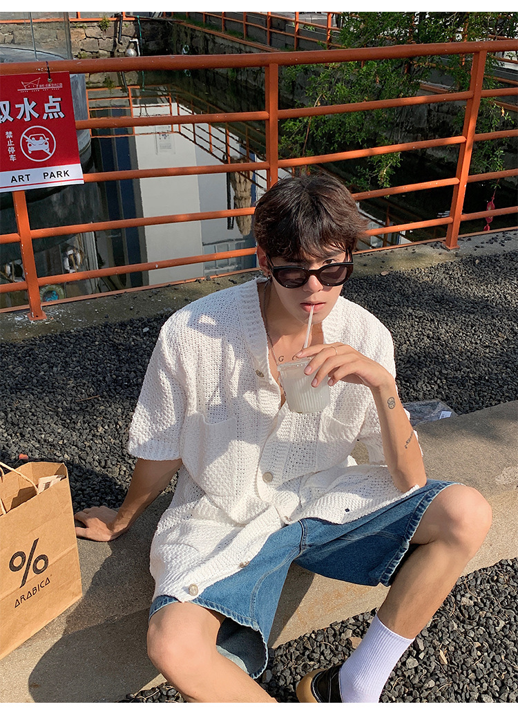 화이트 유피 셔츠 남자 여름 하이 엔드 유피 핸섬 반팔 셔츠 홍콩 스타일 레트로 캐주얼 니트 카디건 재킷스토어 가기