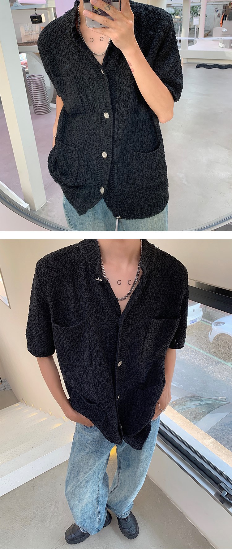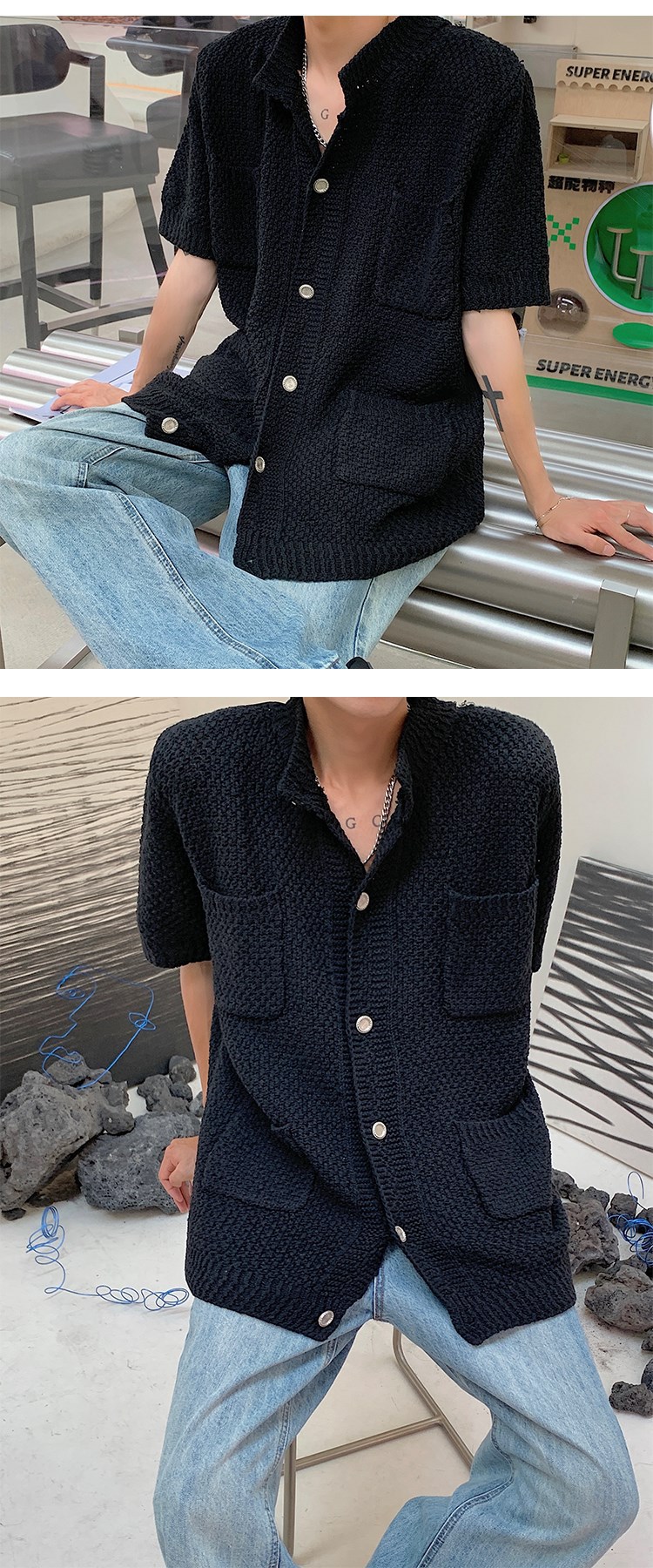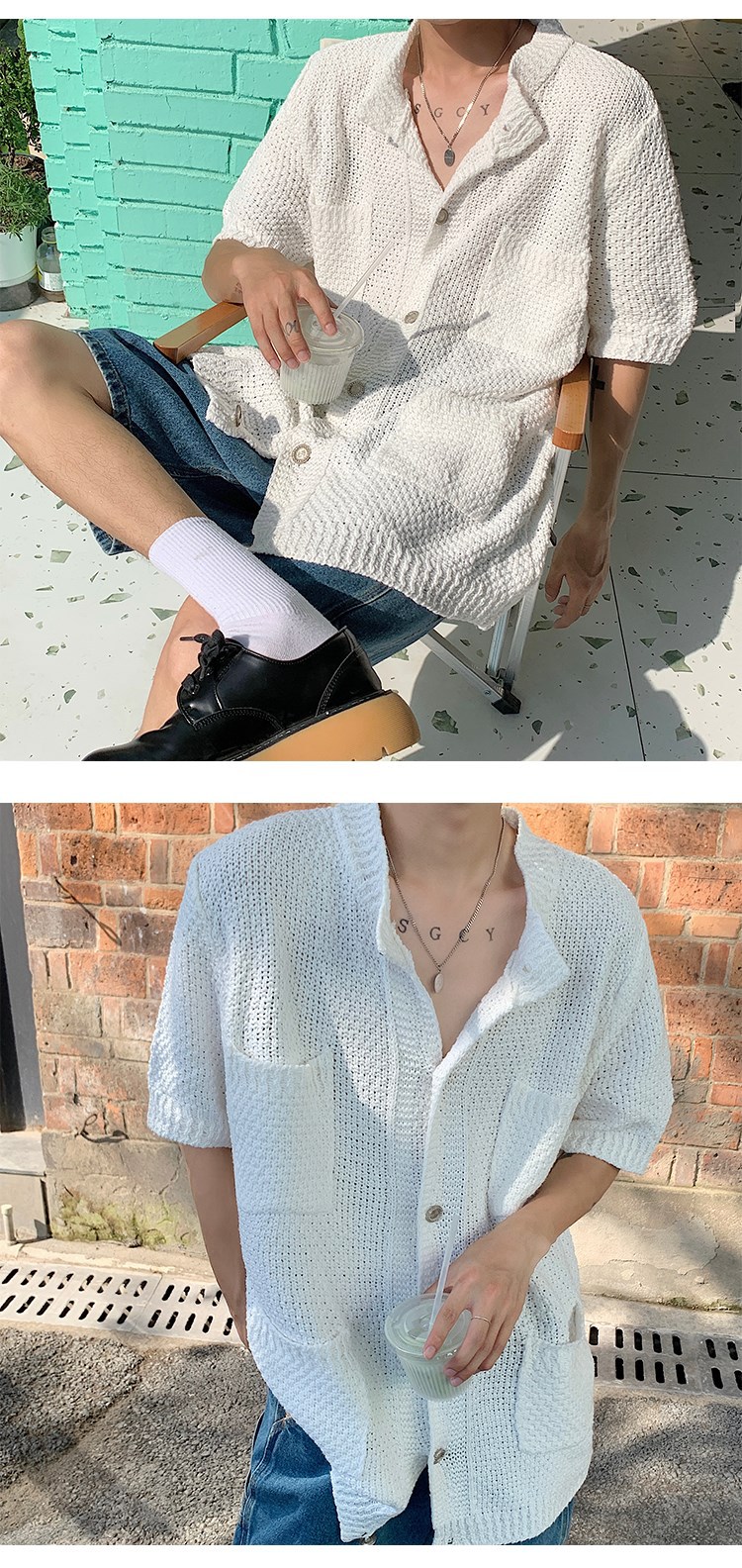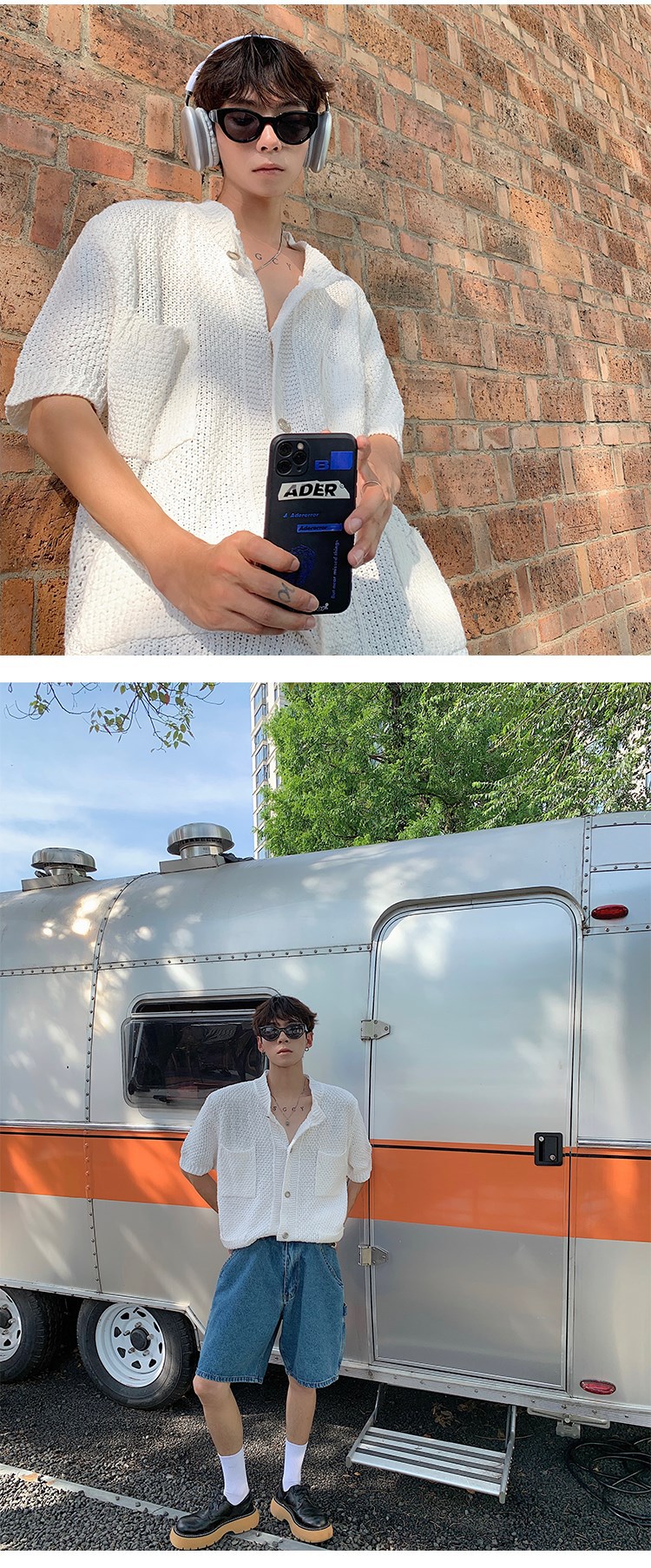 화이트 유피 셔츠 남자 여름 하이 엔드 유피 핸섬 반팔 셔츠 홍콩 스타일 레트로 캐주얼 니트 카디건 재킷스토어 가기