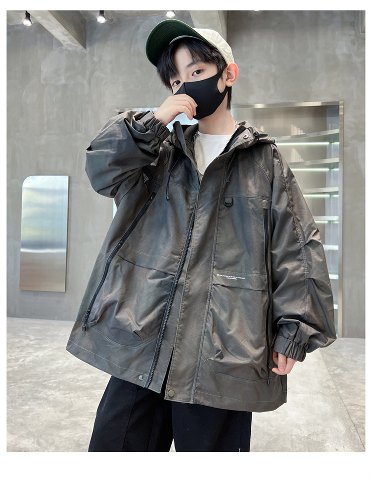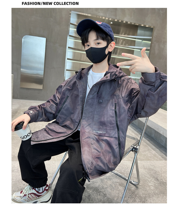 소년 가을 넥타이 염색 후드 재킷 2024 새로운 어린이 서양 핸섬 캐주얼 재킷 윈드 브레이커 재킷스토어 가기
