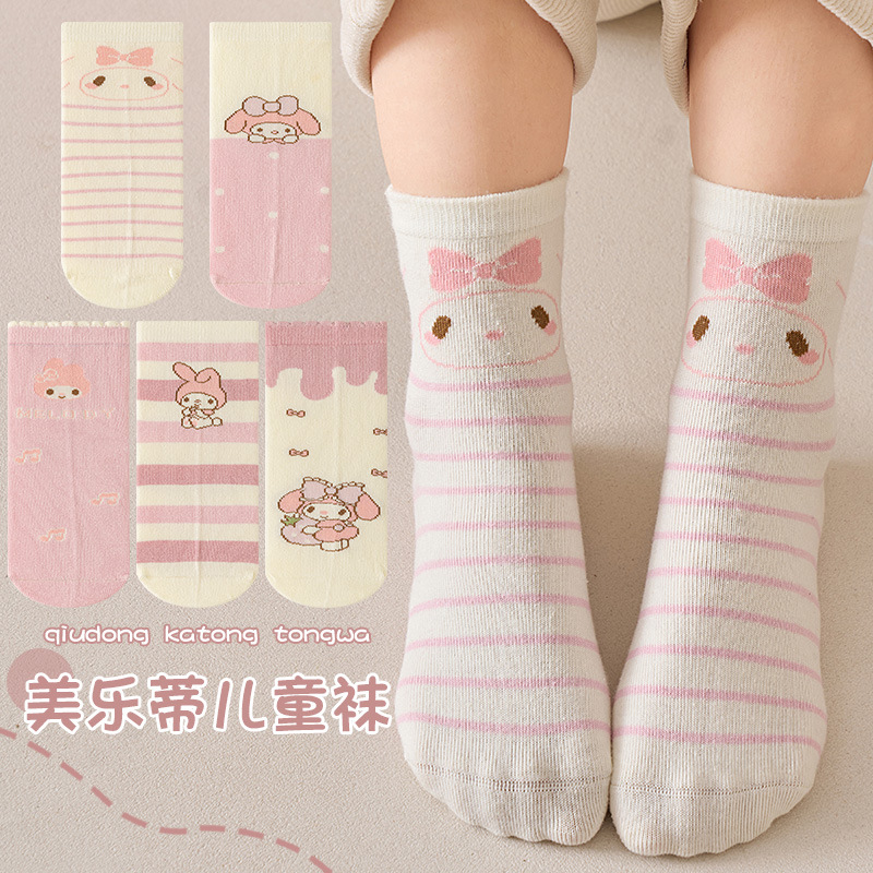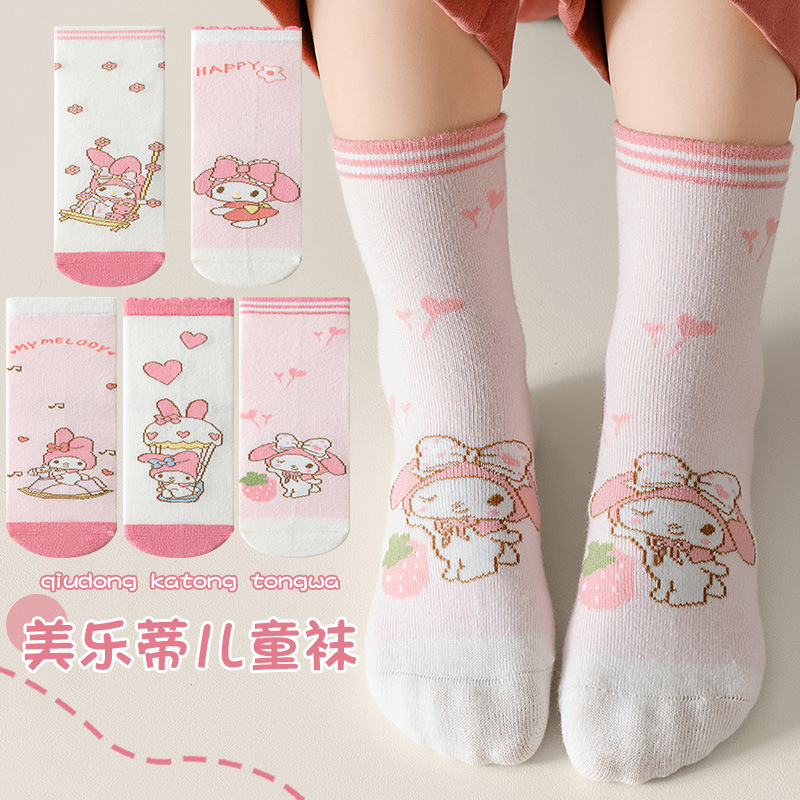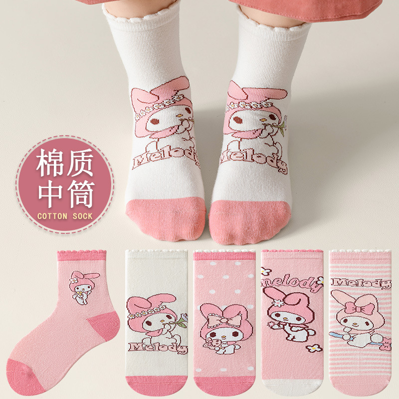 멜로디 소녀 양말 봄과 가을 튜브 양말 어린이 핑크 만화 양말 소녀 가을과 겨울 얇은 면 양말 도매