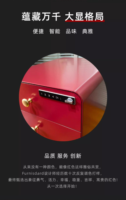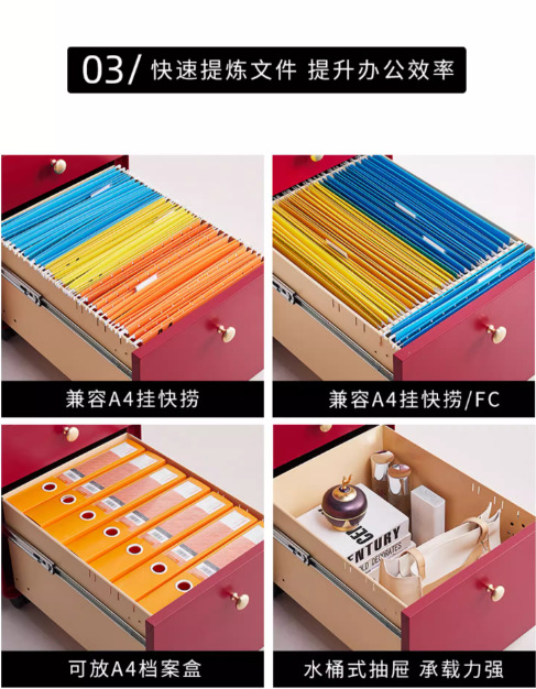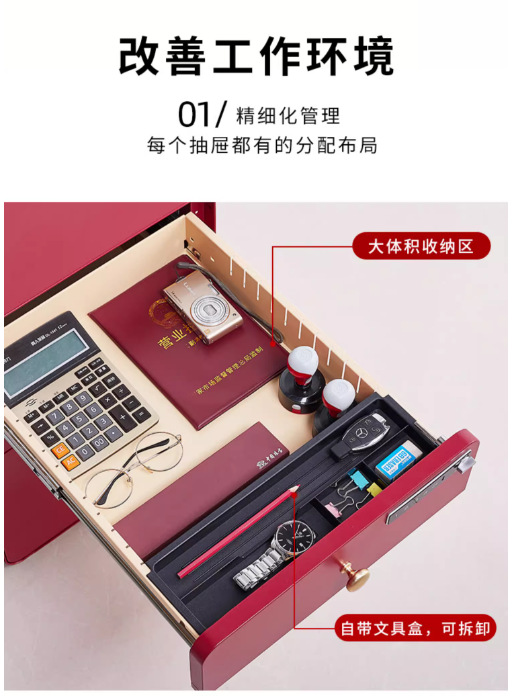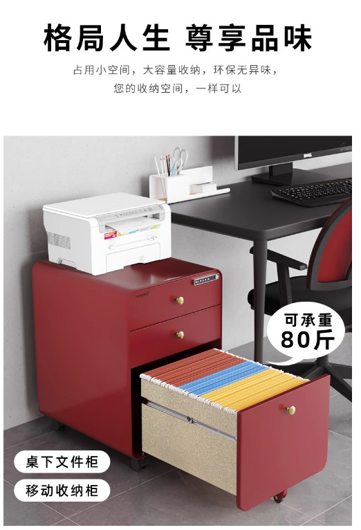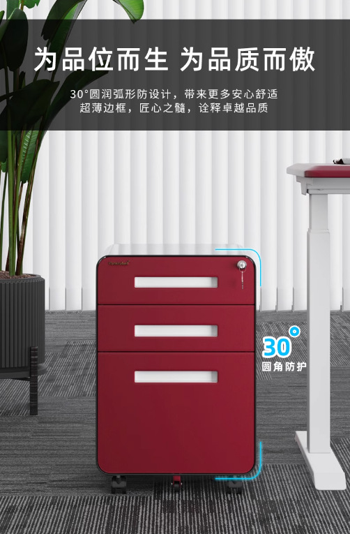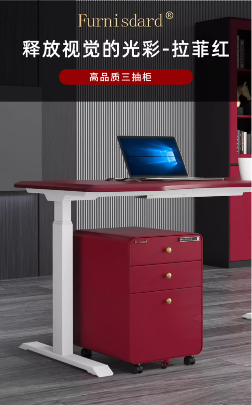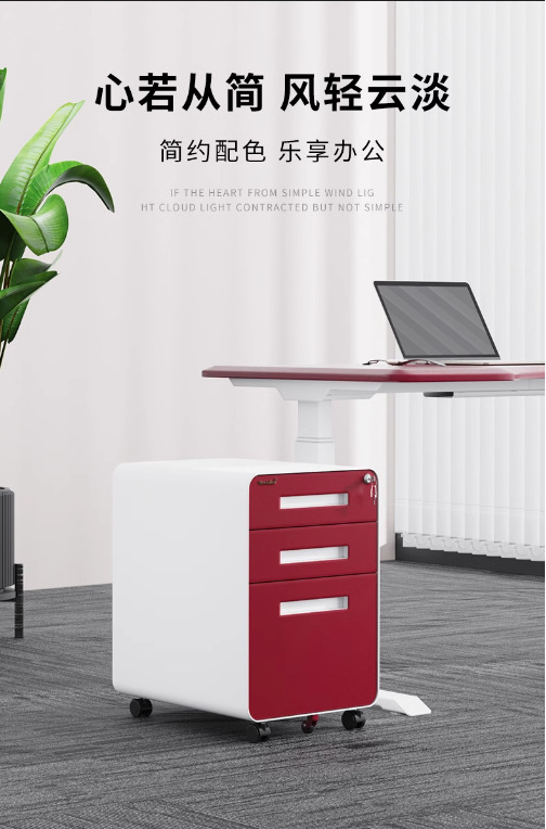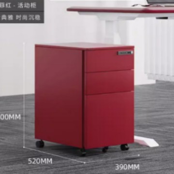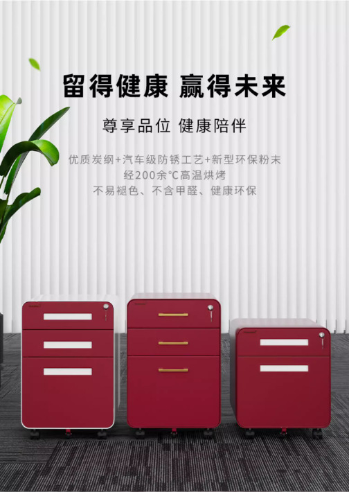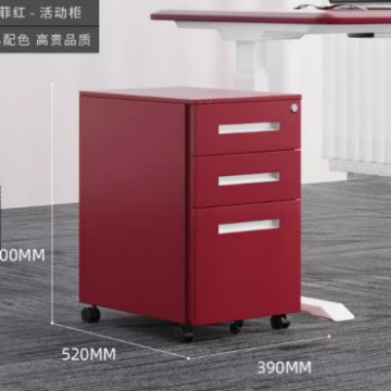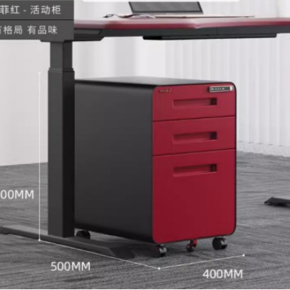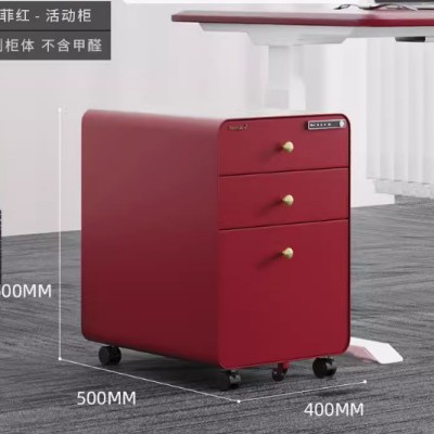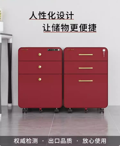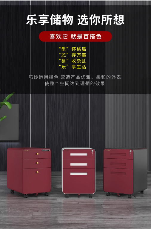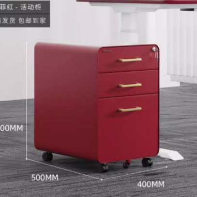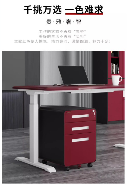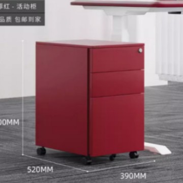 文件活动柜密码酒红色三抽屉钢制推柜储物柜带密码锁矮柜文件柜