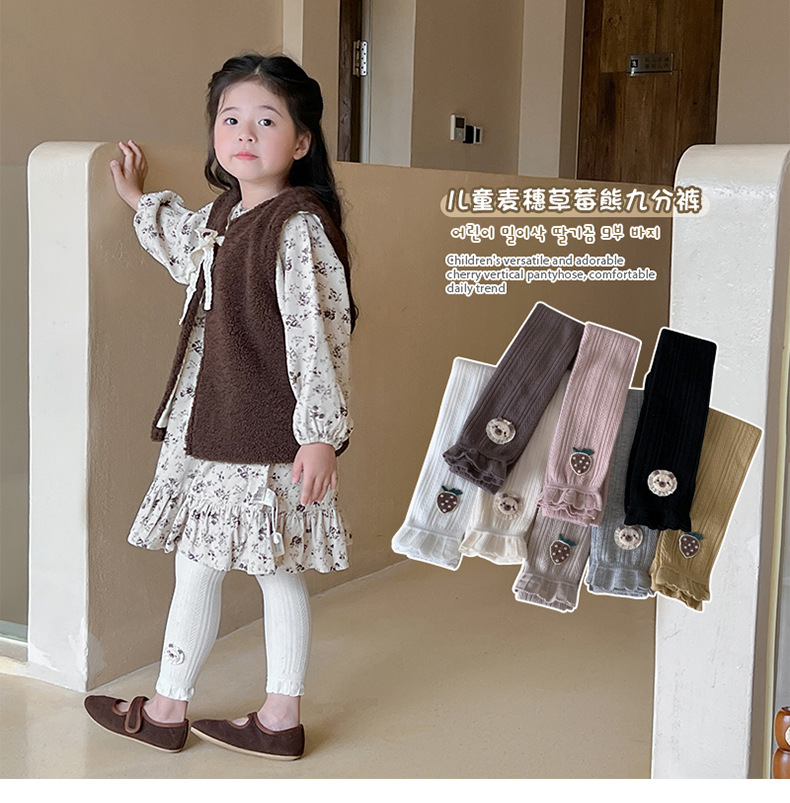 가을 2024 어린이 팬티 스타킹 니트 소녀 레깅스 귀여운 딸기 소녀 아기 양말 자른 바지스토어 가기