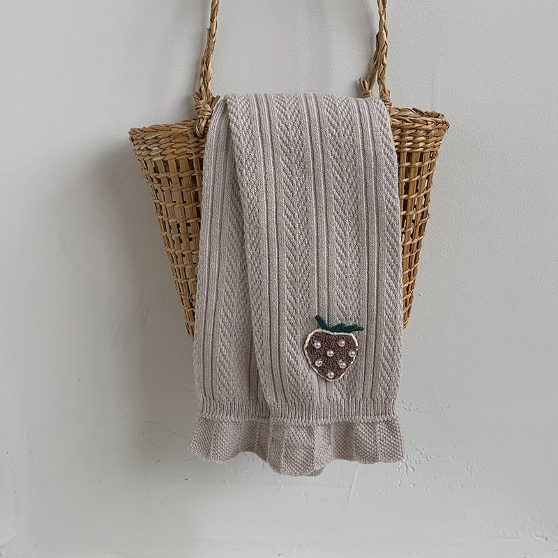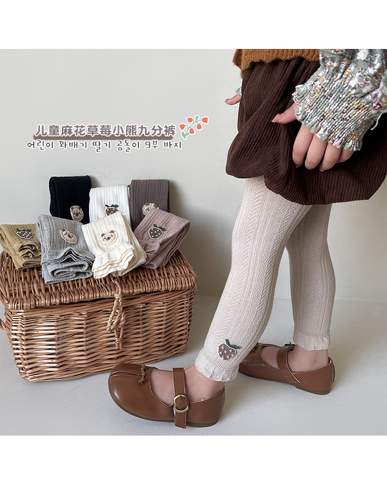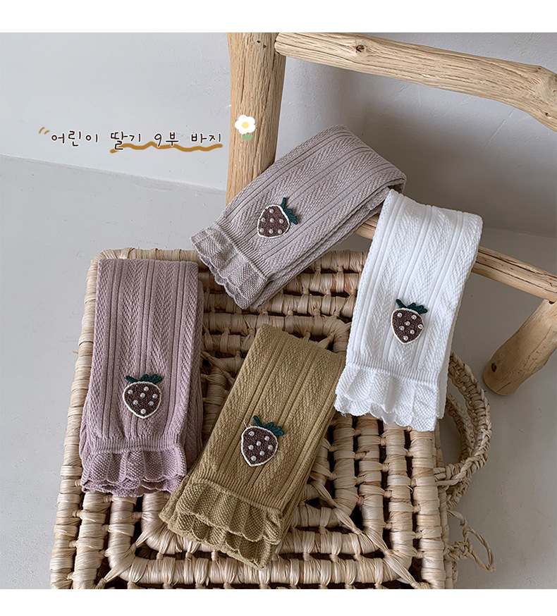 가을 2024 어린이 팬티 스타킹 니트 소녀 레깅스 귀여운 딸기 소녀 아기 양말 자른 바지