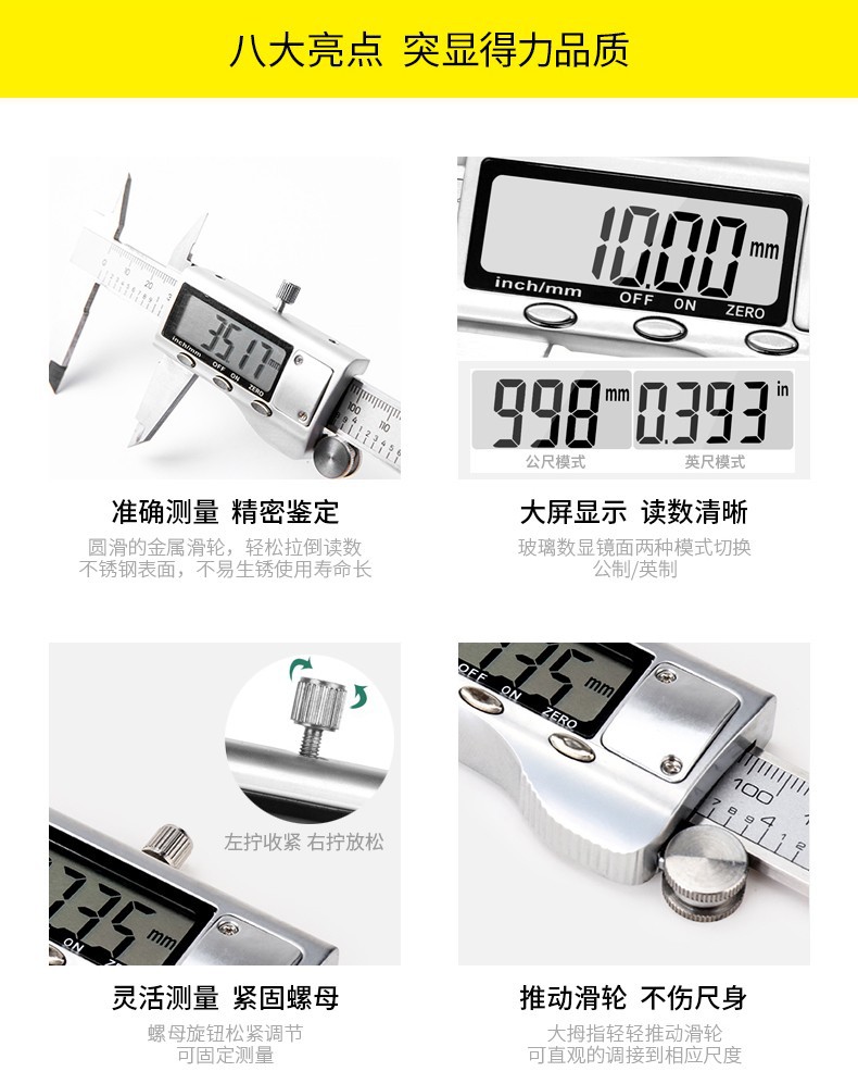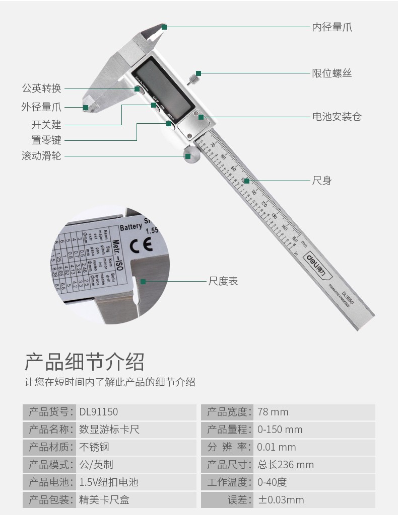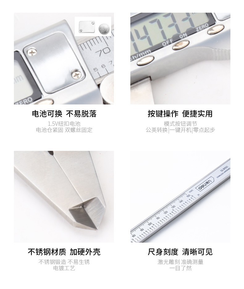 델리 전자 디지털 디스플레이 캘리퍼 버 니어 캘리퍼 스테인레스 스틸 오일 마크 가정용 소형 고정밀 기계 버니어스토어 가기