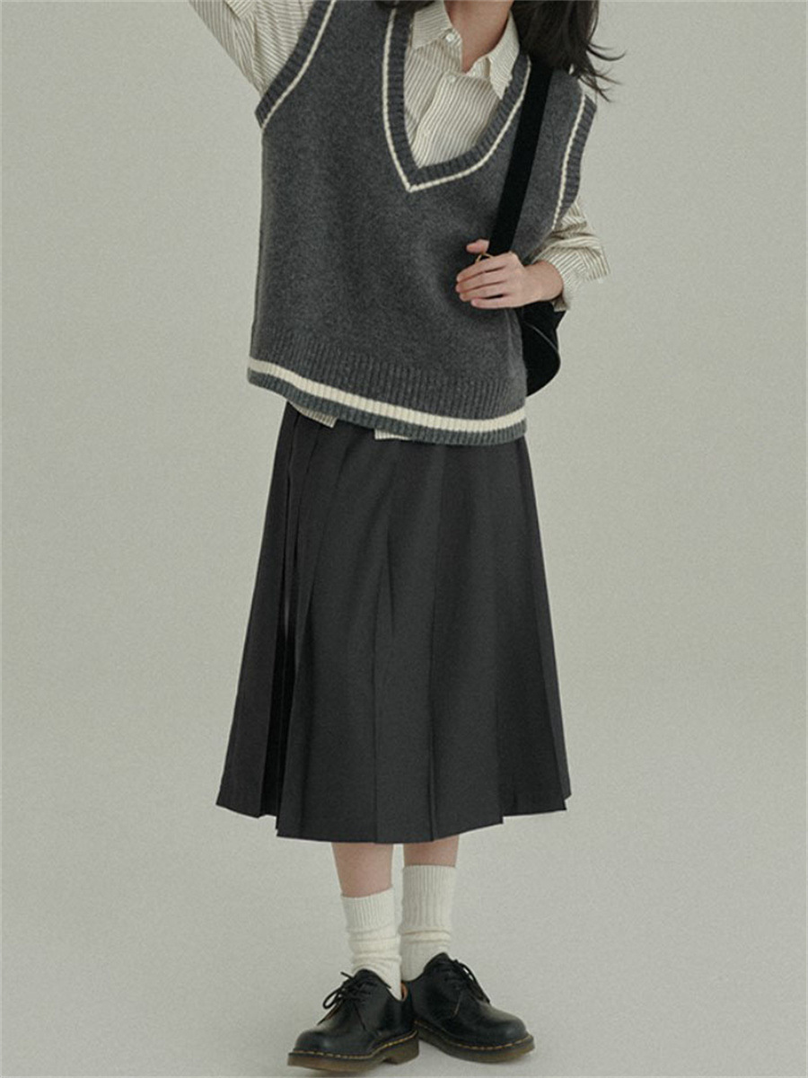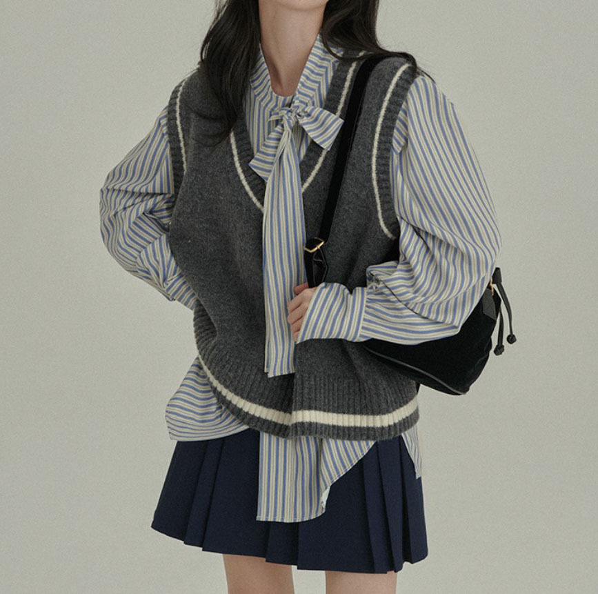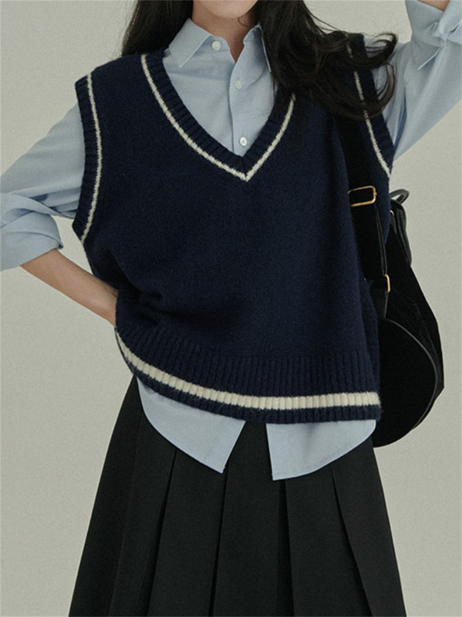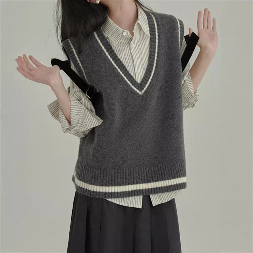 셔츠 정리 대학 소녀 가을 새로운 복고풍 기질 편안한 올 매치 V 넥 덤프 조끼스토어 가기