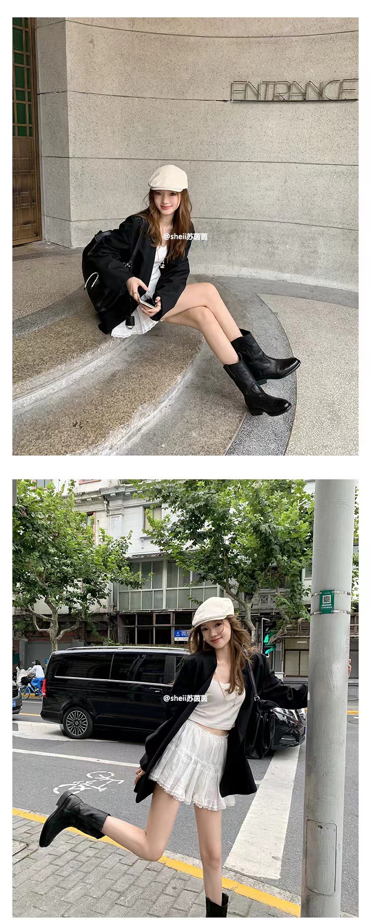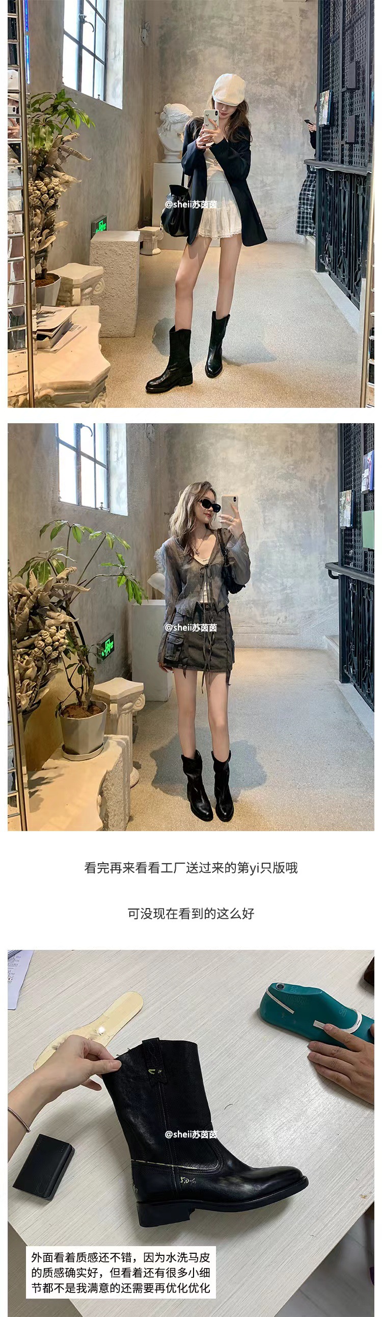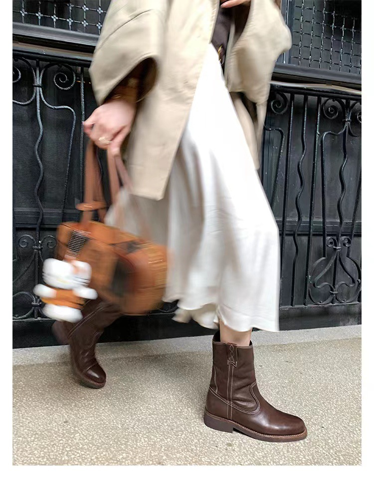 【sheii수인인】버크로드~마피 V컷 부츠 두꺼운 굽 숏부츠 여성용 데저트 부츠 웨스턴 스타일스토어 가기