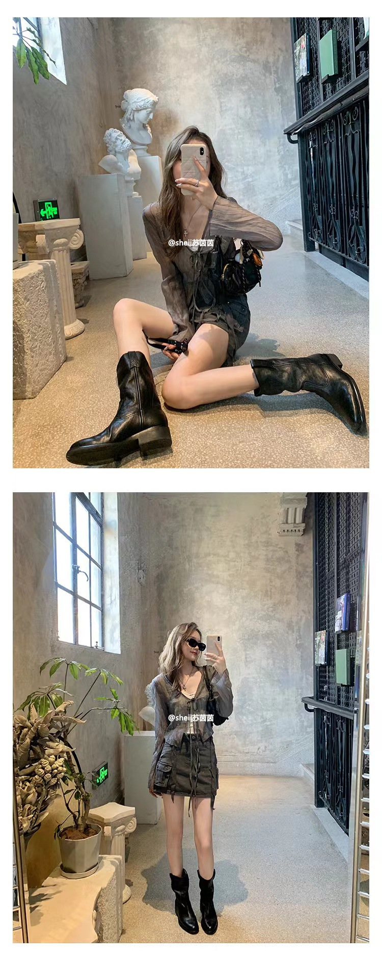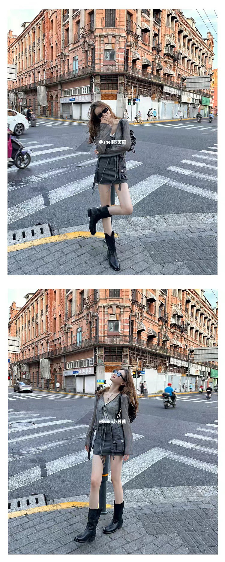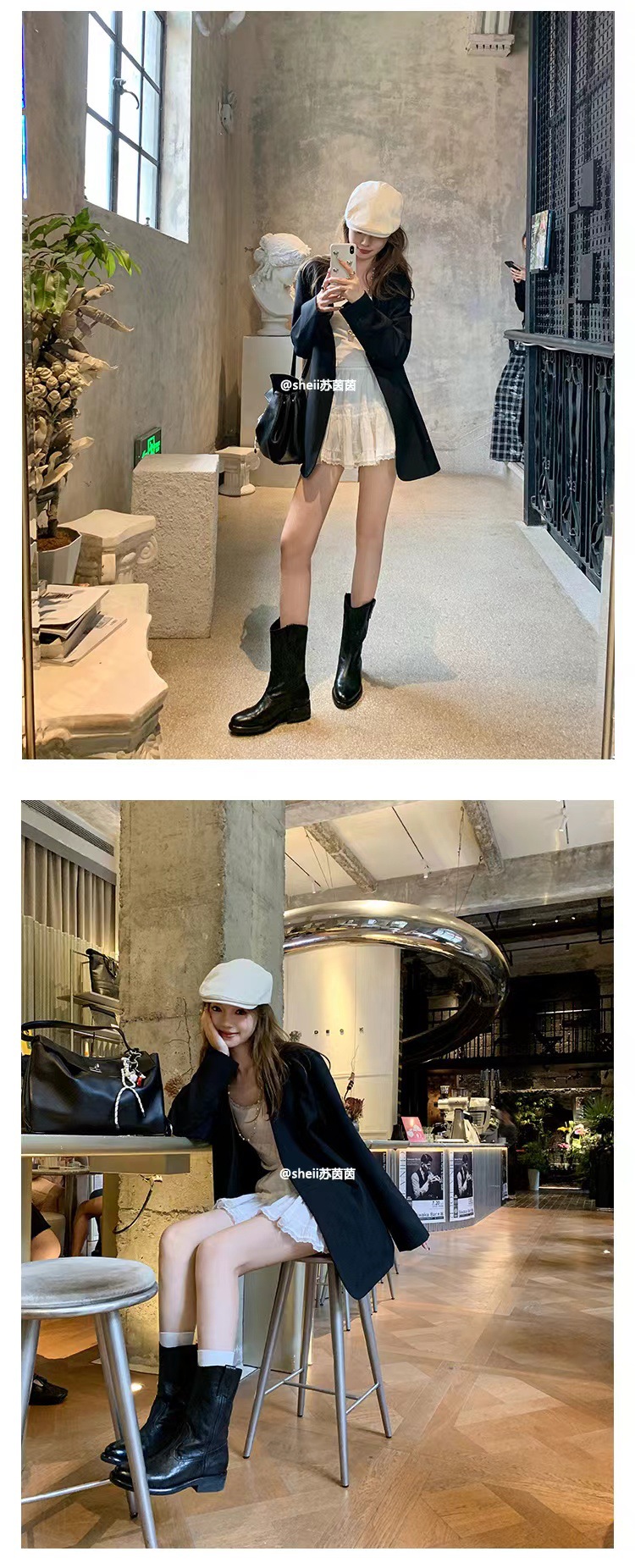 【sheii수인인】버크로드~마피 V컷 부츠 두꺼운 굽 숏부츠 여성용 데저트 부츠 웨스턴 스타일스토어 가기