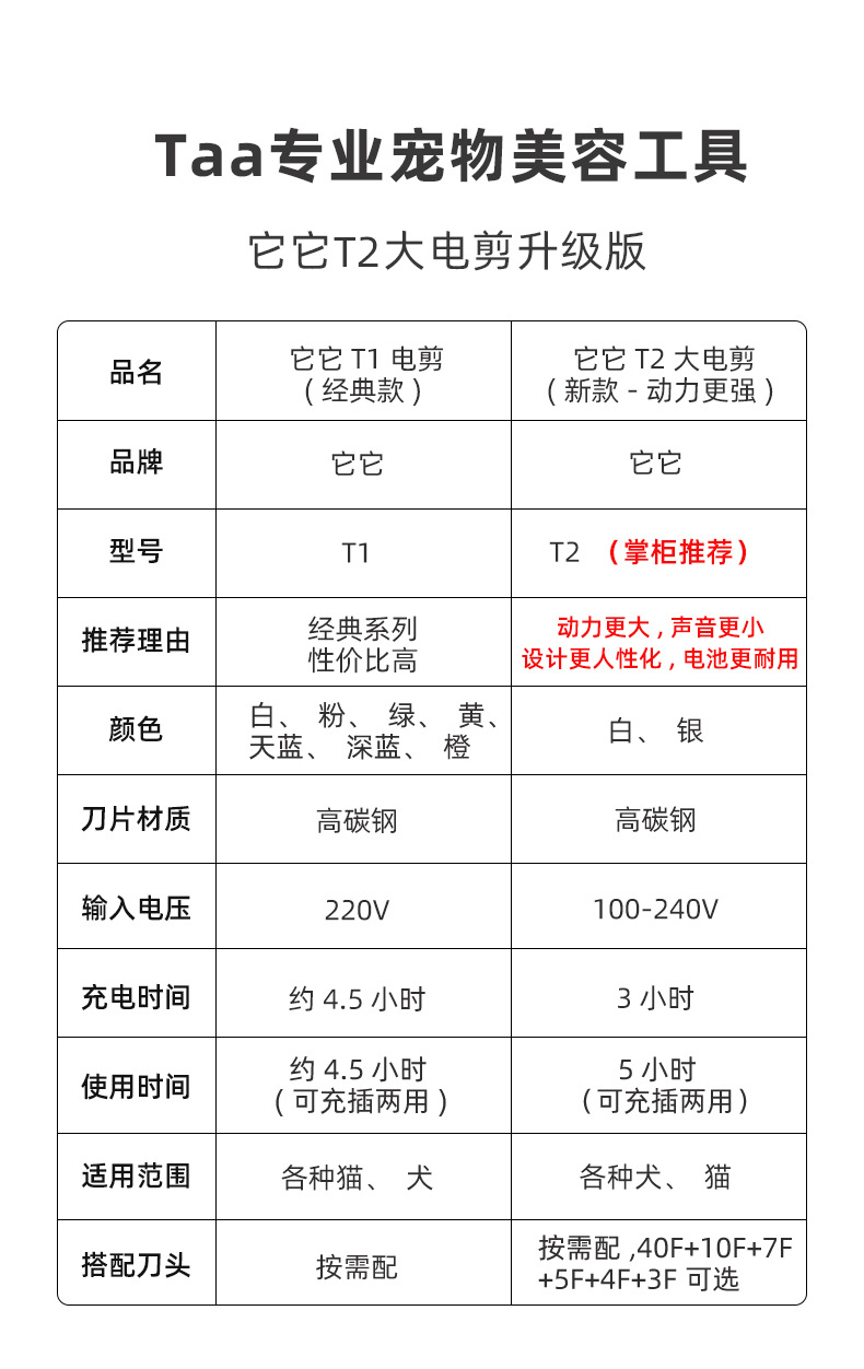 TAA it it T2 애완 동물 전문 전기 클리퍼 개 고출력 면도기 대형 전기 가위 업그레이드 테디 골든 리트리버스토어 가기