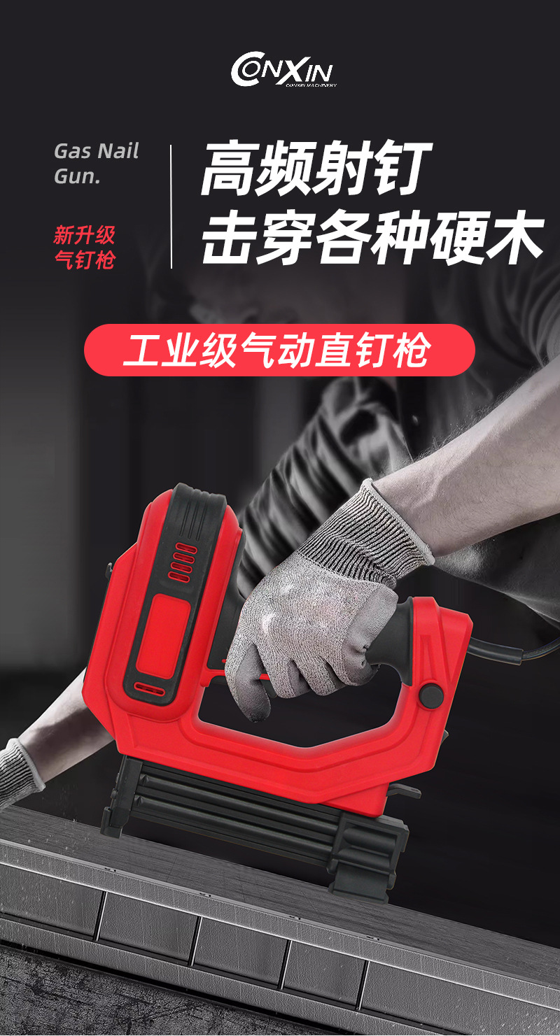 Kangxin 편리한 LED 조명 공압 네일 건 고주파 네일 목공 네일 가정용 전기 네일 건