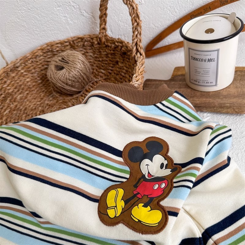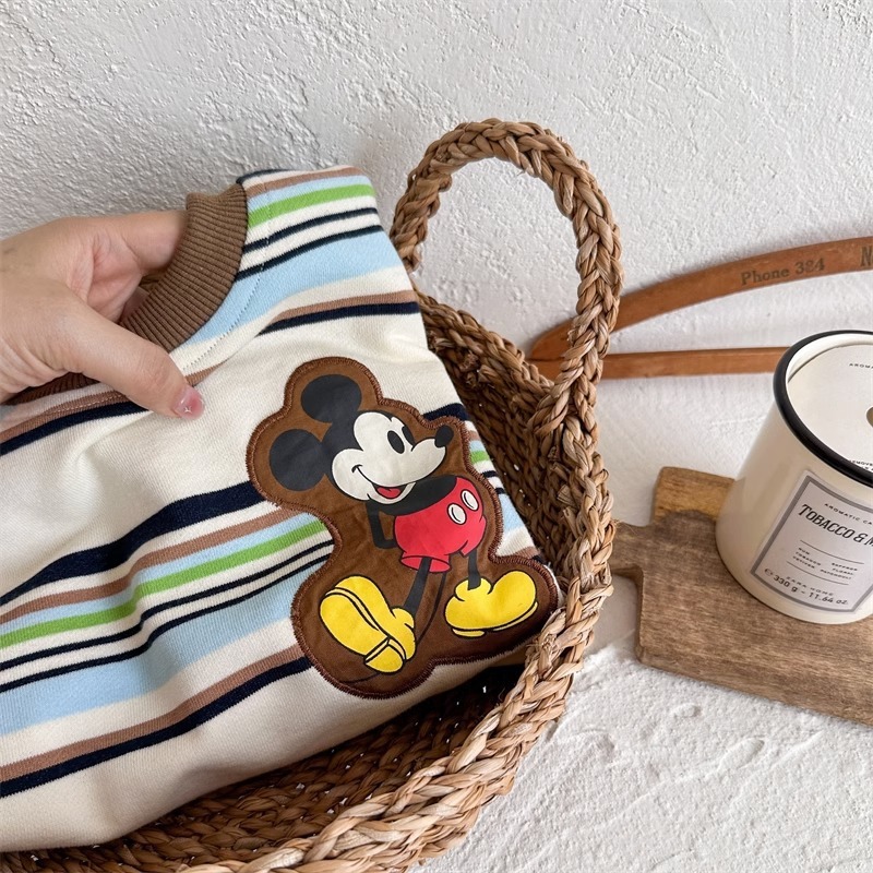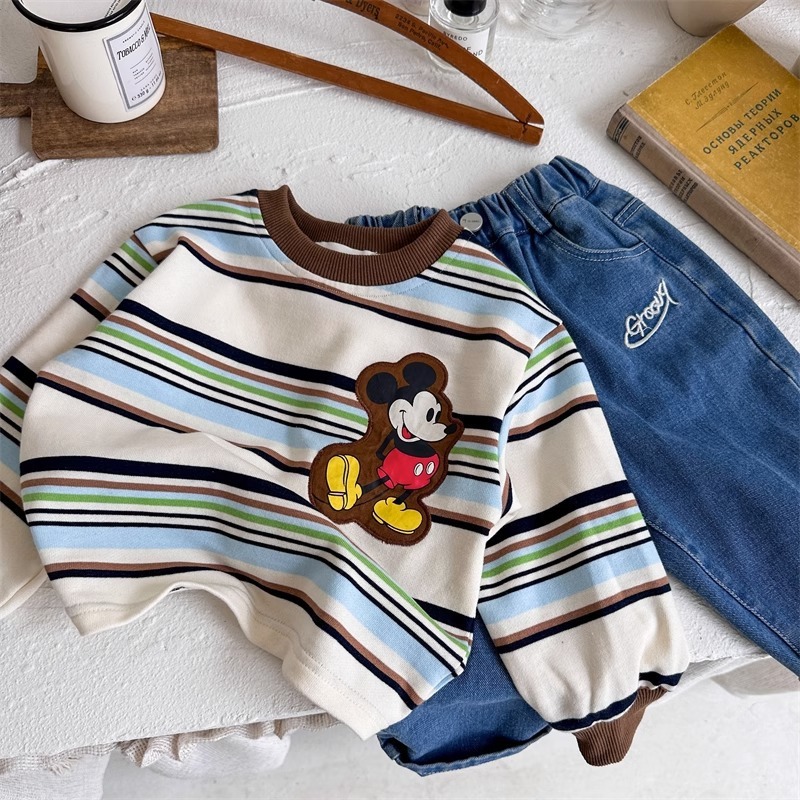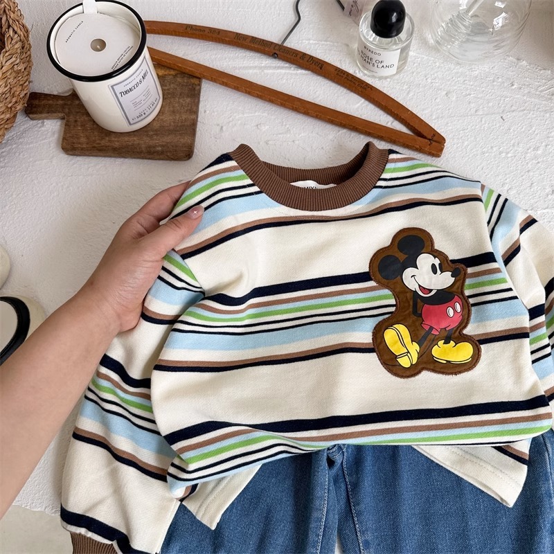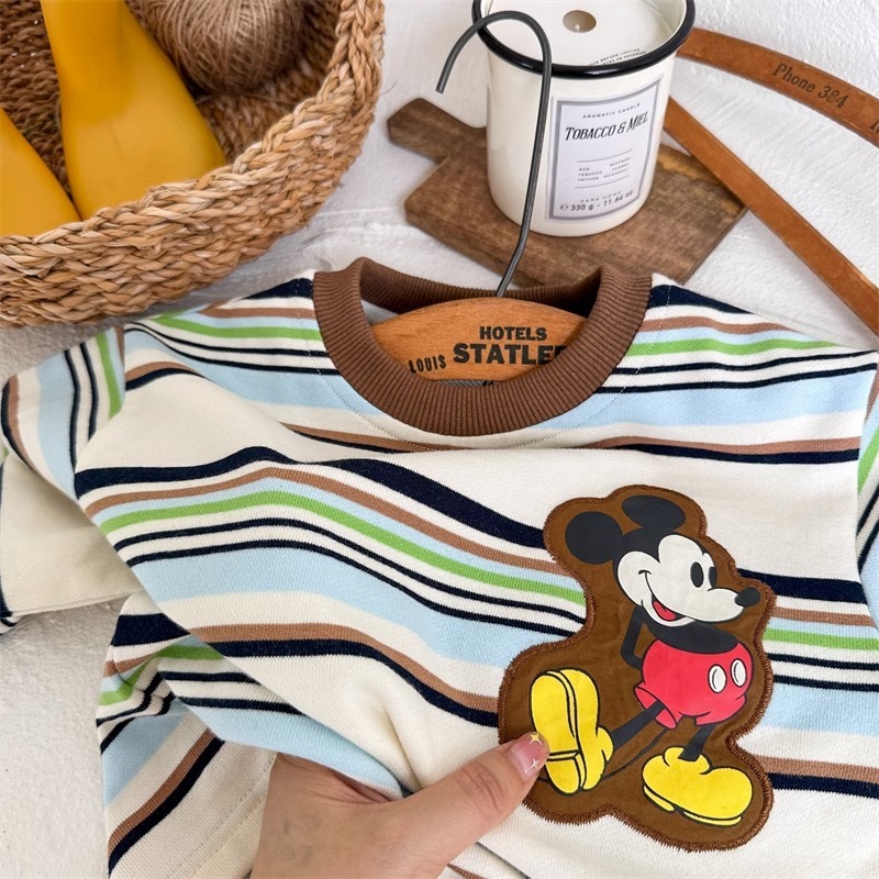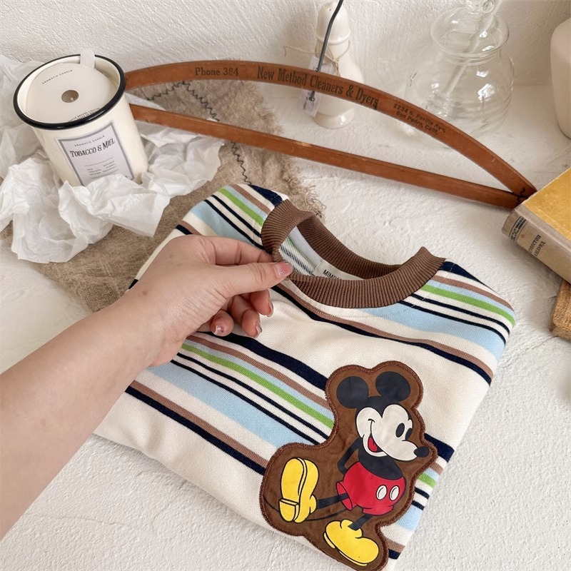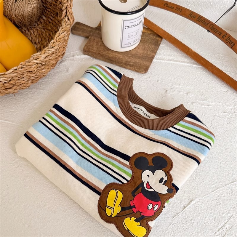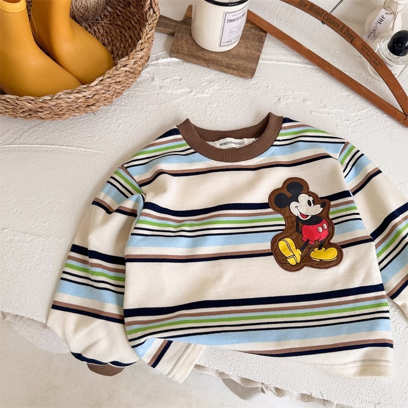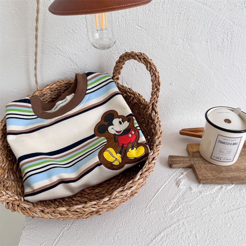 남성과 여성을위한 봄과 가을 새로운 어린이 티셔츠 만화 서양식 긴 소매 줄무늬 그림 스웨터베이스 셔츠스토어 가기