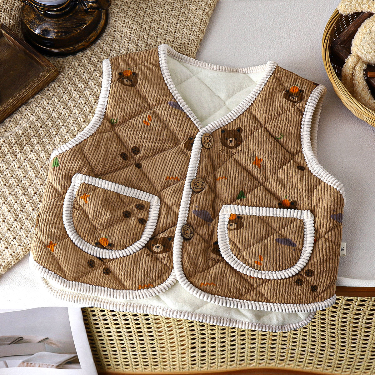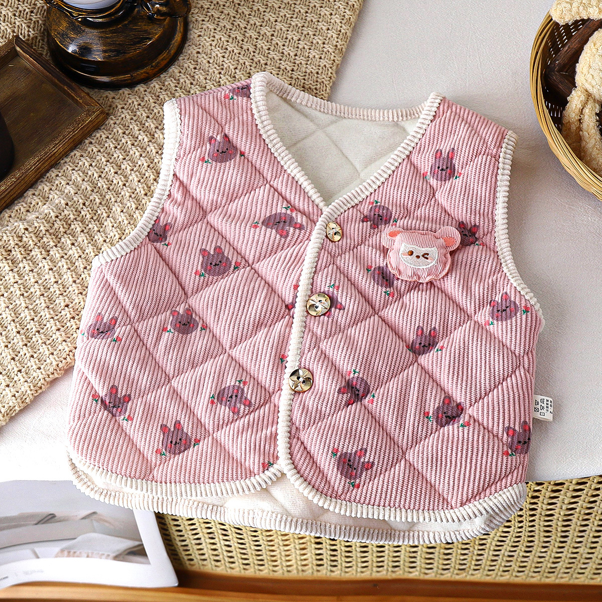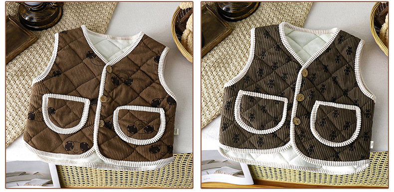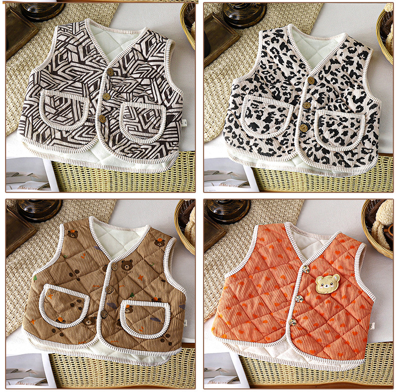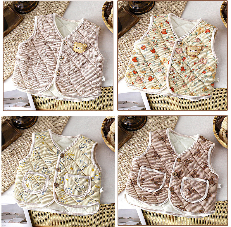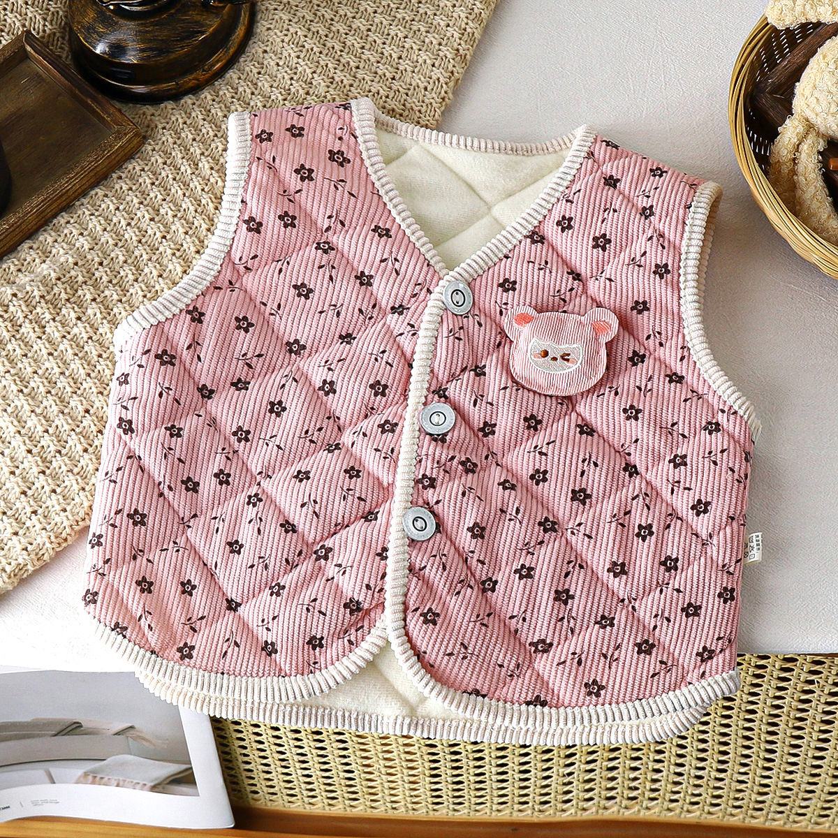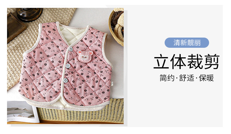 아기의 겨울 착용 작은 조끼 외부 외국 스타일 가을 및 겨울 바람 방지 외국 스타일 어린이 코트 아기 소녀의 면 두꺼운 조끼