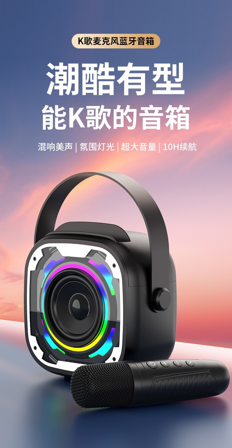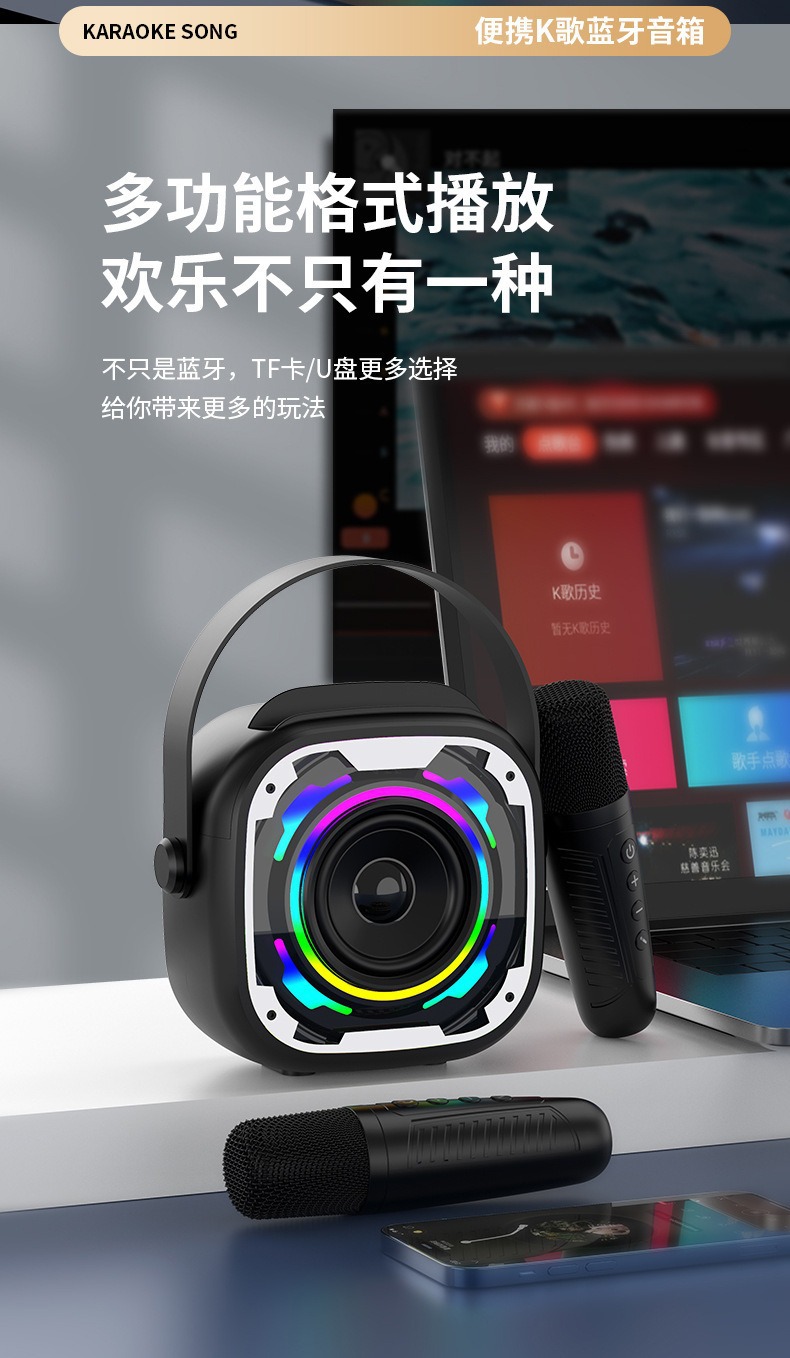 국경 간 새로운 V11 올인원 노래방 야외 휴대용 데스크탑 소형 서브 우퍼 오디오 무선 블루투스 마이크 스피커
