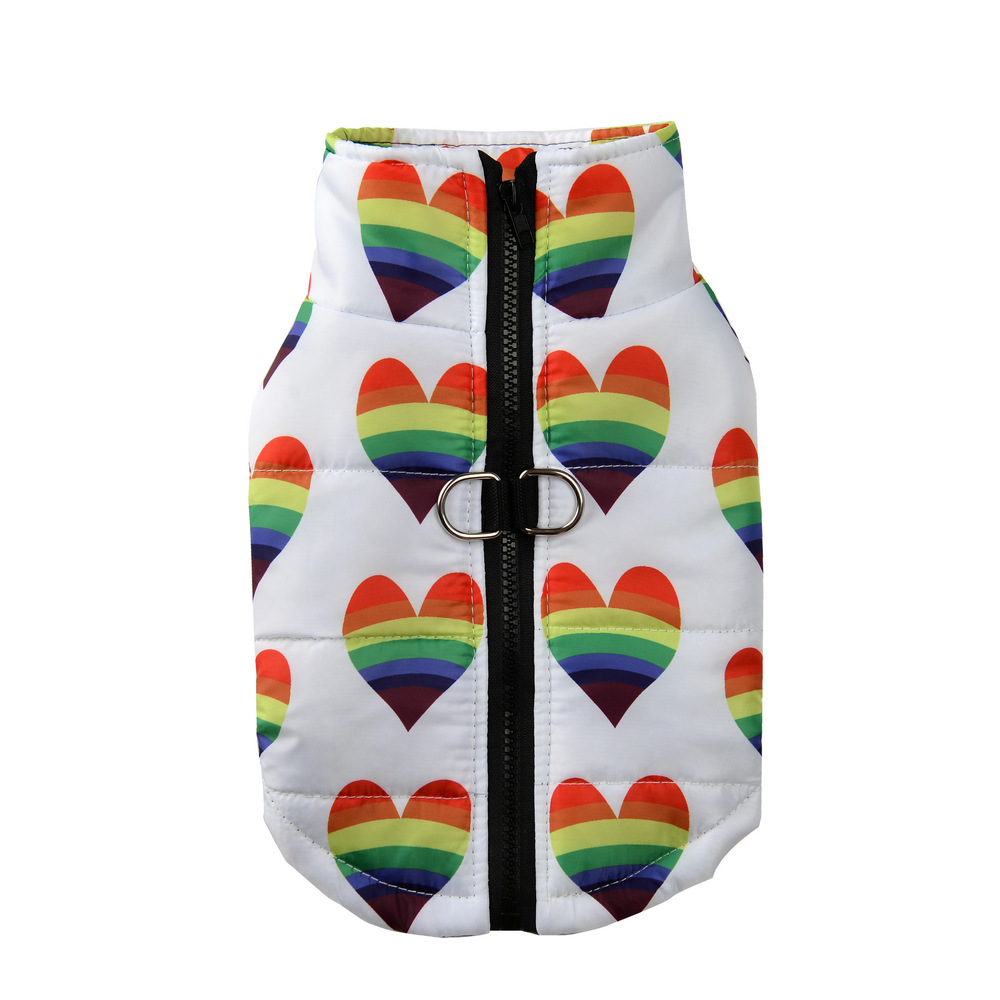 국경 새 개 겨울면 패딩 재킷 다채로운 무지개 사랑 인쇄 러시 옷 방풍 따뜻한 애완 동물 스키 세트스토어 가기