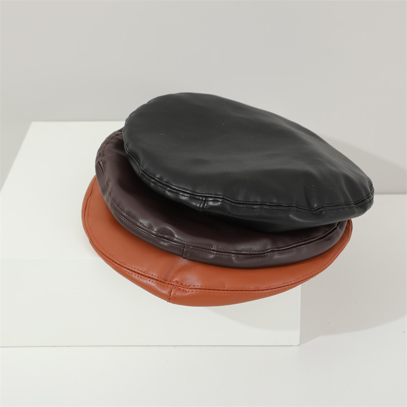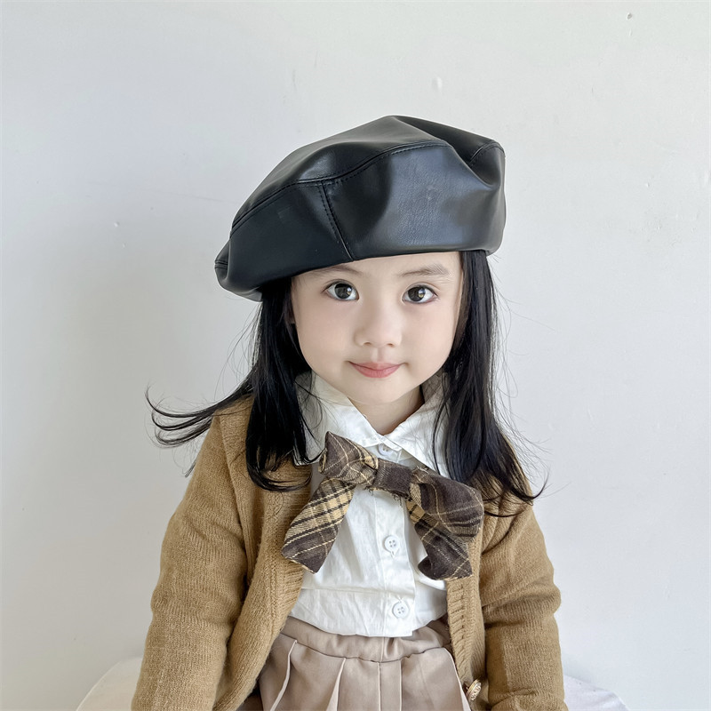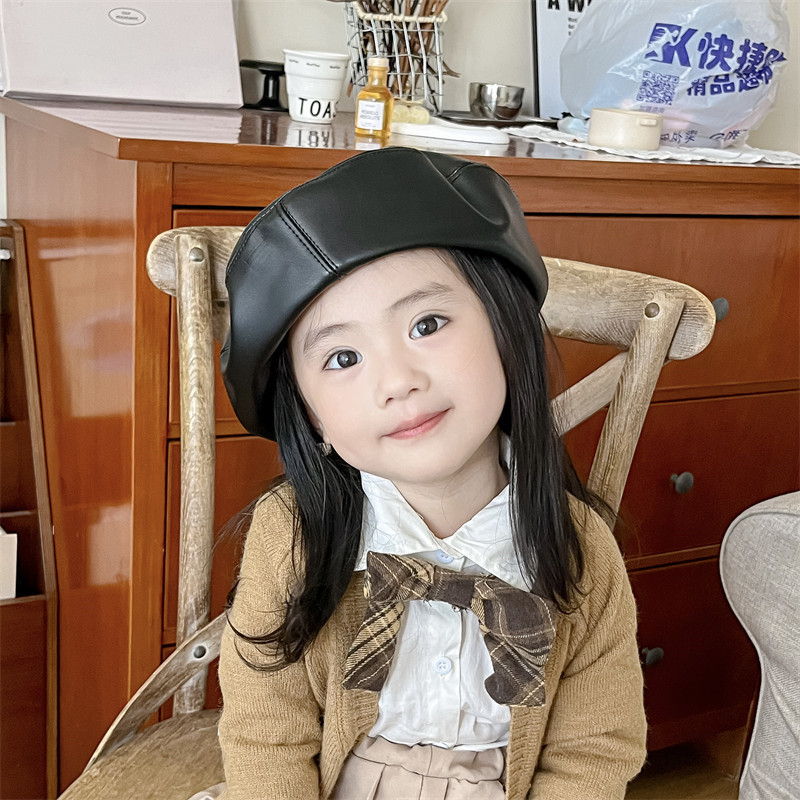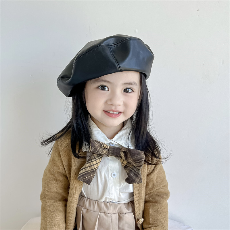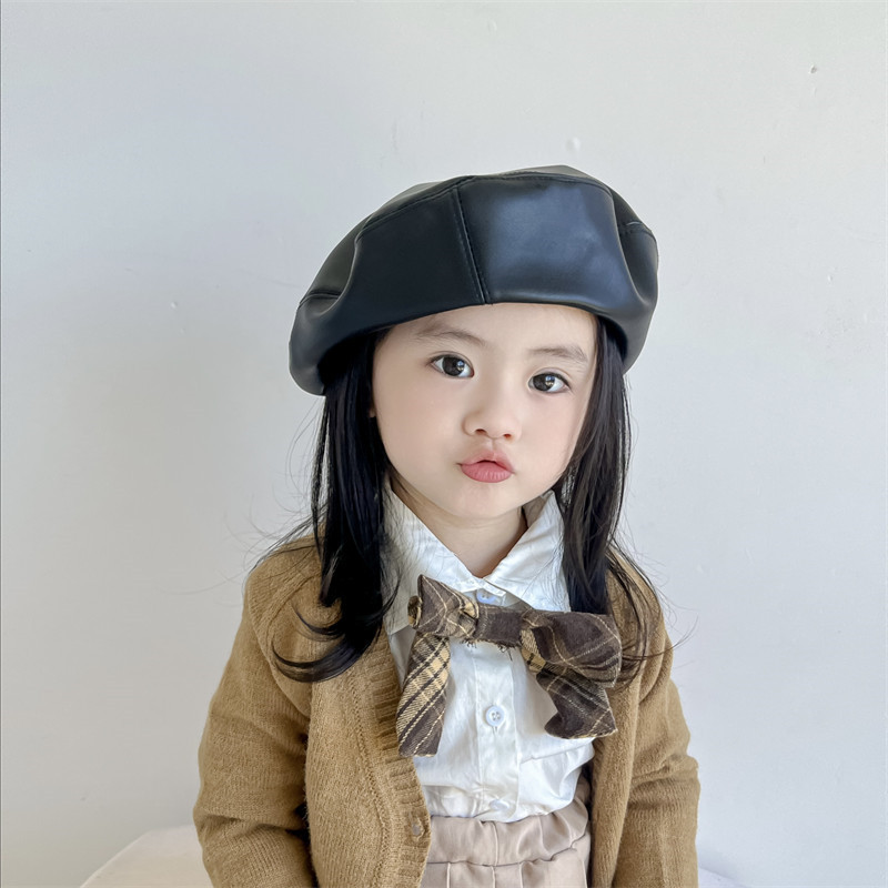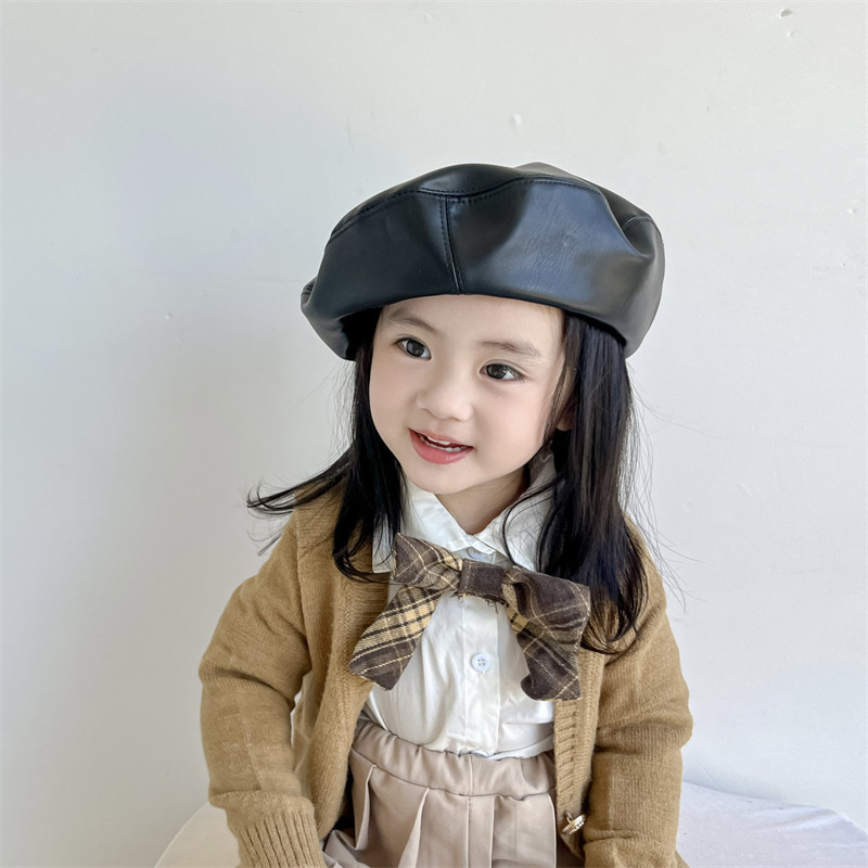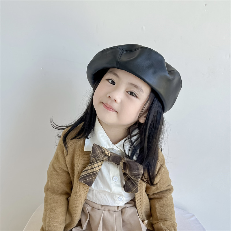 한국식 PU 가죽 어린이 베레 여성 패셔너블 올매치 격자 무늬 모자 예술적 기질 플랫 탑 버드 모자