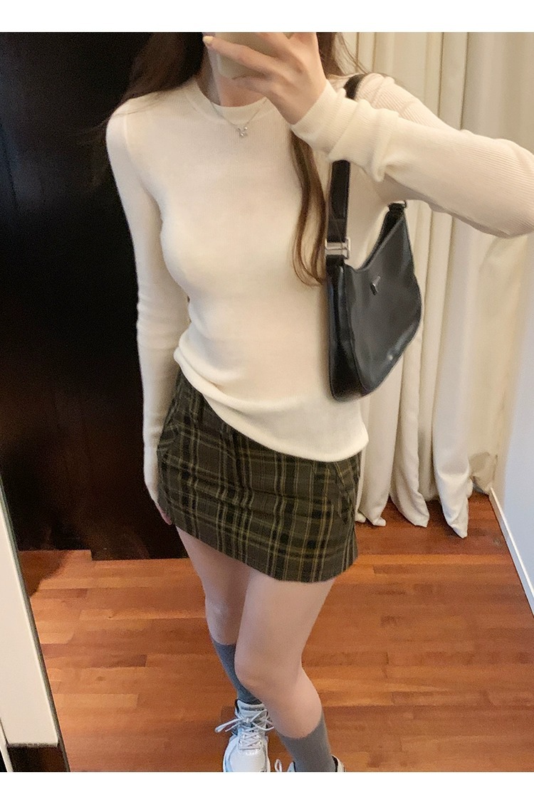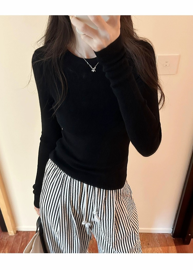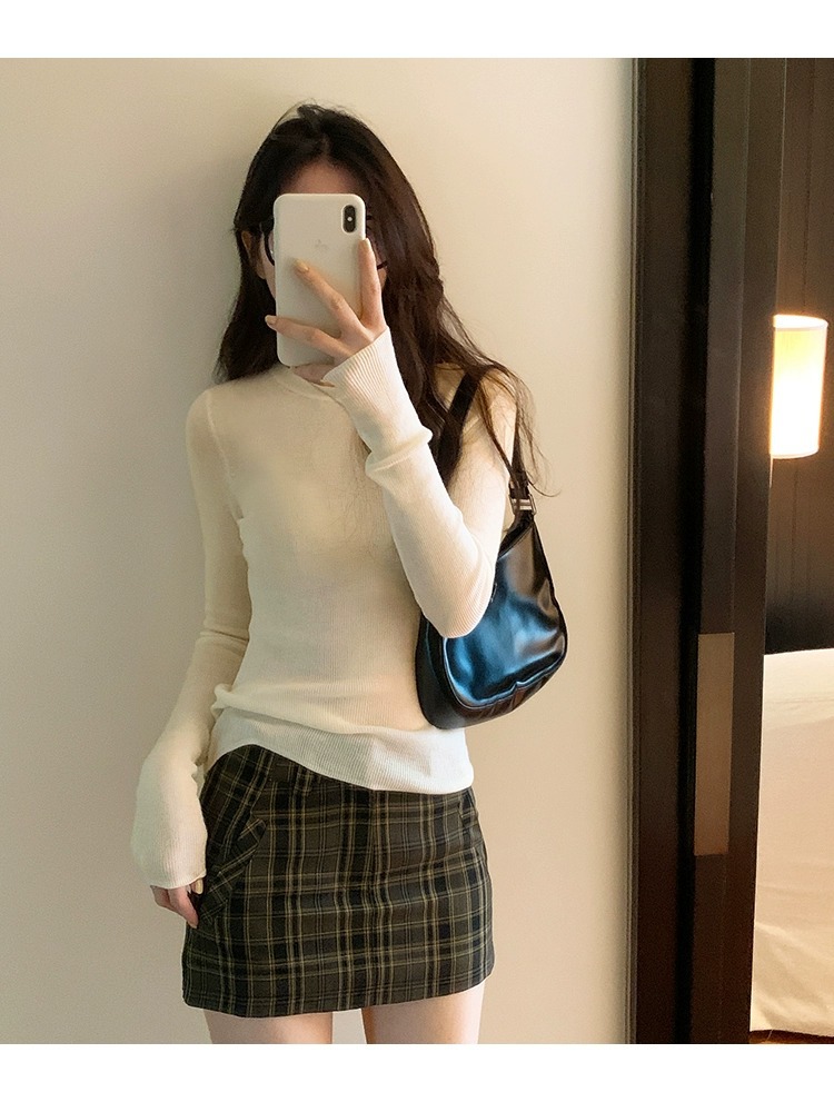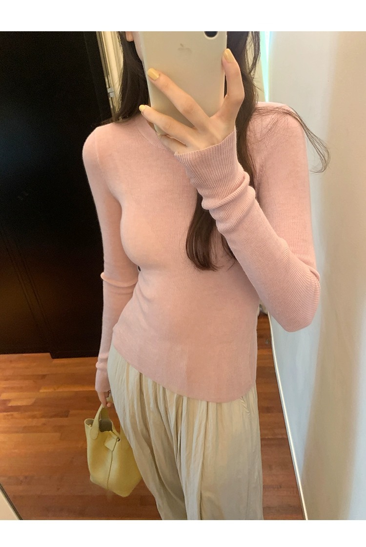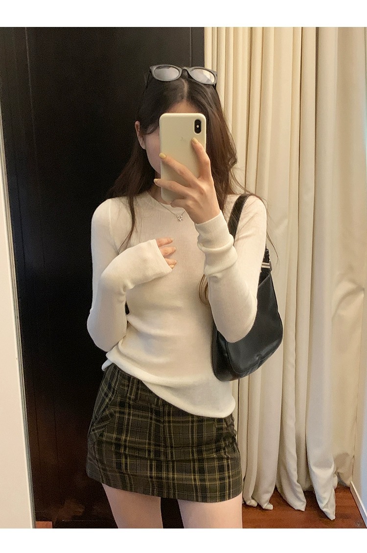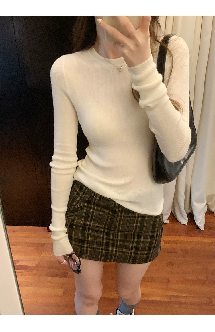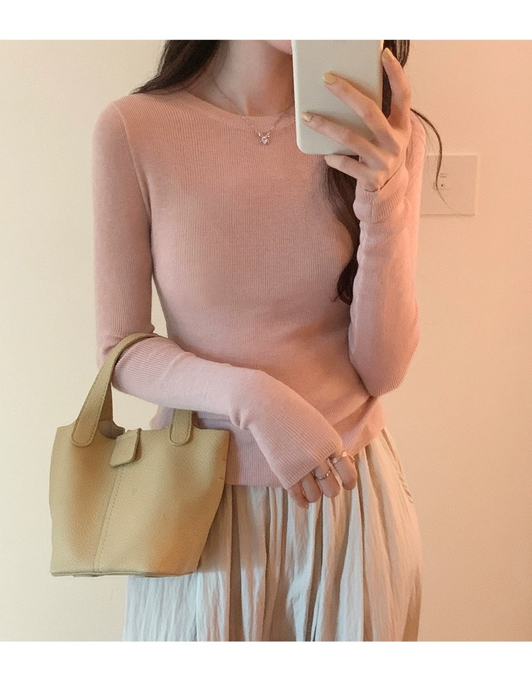 한국 스타일 민트 그린 니트 이너웨어 2025 초봄 신상 슬림핏 얇은 스타일 약간 비침있는 달콤하고 매혹적인 긴팔 여성 상의스토어 가기
