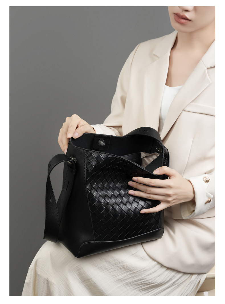 Cowhide 수제 짠 토트 백 새로운 정품 가죽 통근 대용량 유행 어깨 가방 크로스 백 여성용 가방
