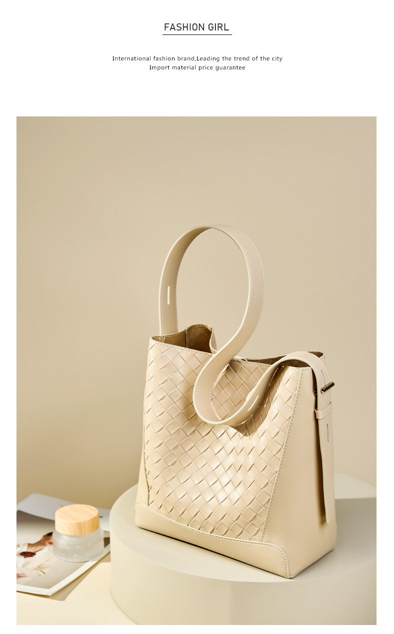 Cowhide 수제 짠 토트 백 새로운 정품 가죽 통근 대용량 유행 어깨 가방 크로스 백 여성용 가방스토어 가기