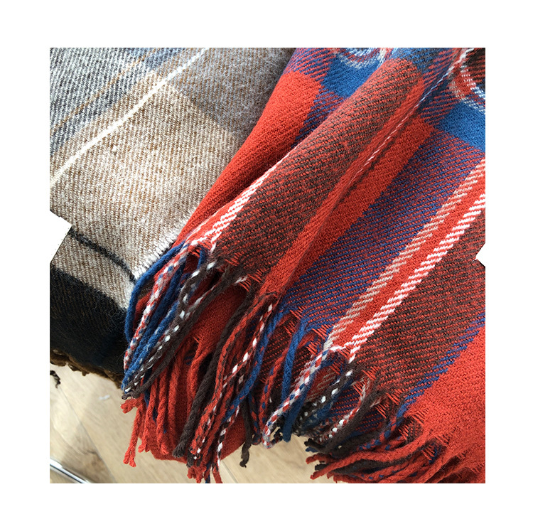 새해 레드/한국 격자 무늬 캐시미어 스카프 여성의 가을과 겨울 올 매치 커플을위한 두꺼운 따뜻한 술 스카프