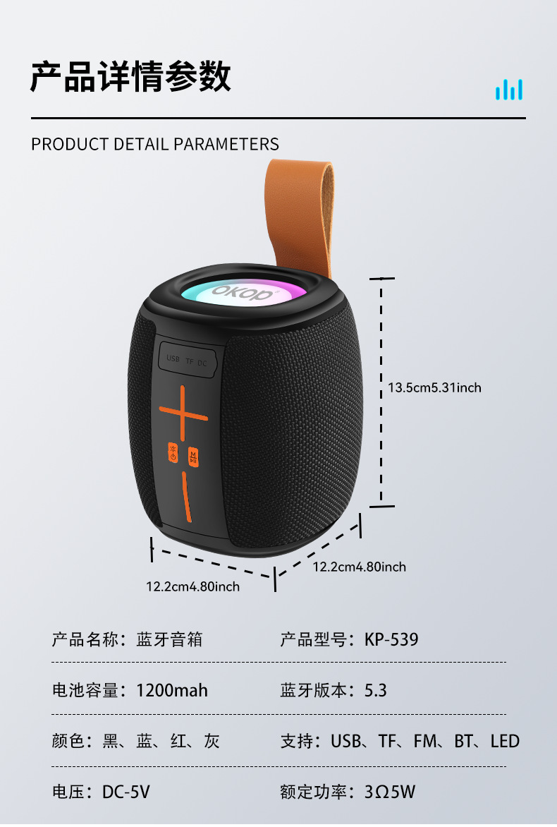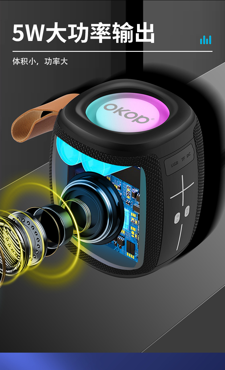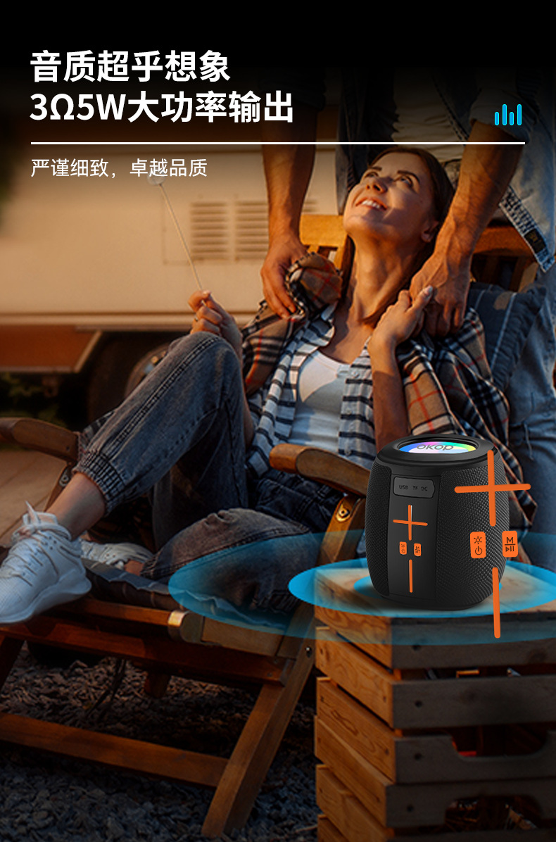 539 블루투스 스피커 야외용 듀얼 마그네틱 중저음 RGB 분위기 조명 카드 삽입형 휴대용 방수 서브우퍼