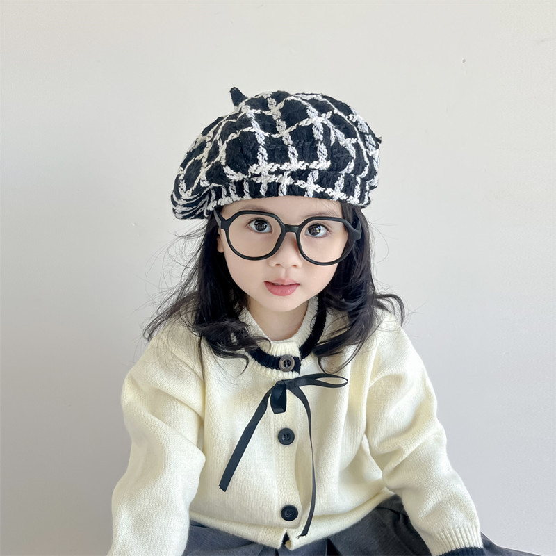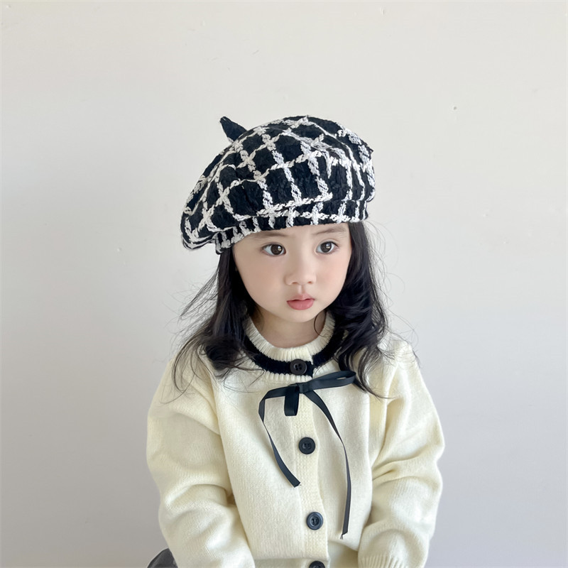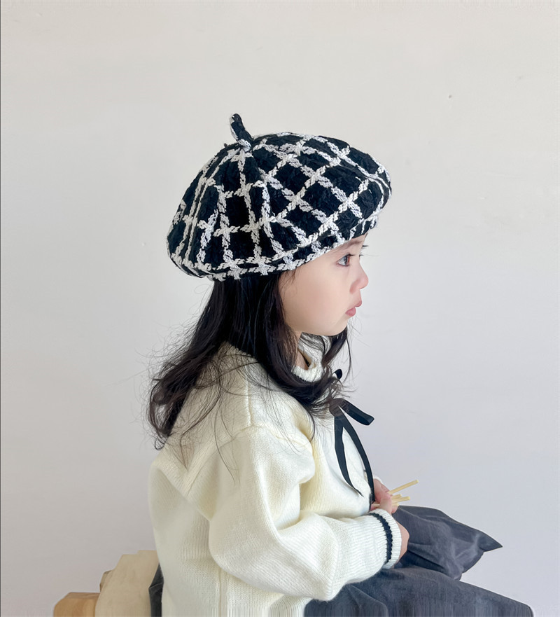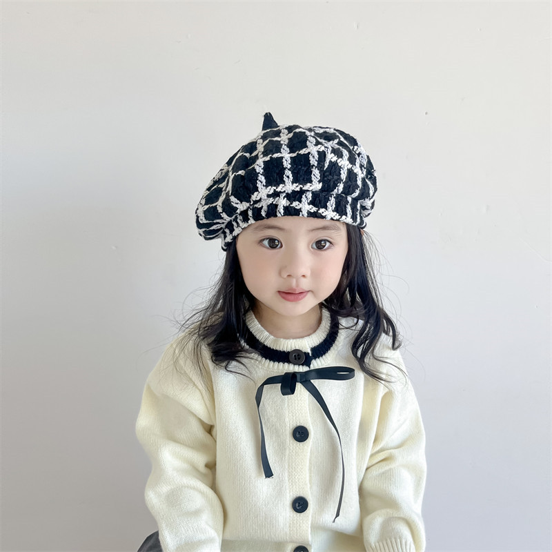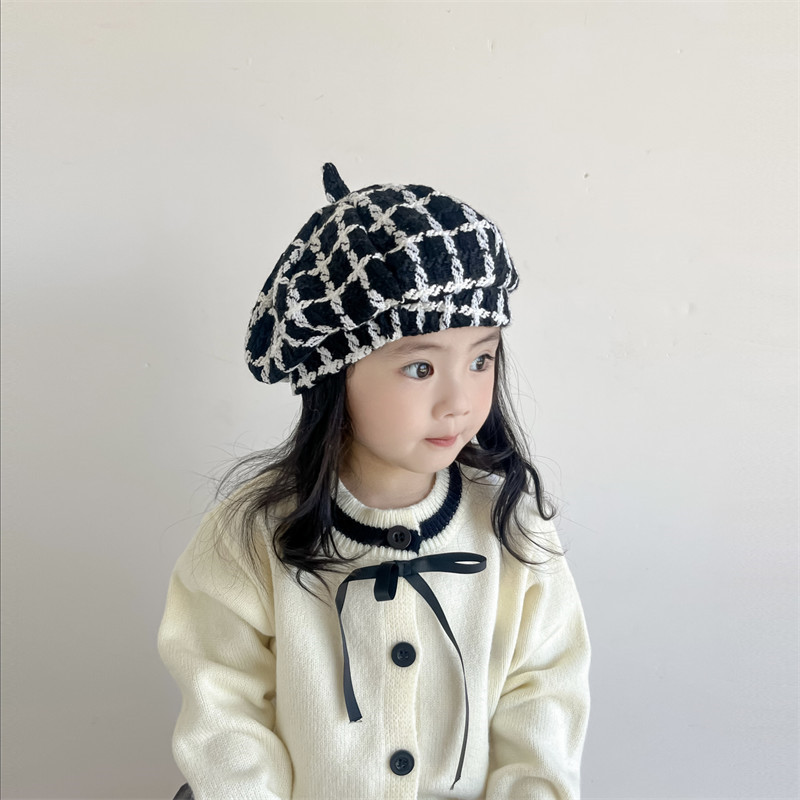 한국인즈 어린이 베레 가을 · 겨울 새 소녀 모자 스타일리시한 격자 무늬 화가의 모자 아기 소녀의 벨 모자
