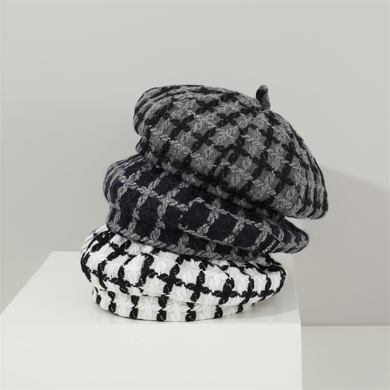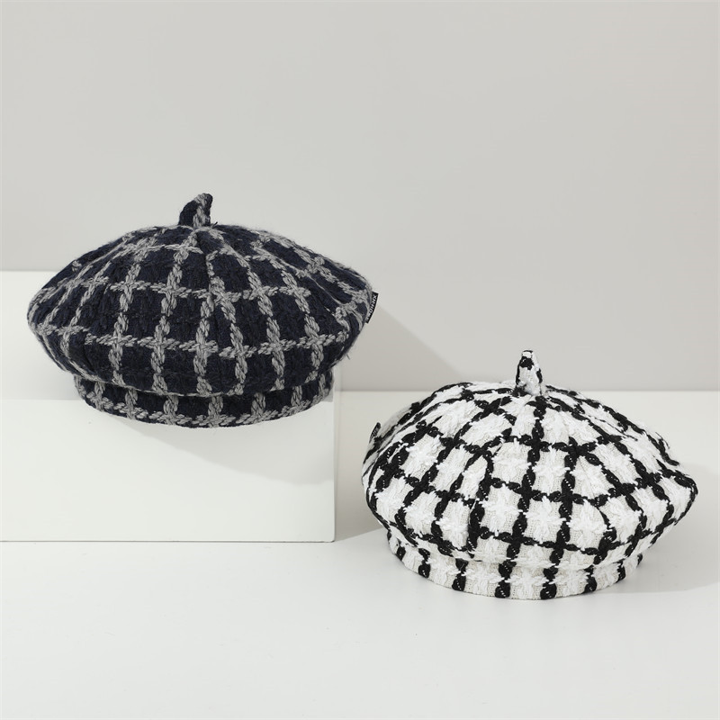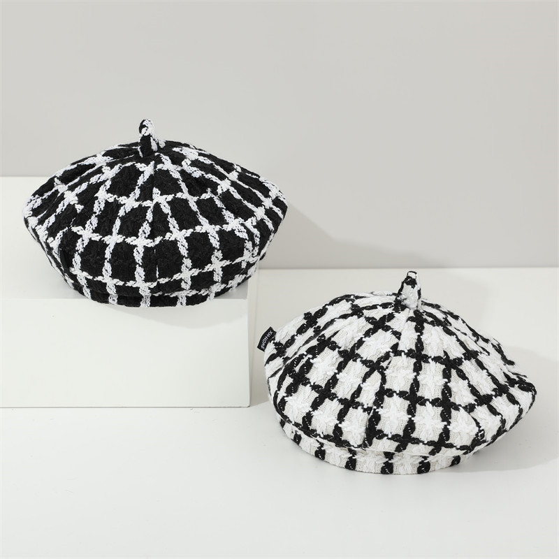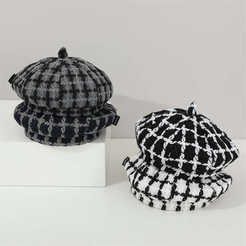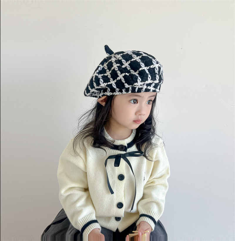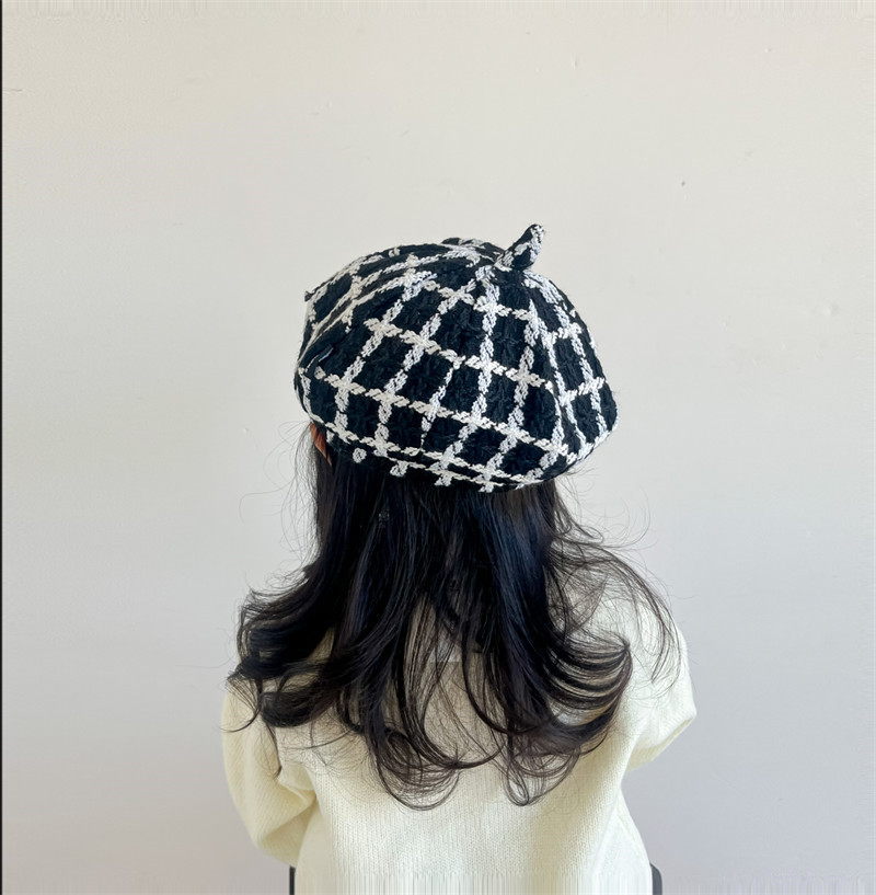 한국인즈 어린이 베레 가을 · 겨울 새 소녀 모자 스타일리시한 격자 무늬 화가의 모자 아기 소녀의 벨 모자