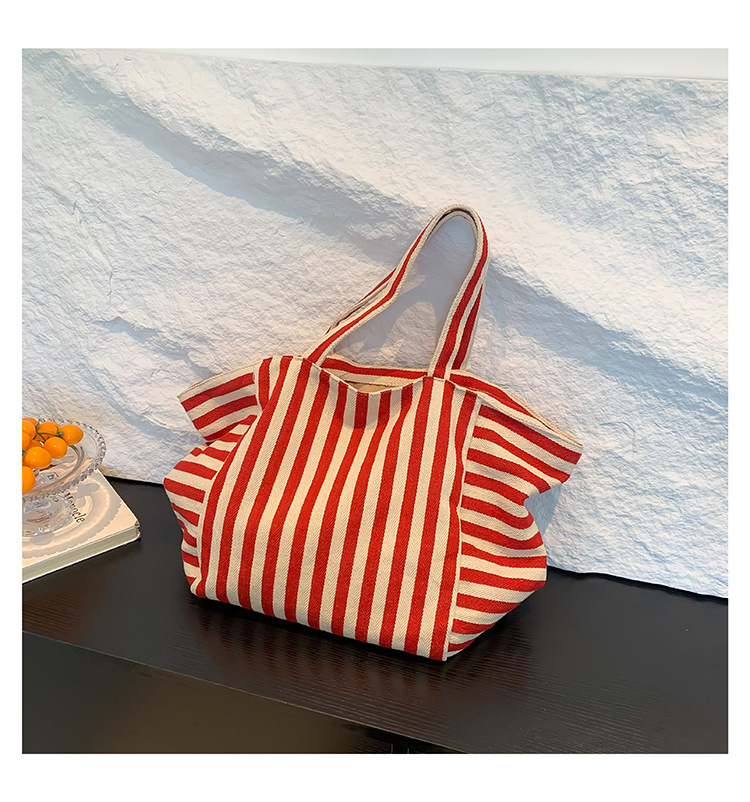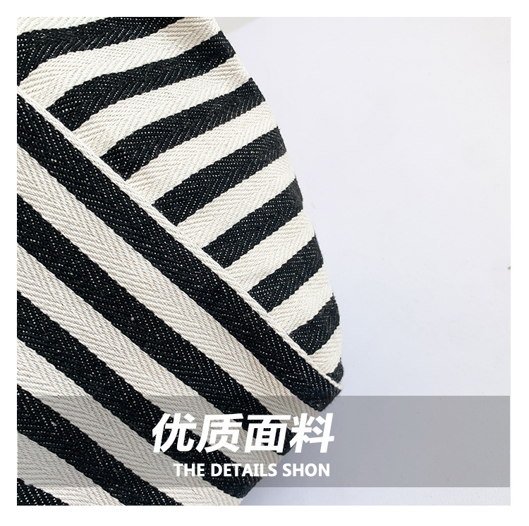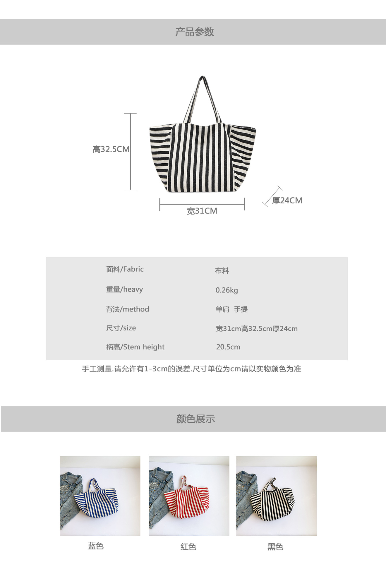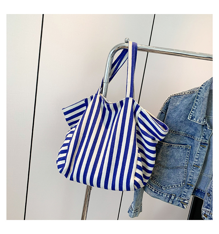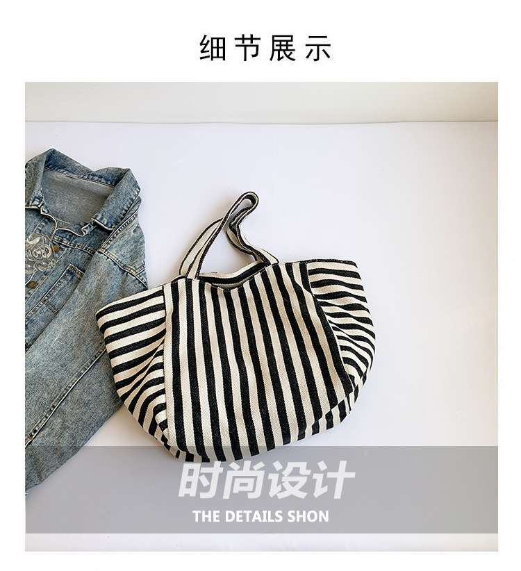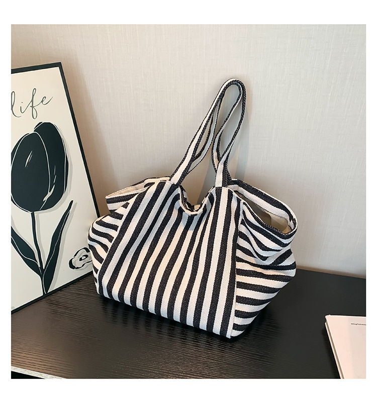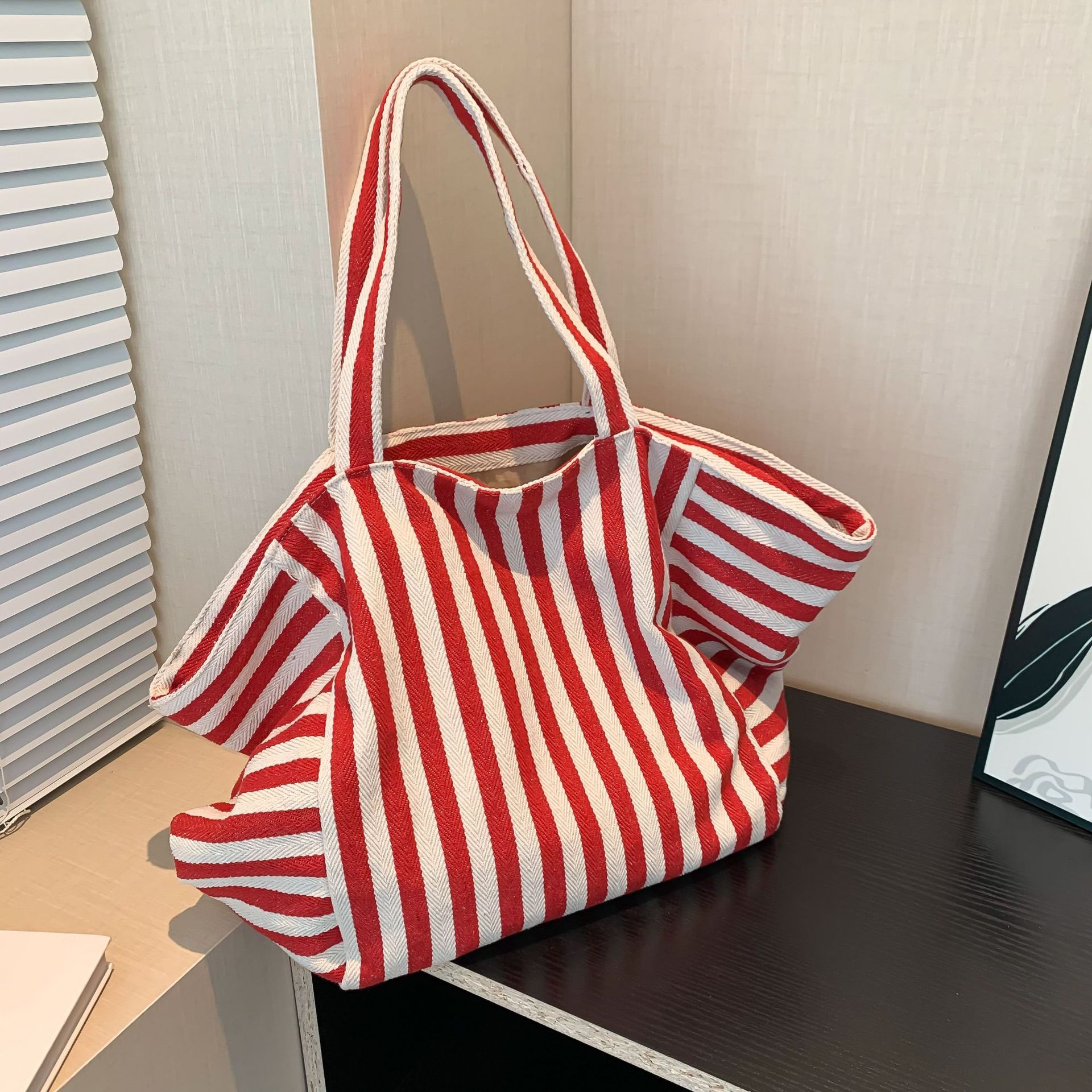 한국 유행 줄무늬 간단한 양면 캔버스 가방 2025 새로운 여름 대용량 학생 토트 백 쇼핑백스토어 가기