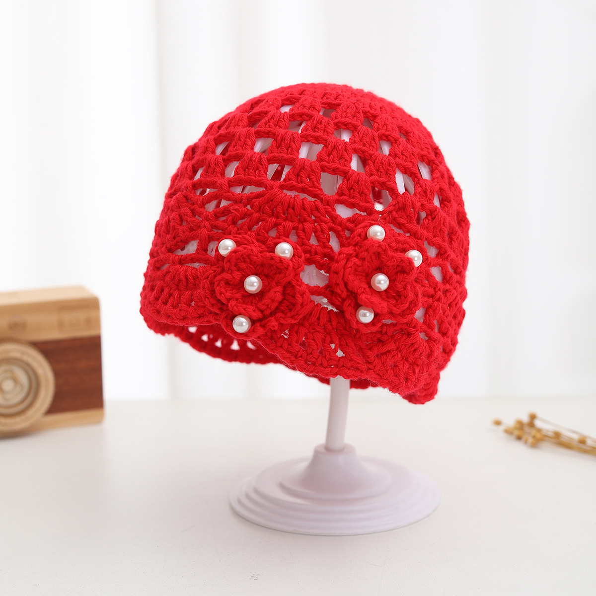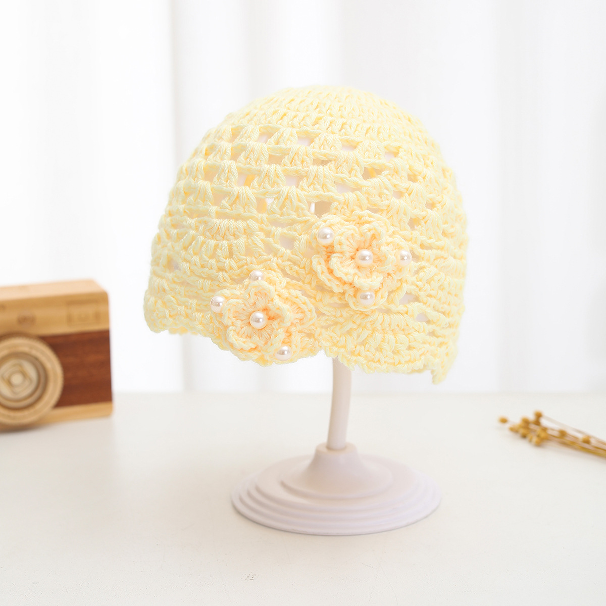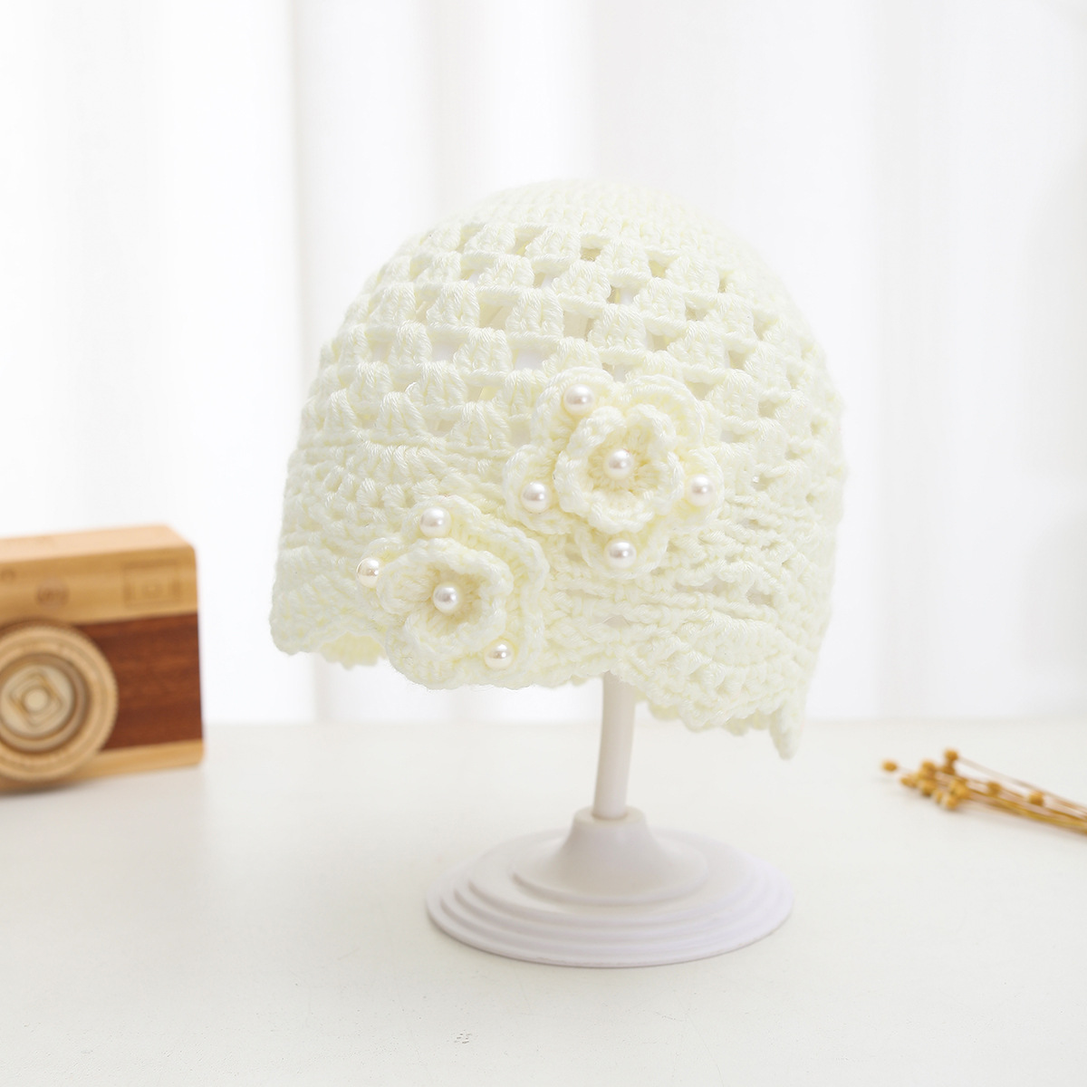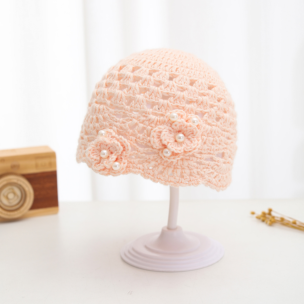 봄과 여름 아기 손으로 짠 꽃 진주 중공 모자 신생아 아기 폰타 넬 모자