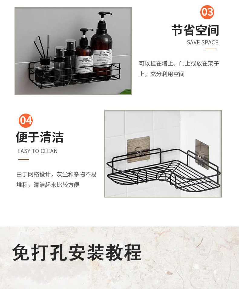 국경 간 욕실 코너 랙 펀치 프리 코너 화장실 세척 삼각대 화장실 벽걸이 보관 선반