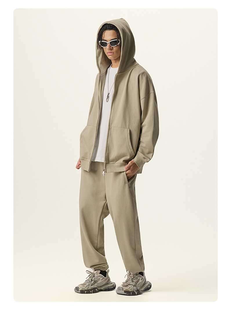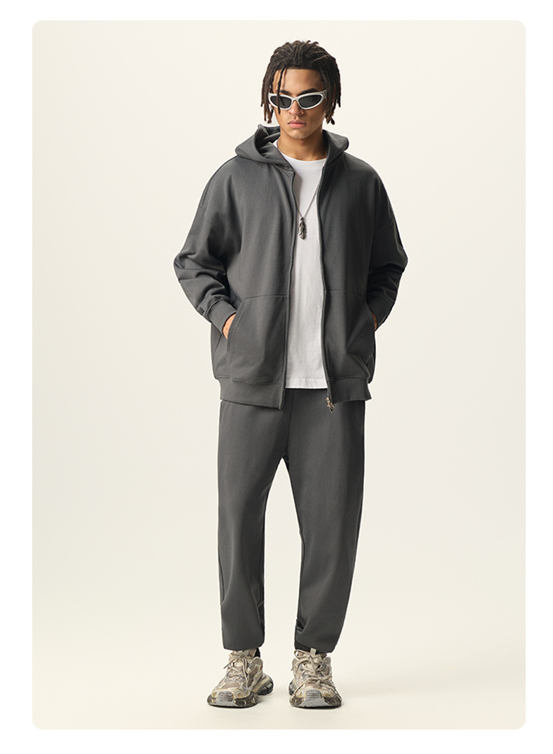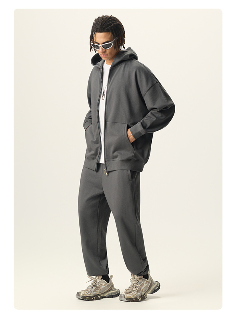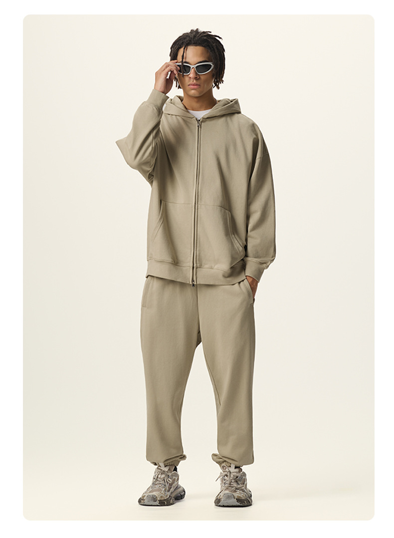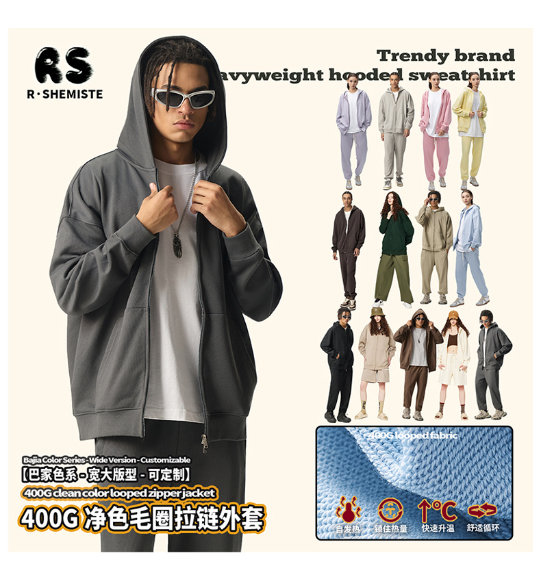 RS 남성 의류 | 트렌디 브랜드 400G 헤비웨이트 테리 후드티 지퍼 재킷 도파민 스웨트셔츠 및 스웨트팬츠 세트