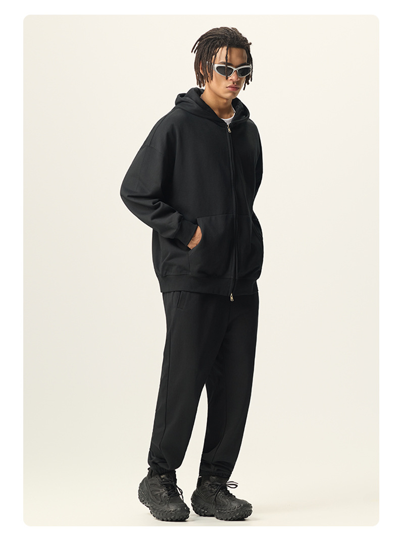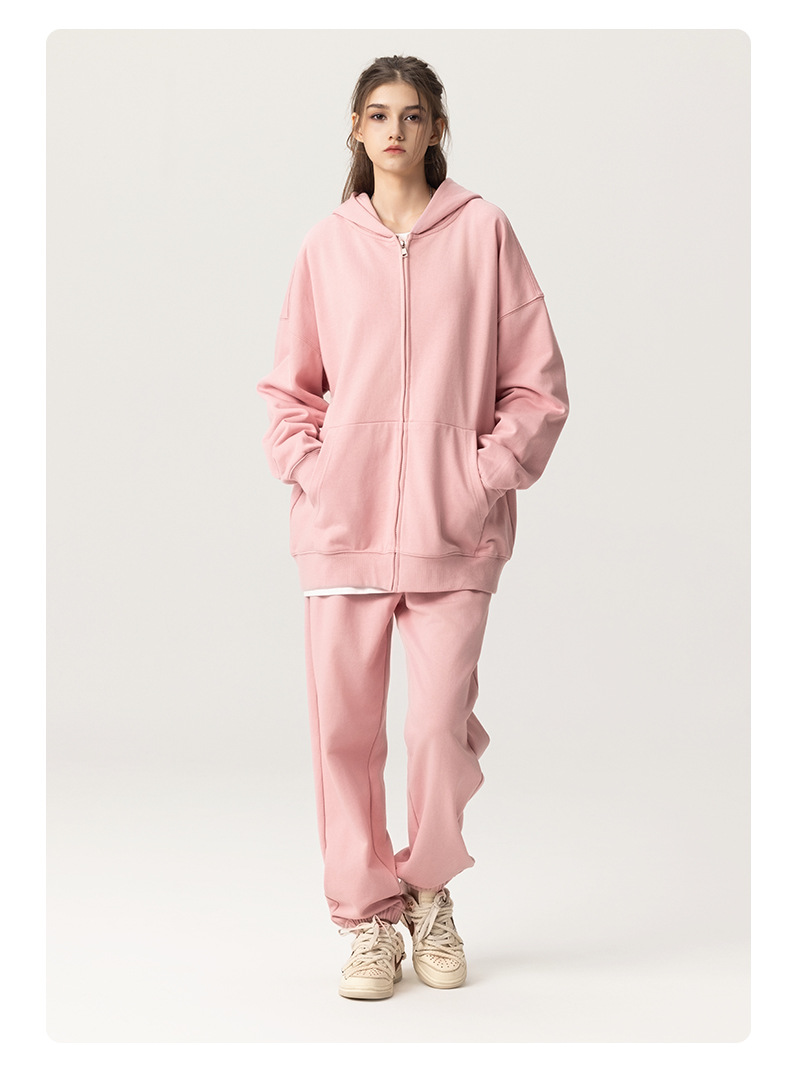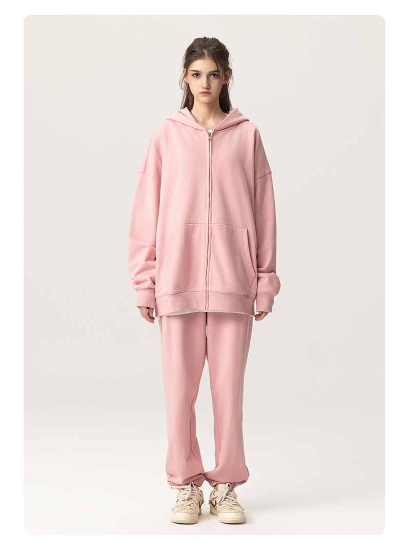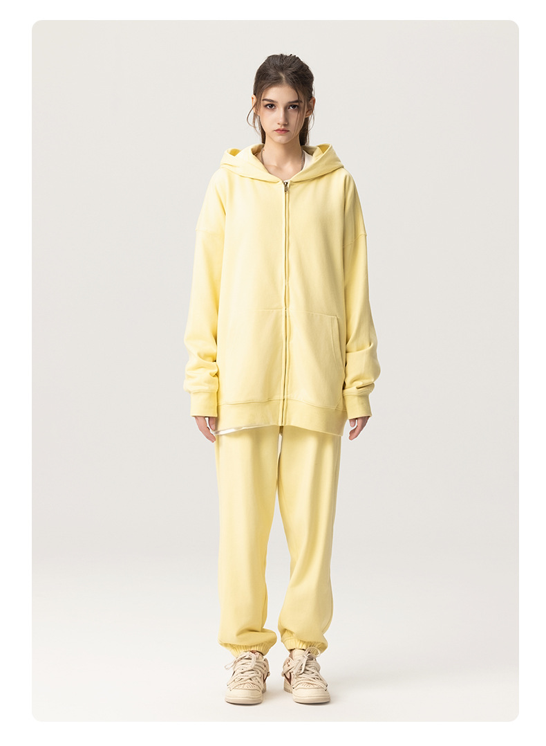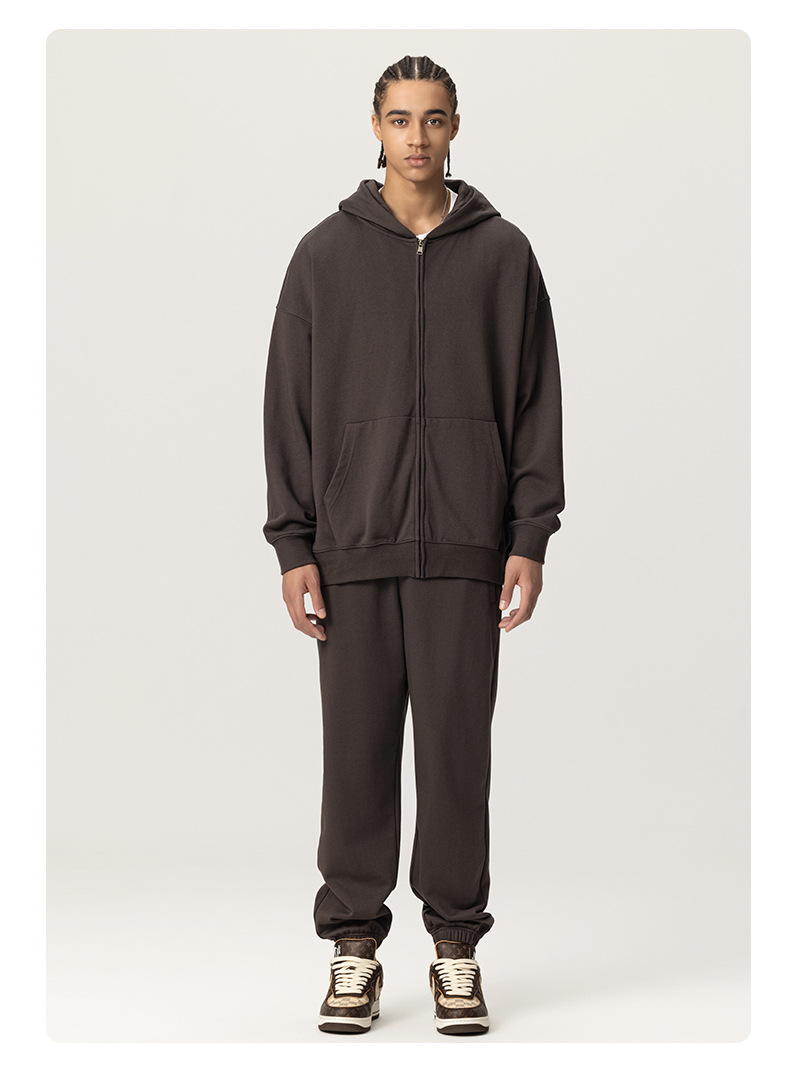RS 남성 의류 | 트렌디 브랜드 400G 헤비웨이트 테리 후드티 지퍼 재킷 도파민 스웨트셔츠 및 스웨트팬츠 세트