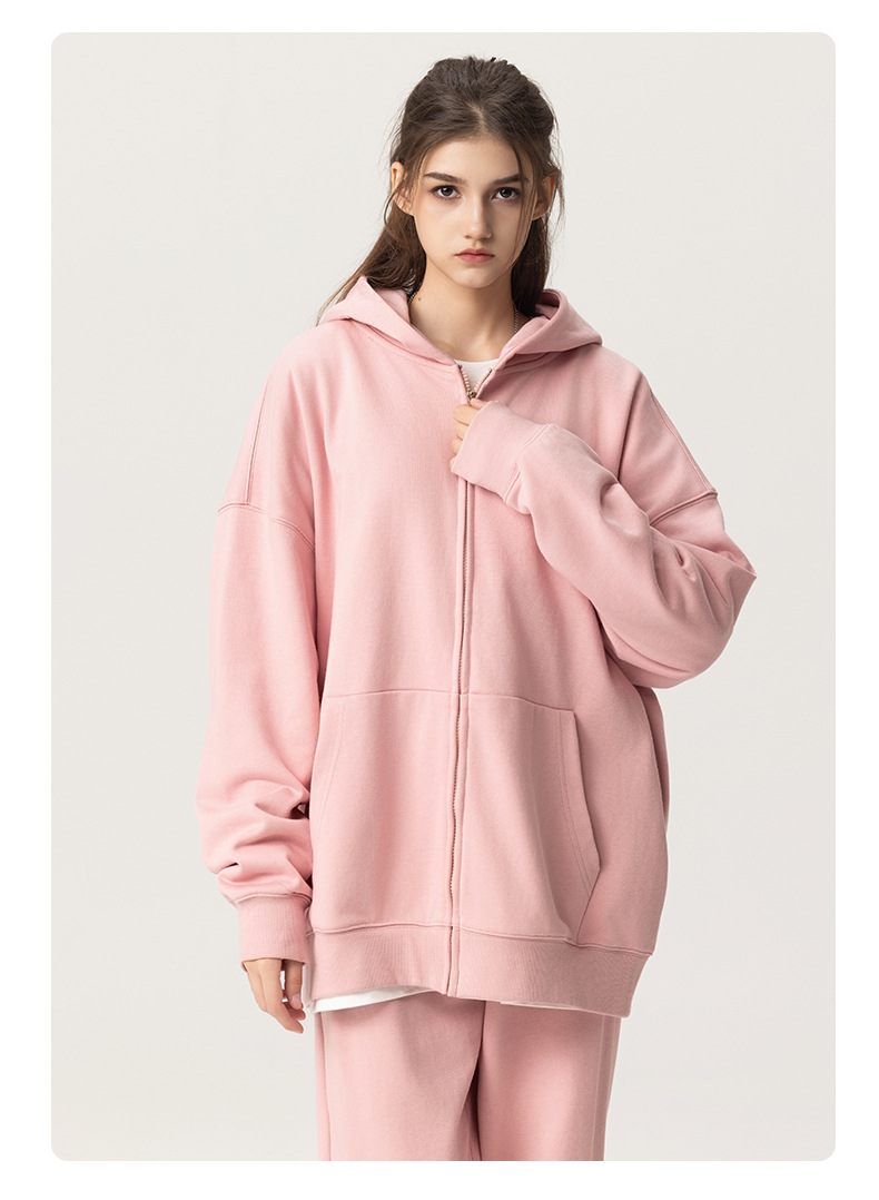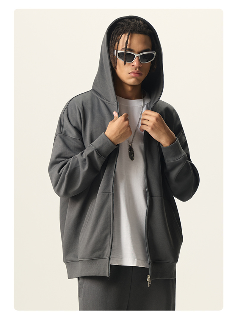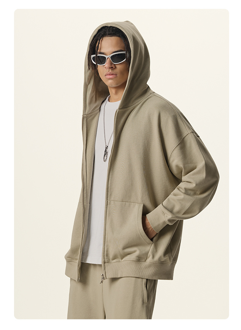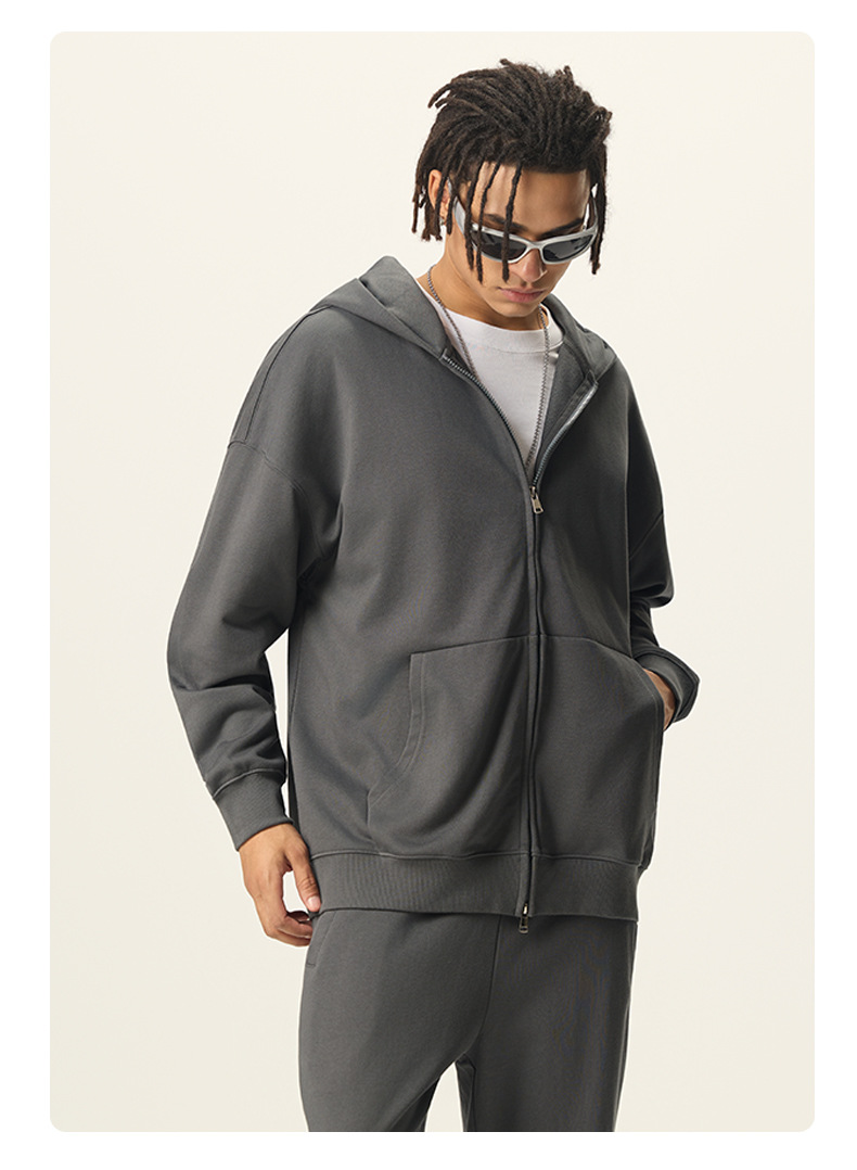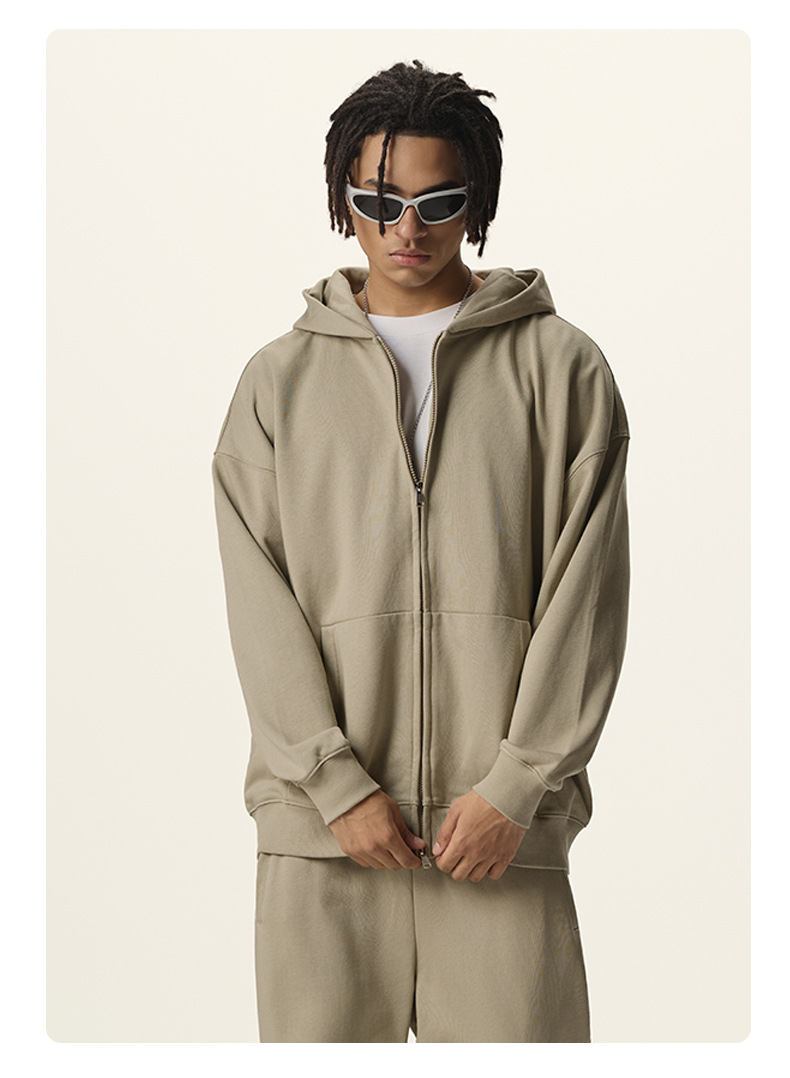 RS 남성 의류 | 트렌디 브랜드 400G 헤비웨이트 테리 후드티 지퍼 재킷 도파민 스웨트셔츠 및 스웨트팬츠 세트