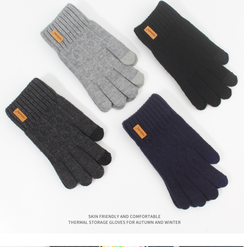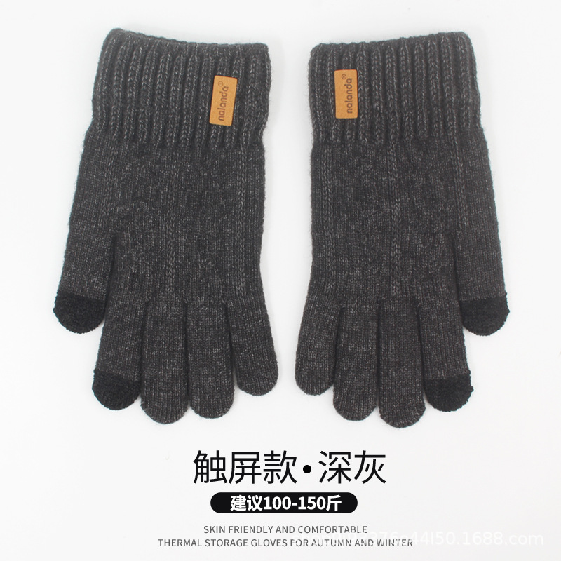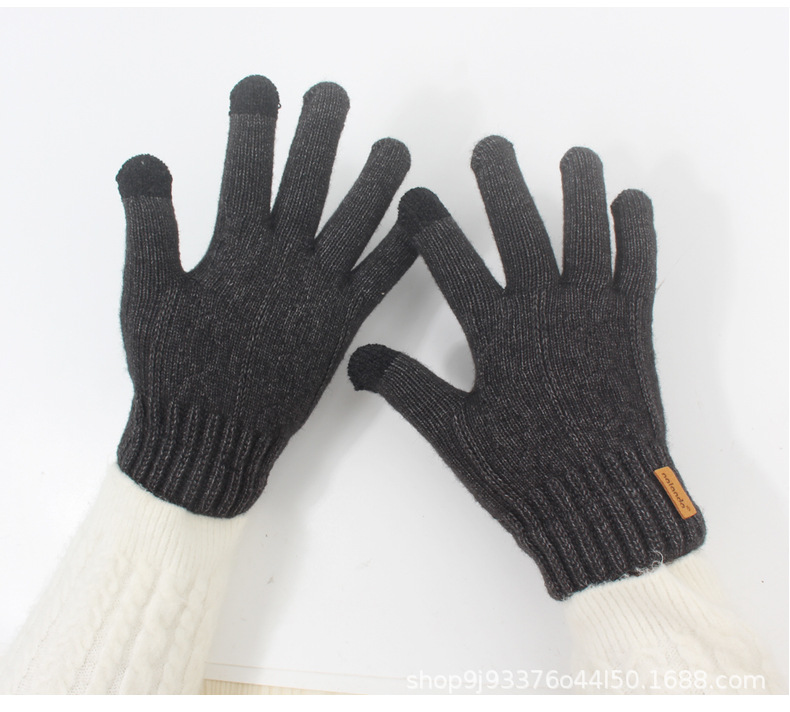 장갑 남자의 가을과 겨울 손가락 양모 니트 벨벳 두꺼운 따뜻한 사이클링 냉간 다섯 손가락 터치 스크린 학생 쓰기