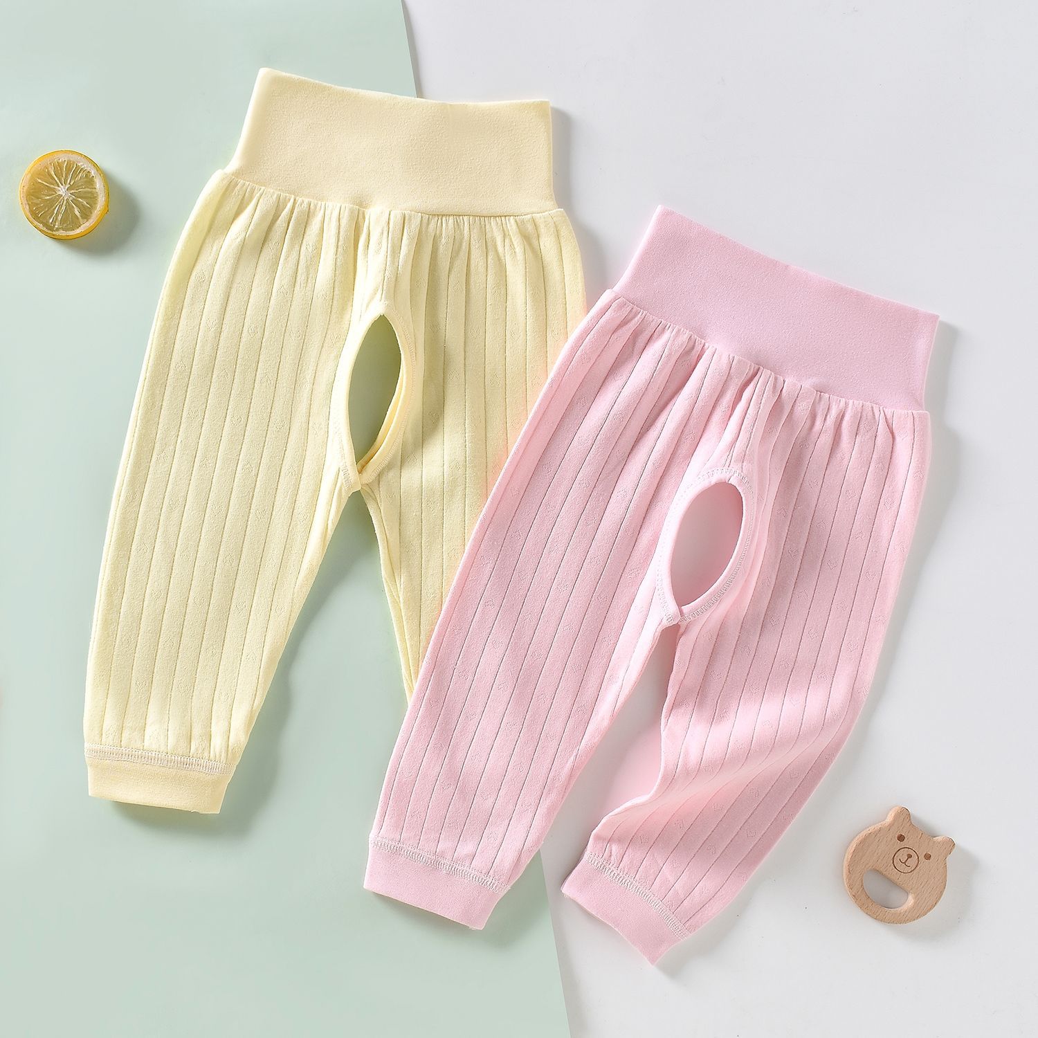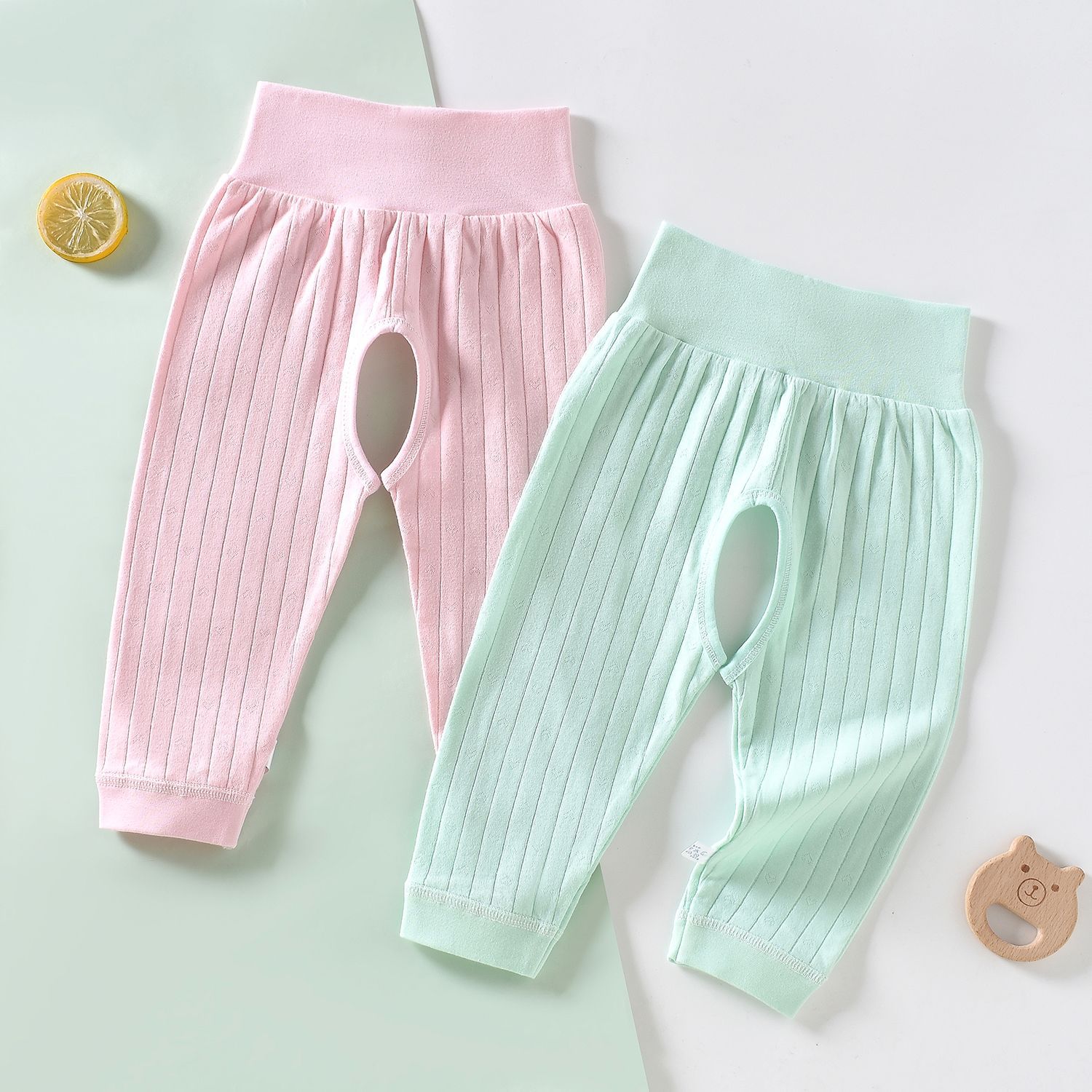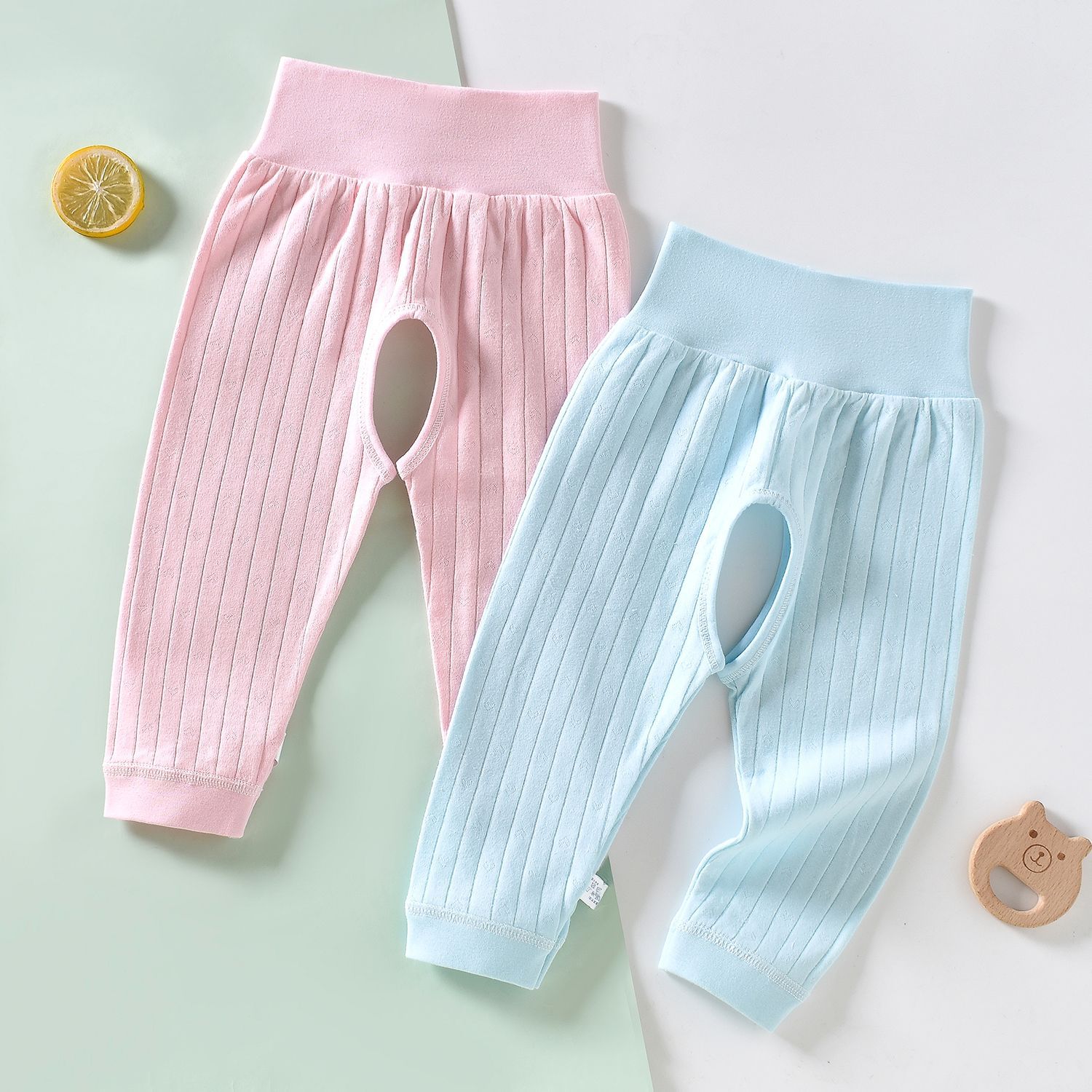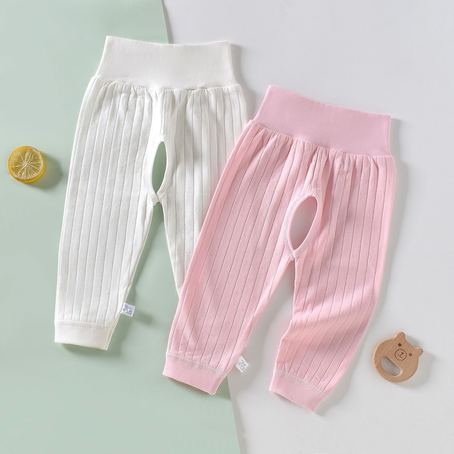 [2 개] 남녀 아기 아기 가을 바지 코튼 바지 여성용 오픈 가랑이 바지 여성용 신생아 봄과 가을 레깅스