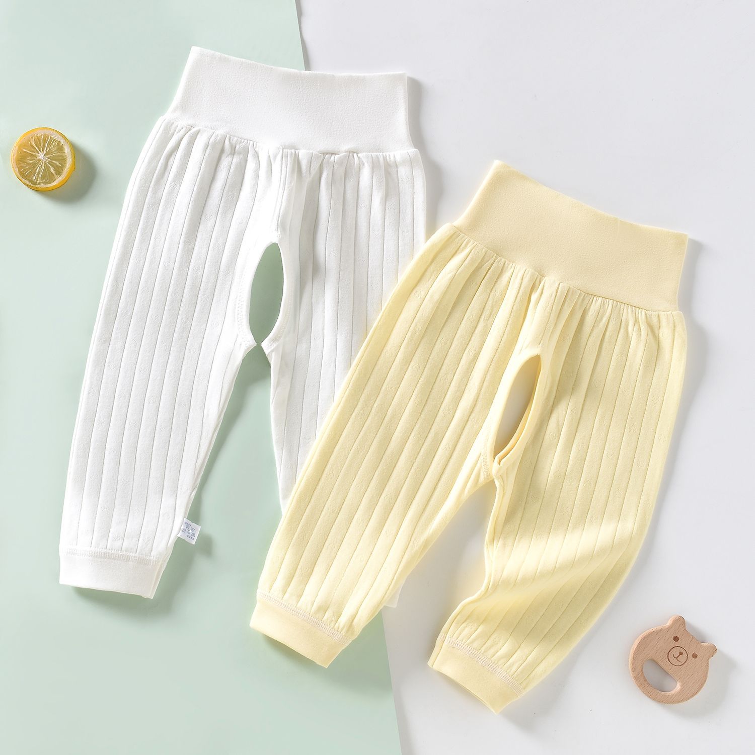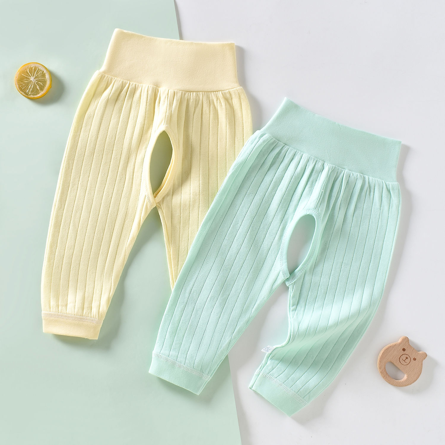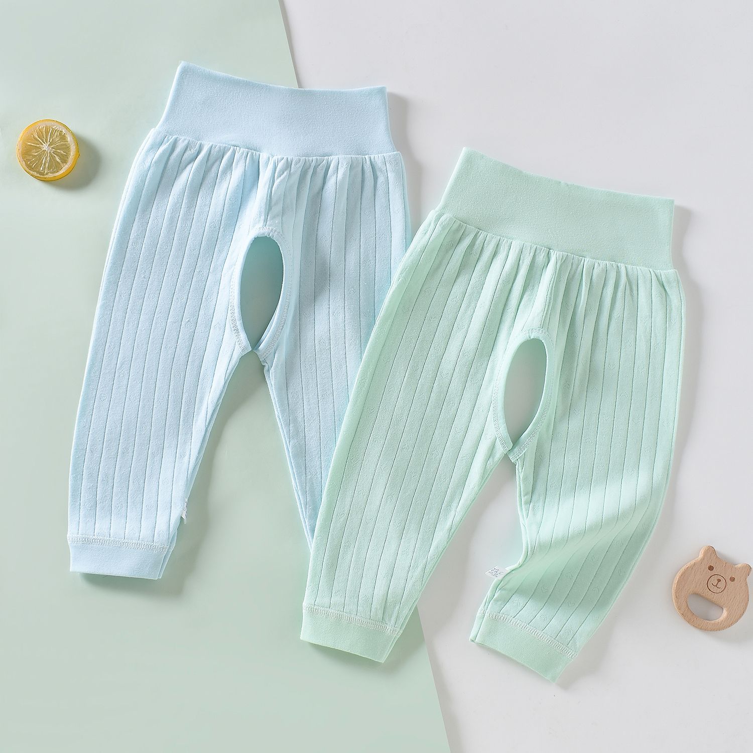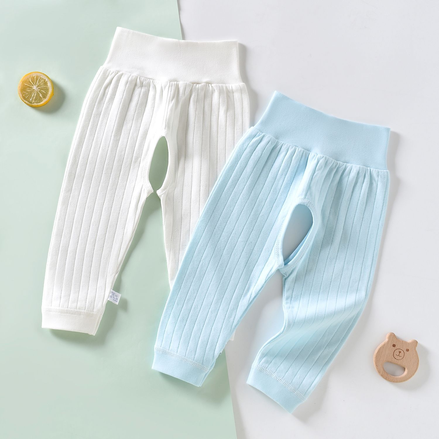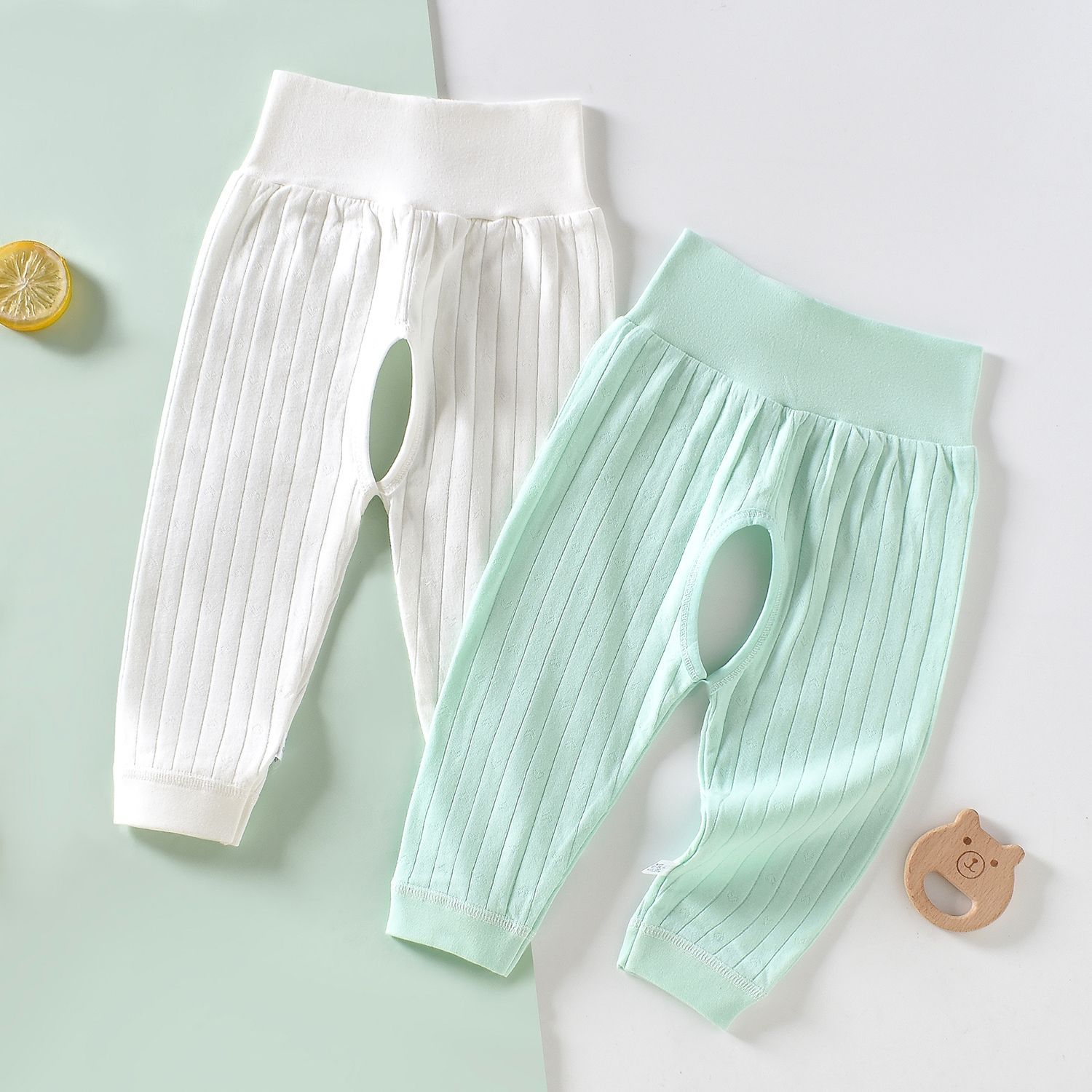 [2 개] 남녀 아기 아기 가을 바지 코튼 바지 여성용 오픈 가랑이 바지 여성용 신생아 봄과 가을 레깅스